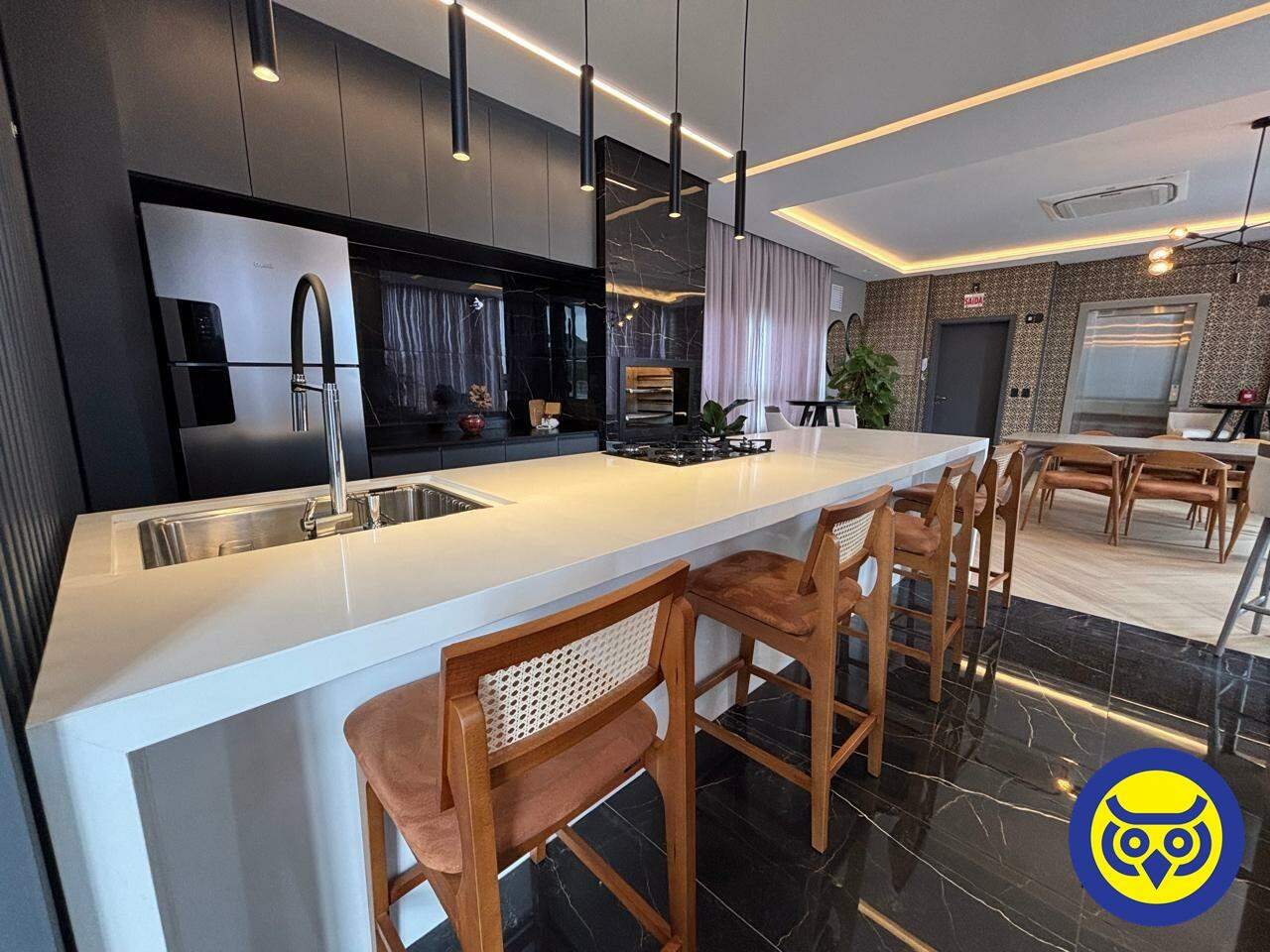 O condomínio conta com piscina com borda infinita, deck com spa aquecido, churrasqueira a carvão, espaço fitness equipado, sauna, salão de festas, playground, ofurô, fireplace, bicicletário, elevador e zeladoria.