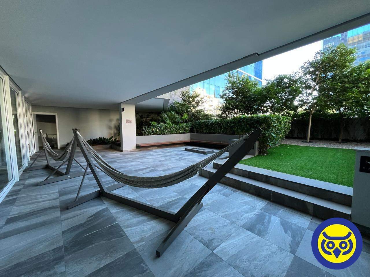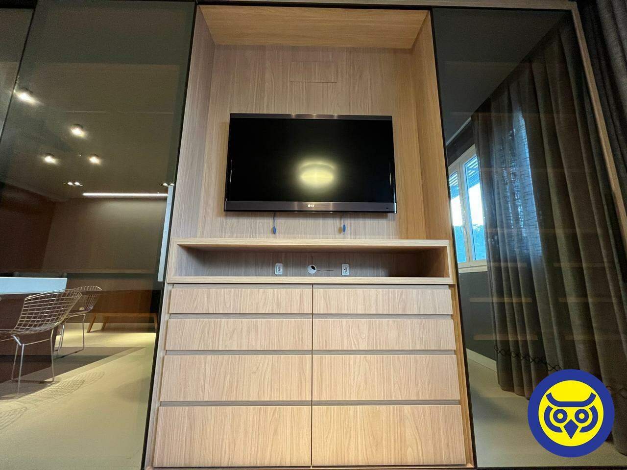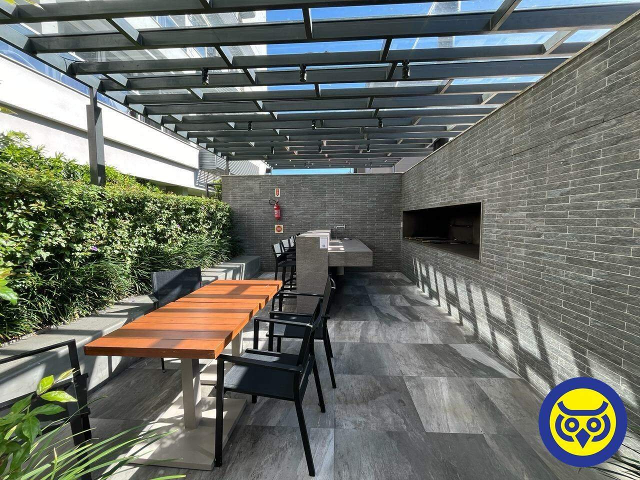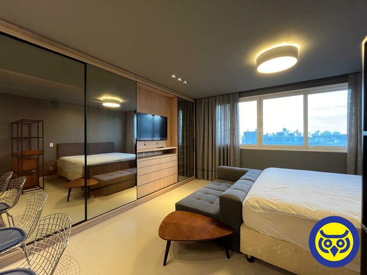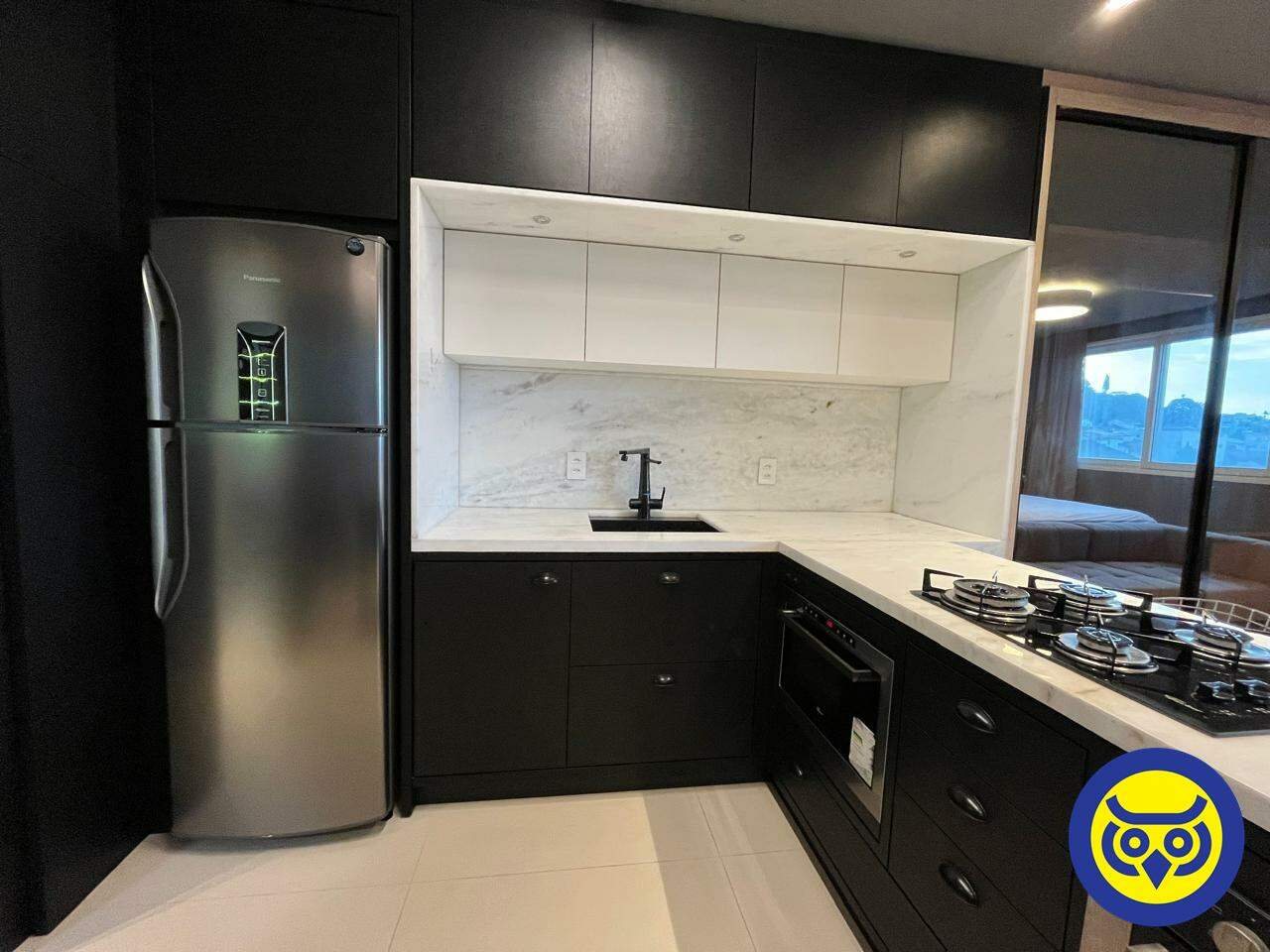 Studio totalmente mobiliado, com sala, quarto com armários, cozinha planejada, área de serviço e 1 vaga de garagem.