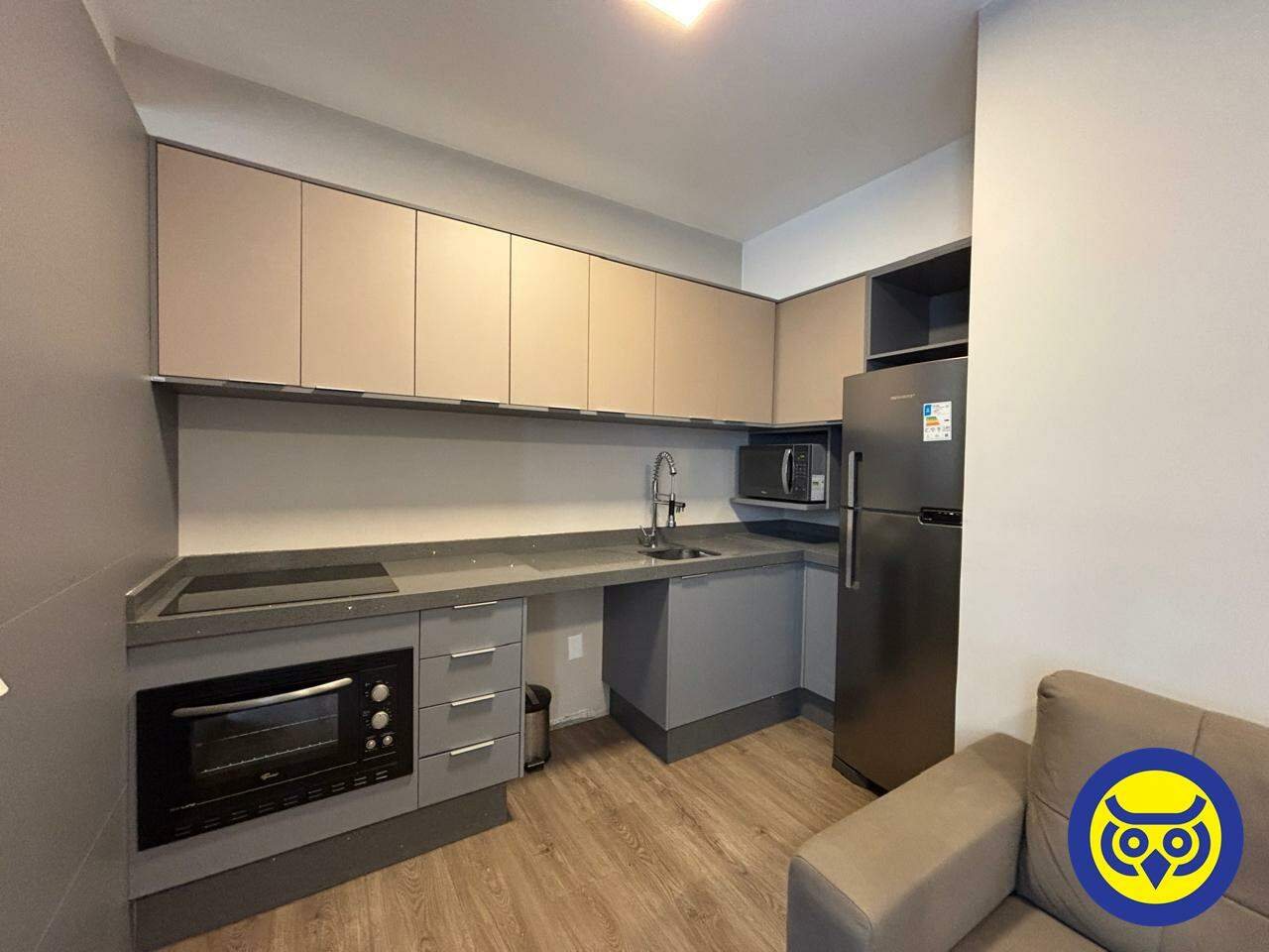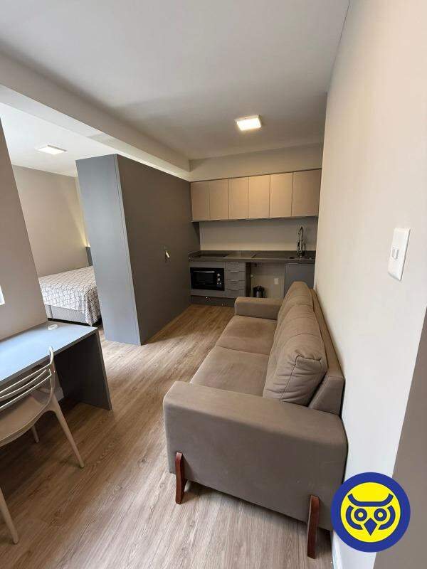 O imóvel é mobiliado e conta com quarto com cama, sala com sofá, cozinha com armários e 1 banheiro. Ideal para quem busca praticidade e uma rotina funcional no centro da cidade.