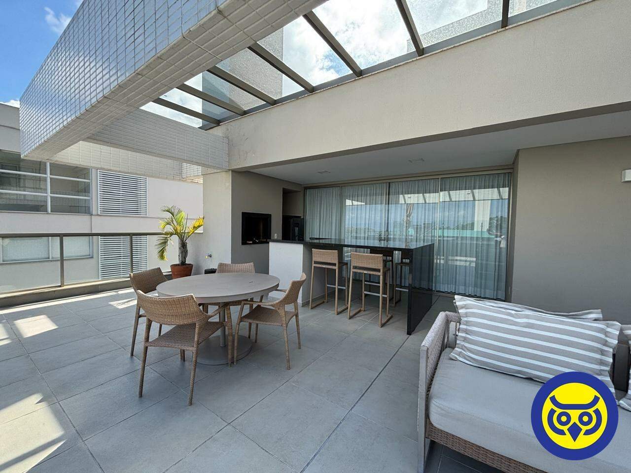 O imóvel possui 2 quartos sendo 2 suítes, sala ampla para 2 ambientes, cozinha planejada, sacada com churrasqueira a carvão, banheiros (social e suítes) com armários e box, área de serviço com tanque, 2 vagas de garagem e hobby box.