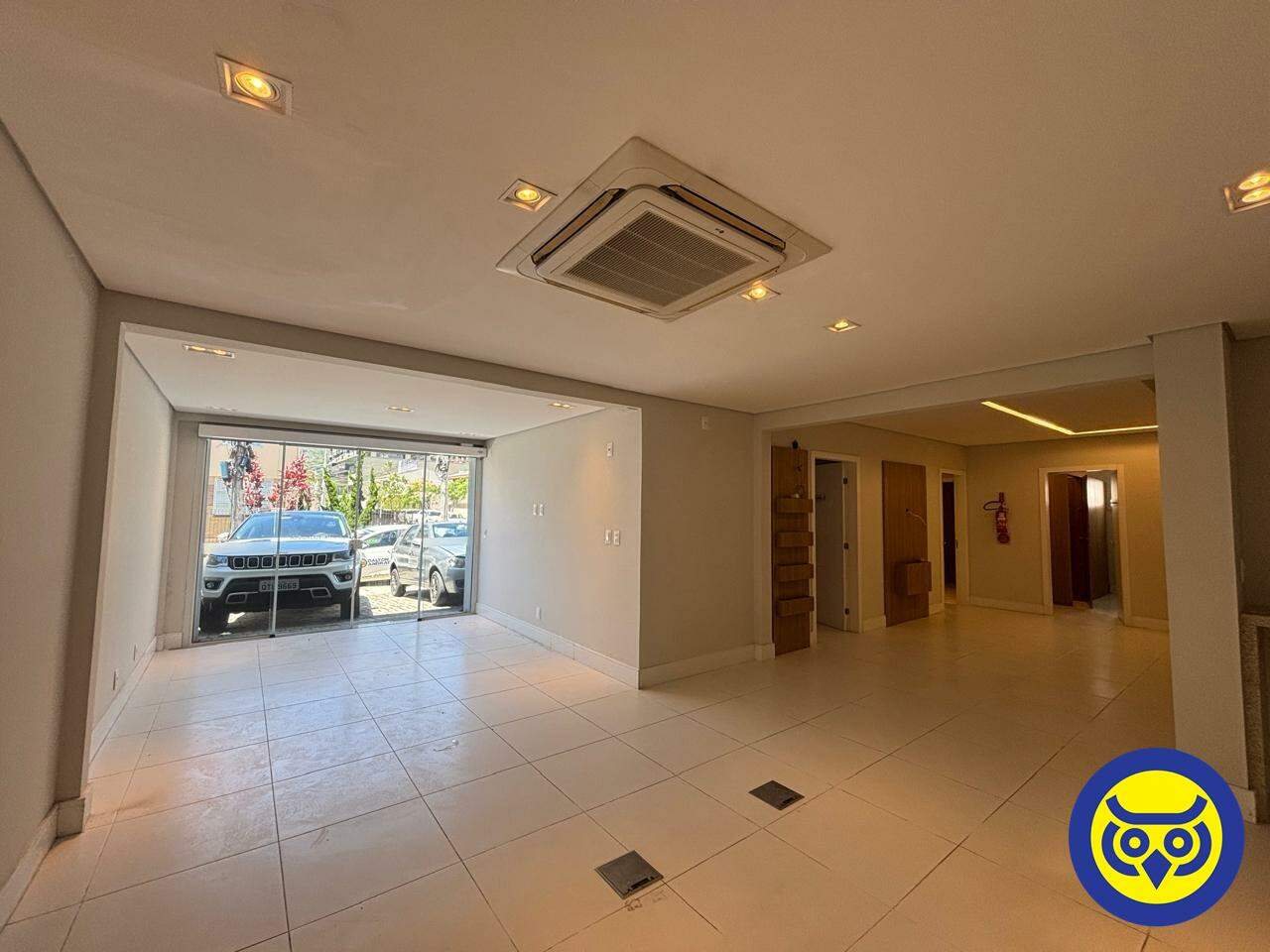 Características do imóvel: 12 salas, 5 banheiros, cozinha, área de serviço, quintal e 6 vagas de estacionamento na frente.