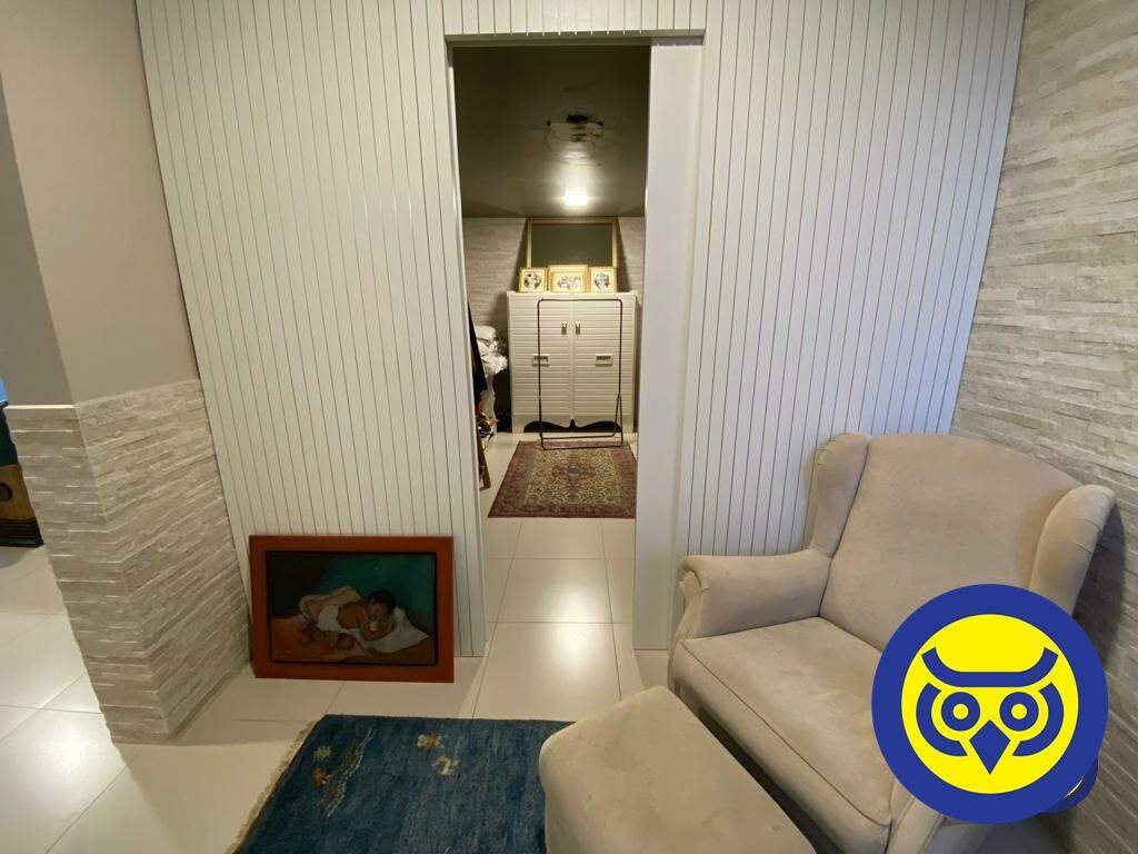 No piso superior, encontra-se uma sala de TV aconchegante e 3 suítes completas com closet e ar condicionado, todas com vista para o mar.