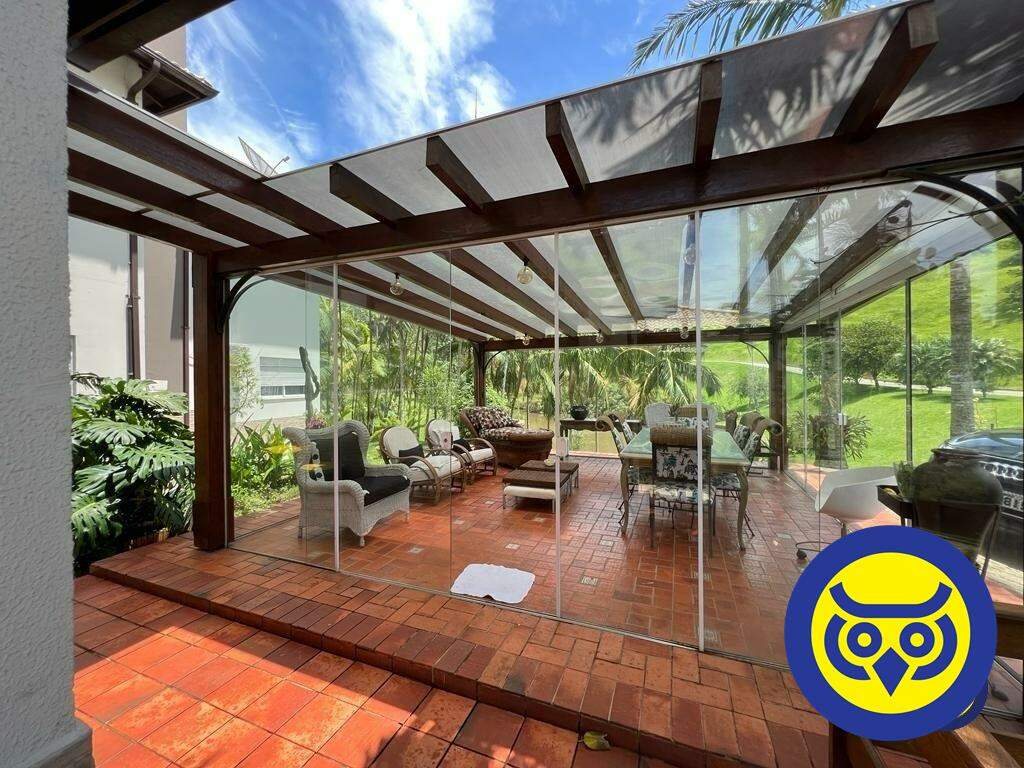 A área de lazer é um verdadeiro refúgio: piscina, espaço gourmet com churrasqueira, sala de jogos, sauna, quadra de futebol, canil e jardim de inverno em vidro, cercados por muito verde, proporcionando privacidade e contato com a natureza.