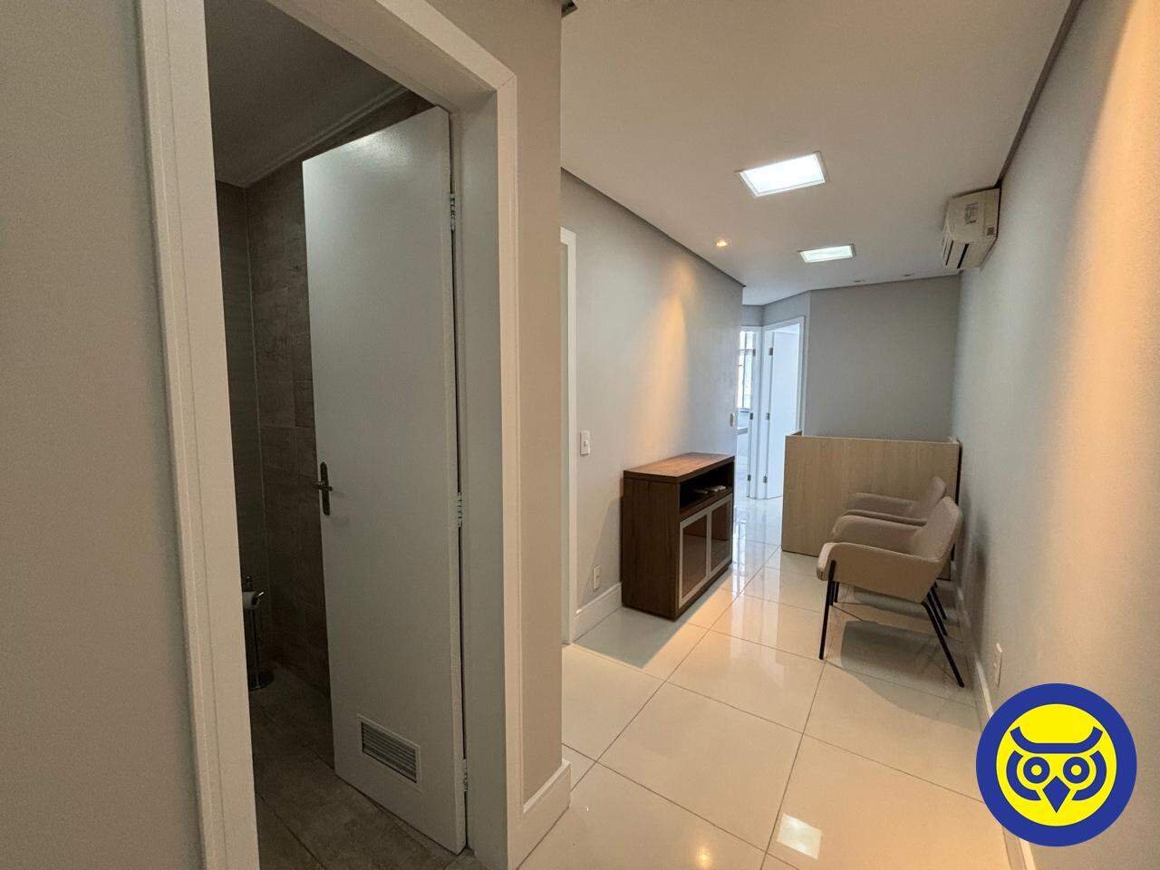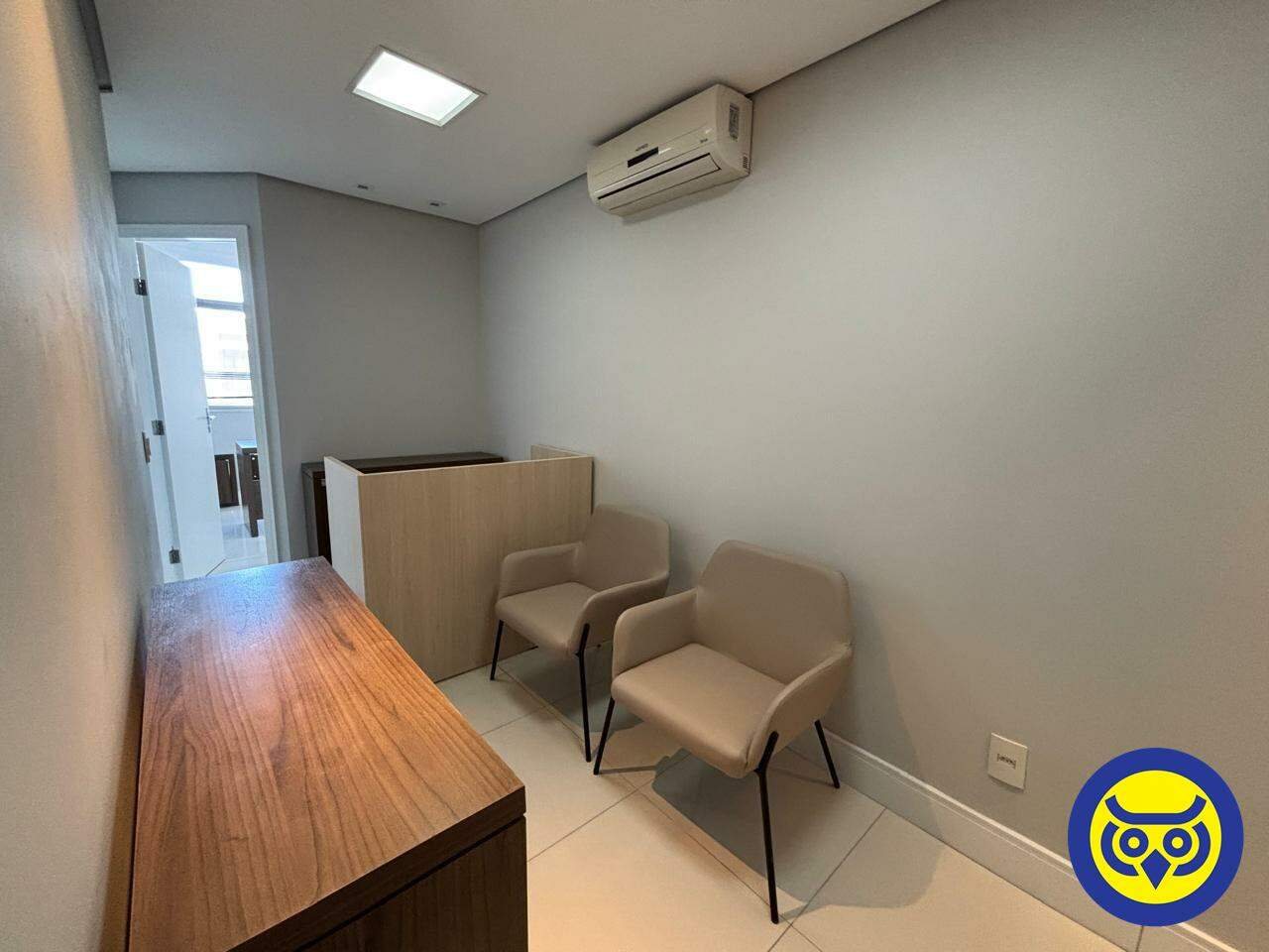 Espaço com móveis planejados, divisórias, recepção, copa, ar-condicionado e ótima iluminação, piso cerâmico, vista mar e infraestrutura pronta para operação.
