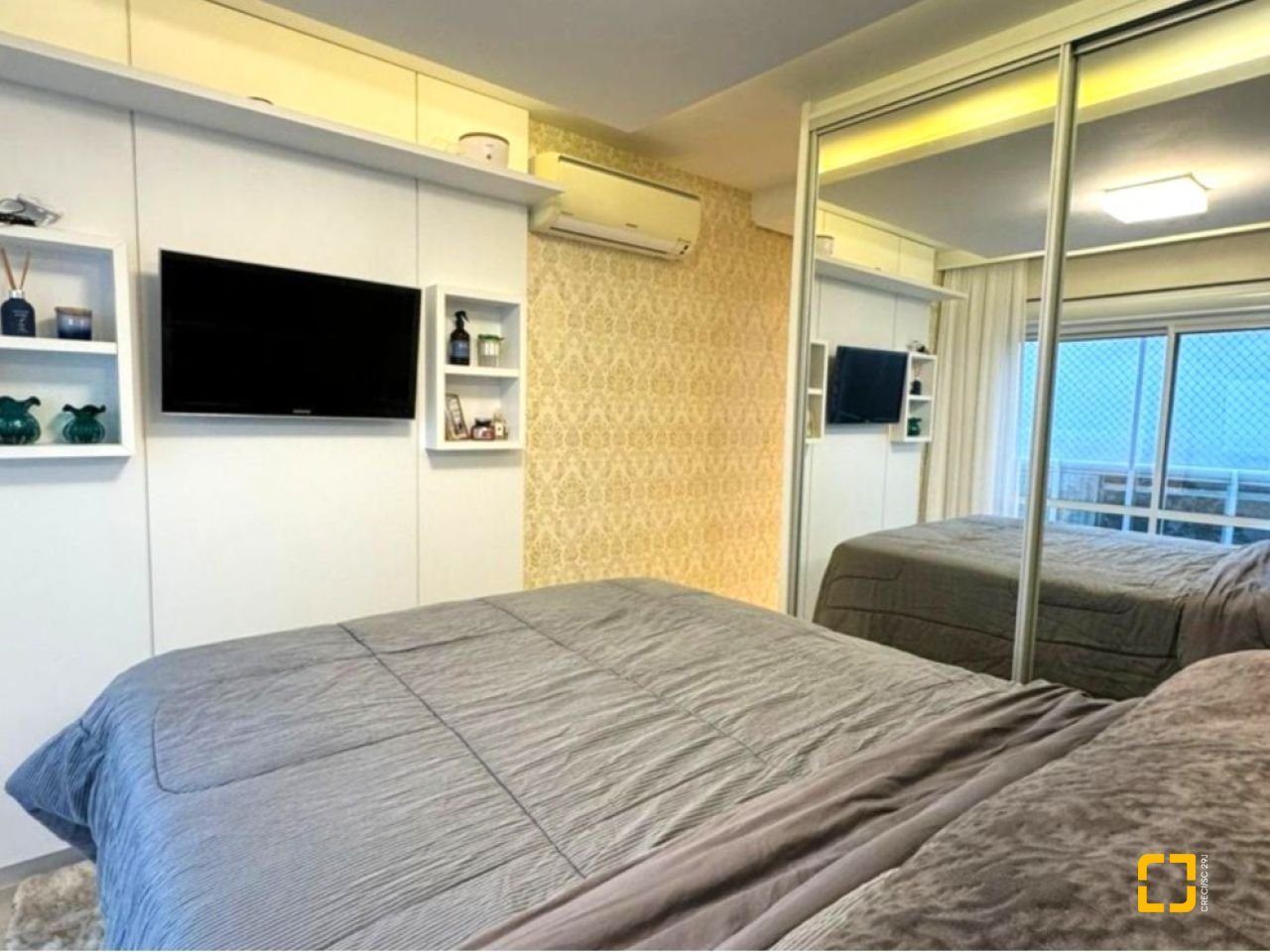O imóvel com 110m2 privativos conta com 3 dormitórios, sendo 1 suíte, além de um amplo living integrado com salas de estar, jantar e TV, proporcionando um ambiente moderno e aconchegante. A cozinha é mobiliada e funcional, conectada à área de serviço. Possui ainda banheiro social, móveis planejados de alto padrão em todos os ambientes e 2 vagas de garagem livres.