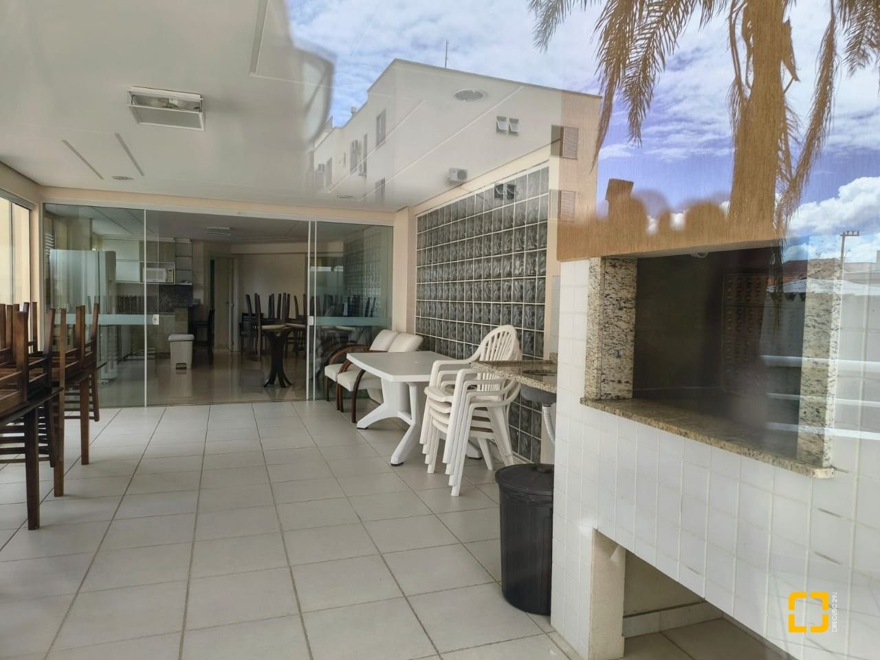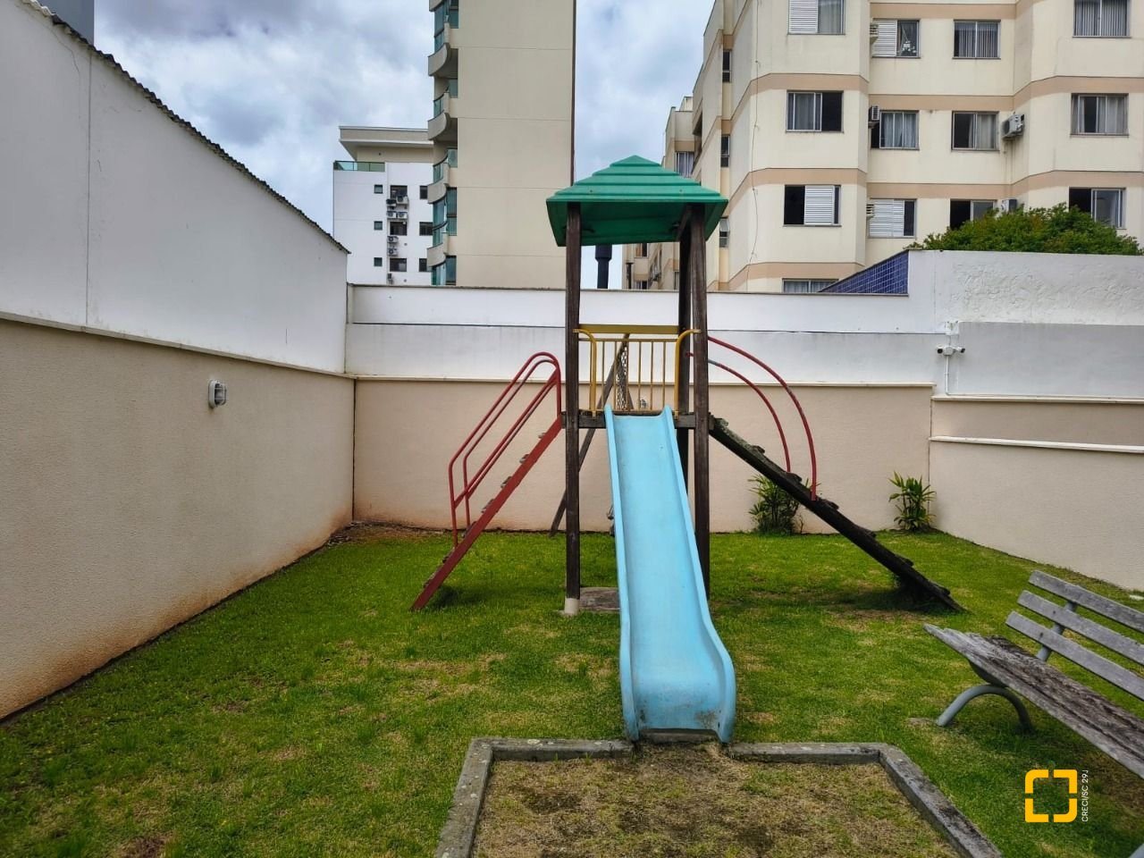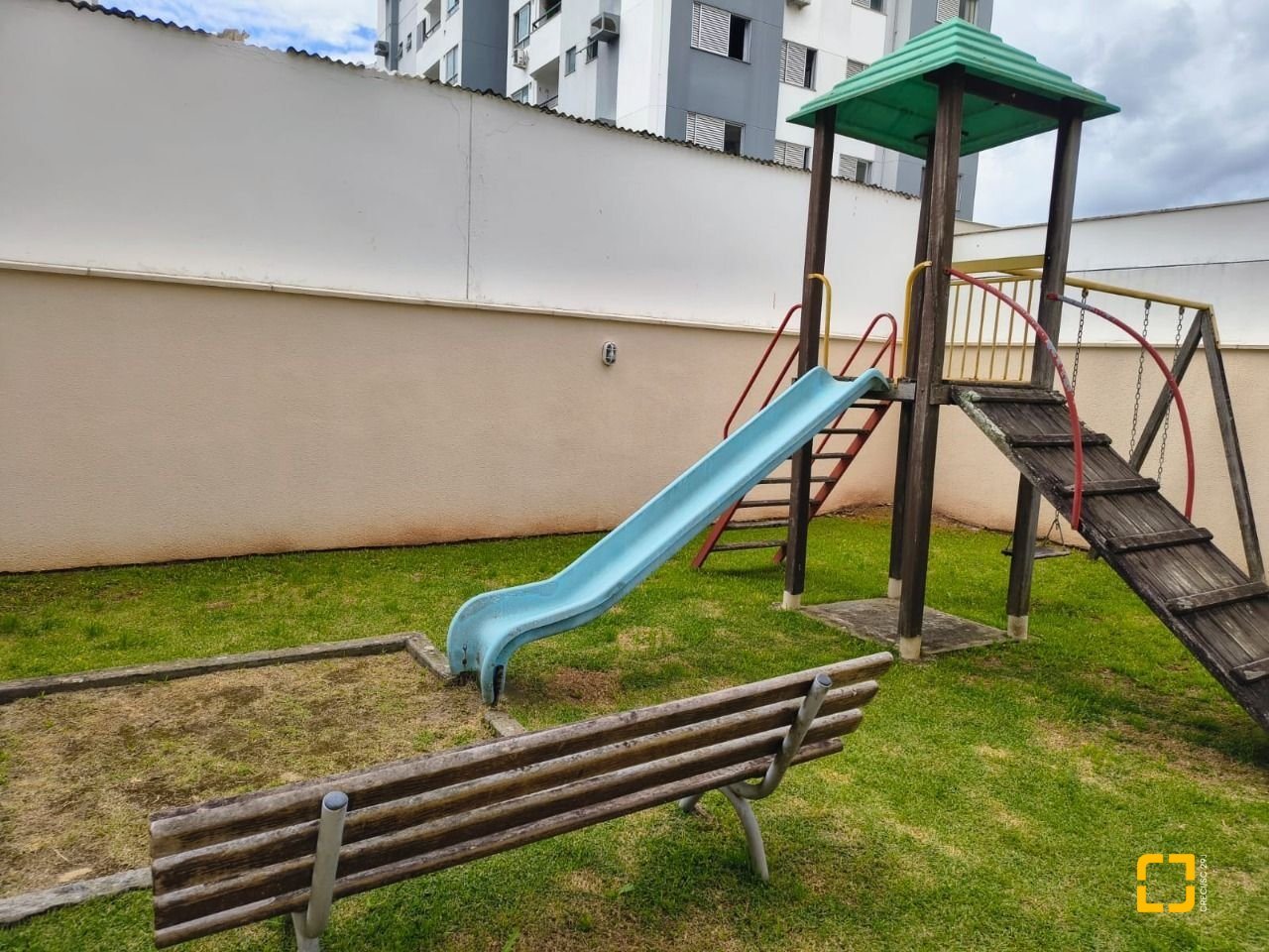 Condomínio com espaço verde, playground e salão de festas.