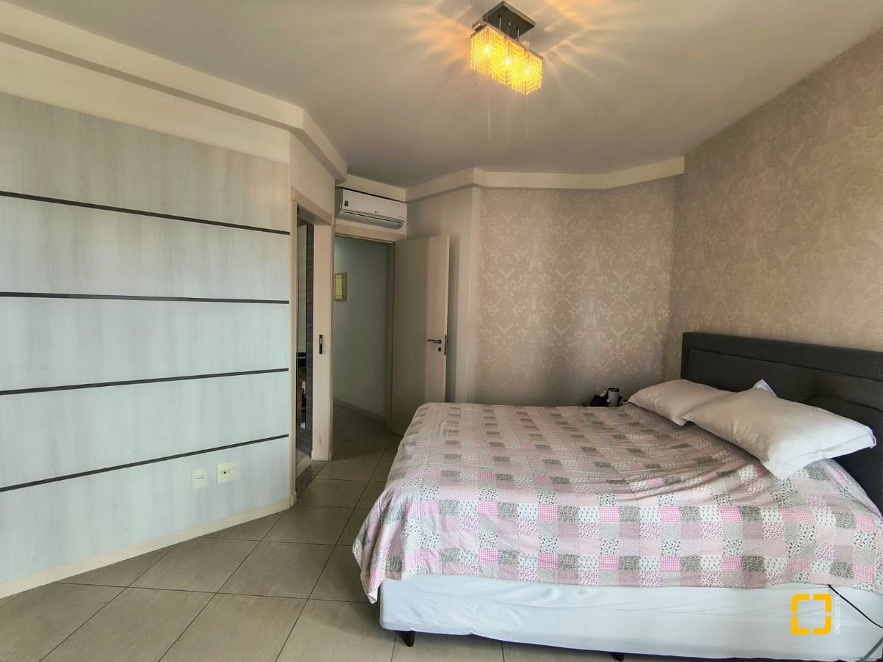 Possui 4 dormitórios, sendo uma suíte com ampla sacada com vista para o mar e um dos dormitórios convertido em closet para a suíte e banheiro com hidromassagem, sendo possivel reverter.