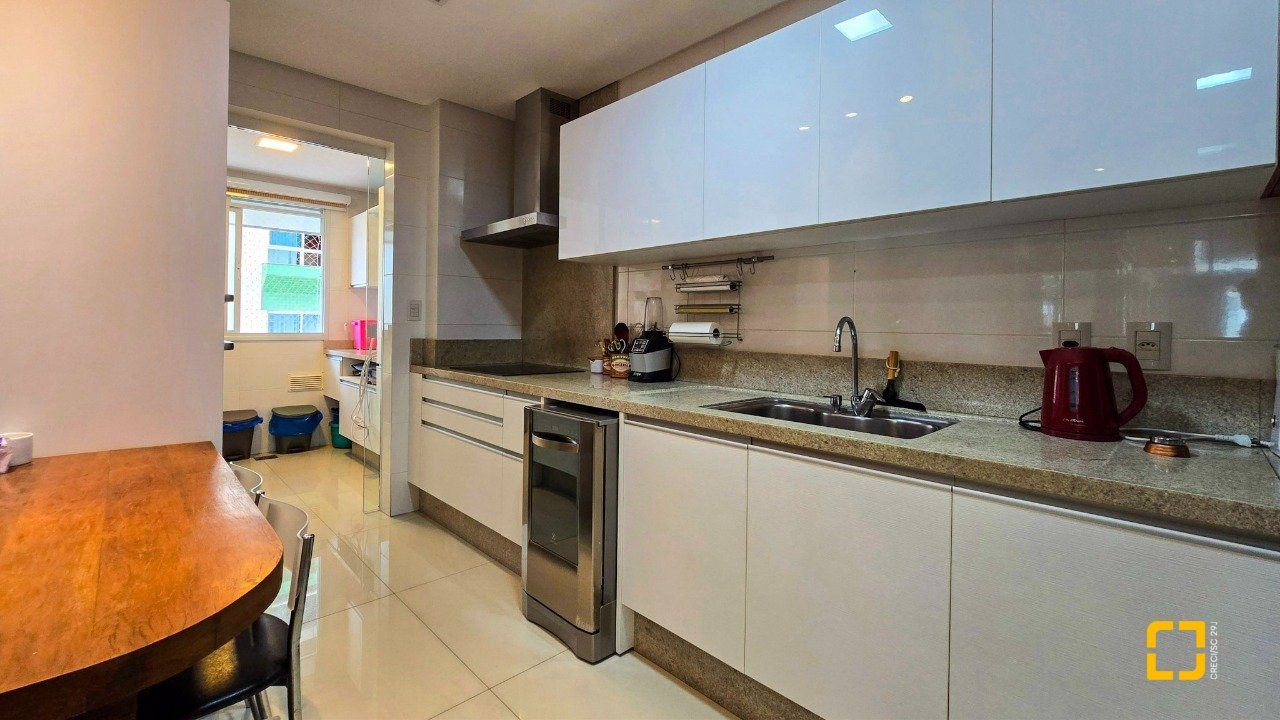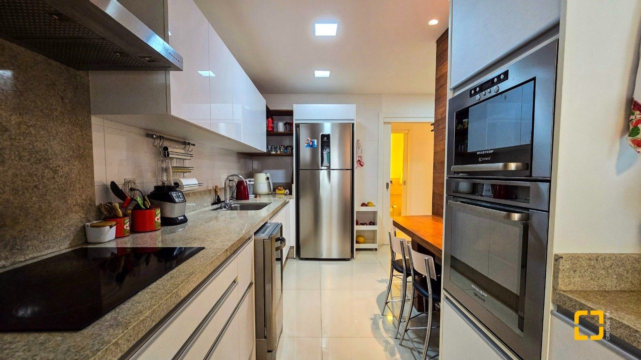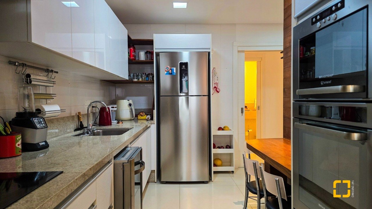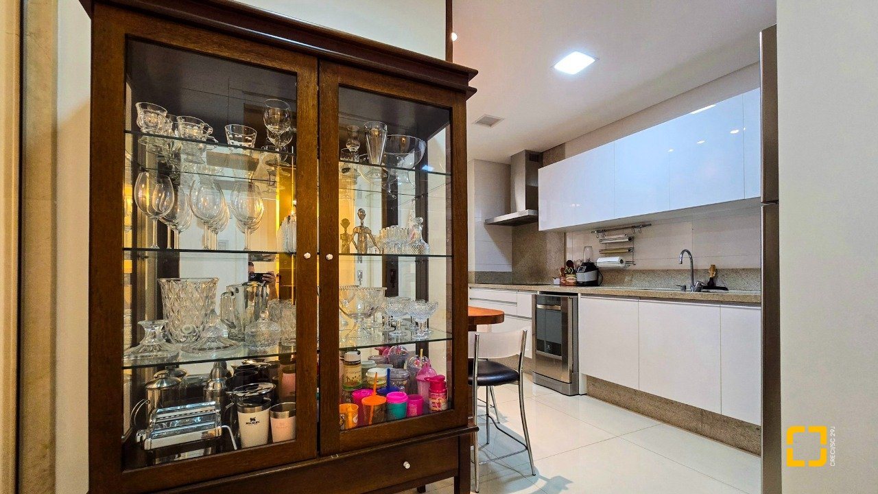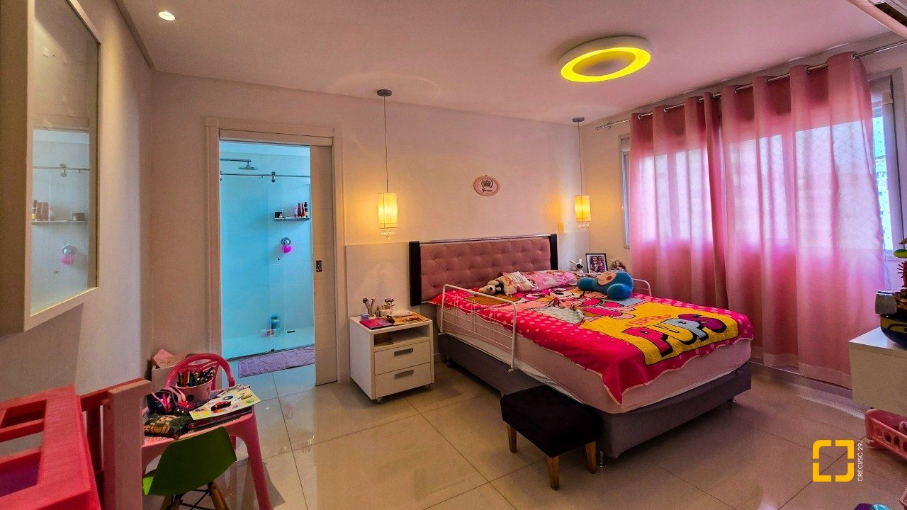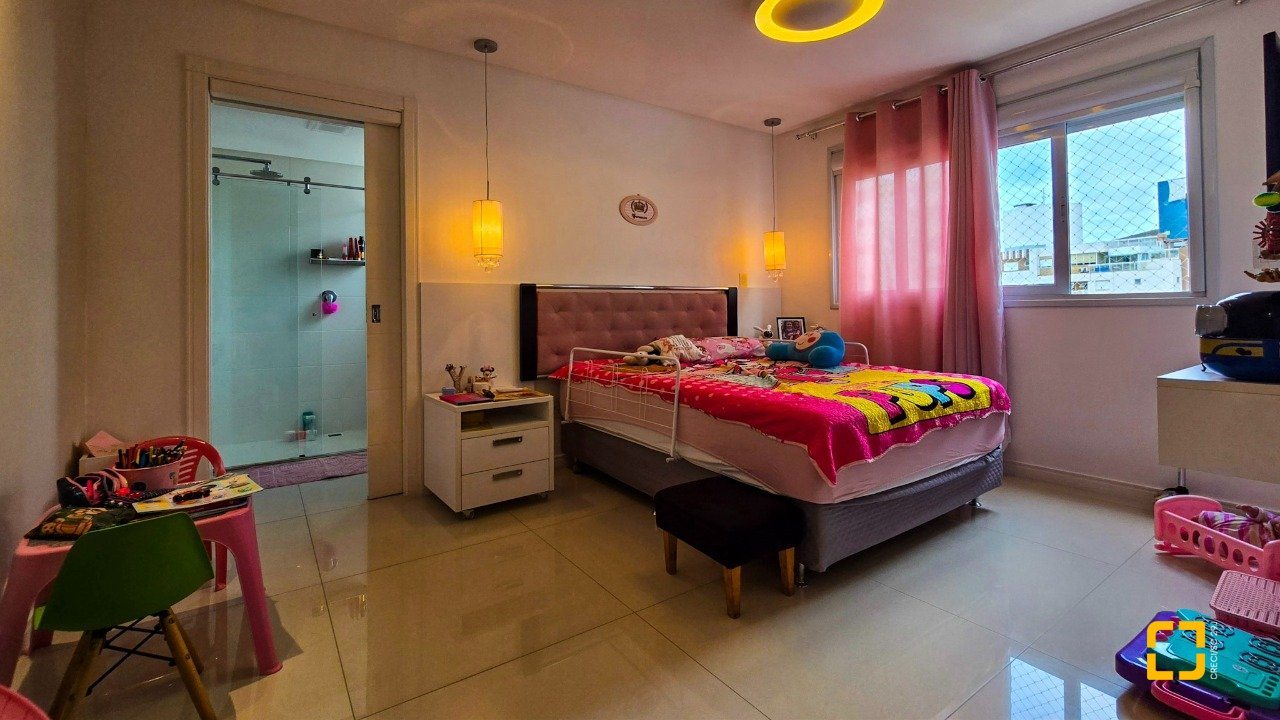 O apartamento conta com 3 dormitórios, todos suítes, e 3 vagas de garagem, oferecendo privacidade e comodidade para toda a família. Além disso, possui água quente, ar-condicionado, área de serviços, móveis planejados, lavabo, churrasqueira, cozinha planejada, living integrado, persiana elétrica, sacada com churrasqueira, sala de TV, teto rebaixado e uma vista panorâmica que encanta. Os acabamentos de alto padrão garantem um ambiente moderno, sofisticado e, ao mesmo tempo, aconchegante.
