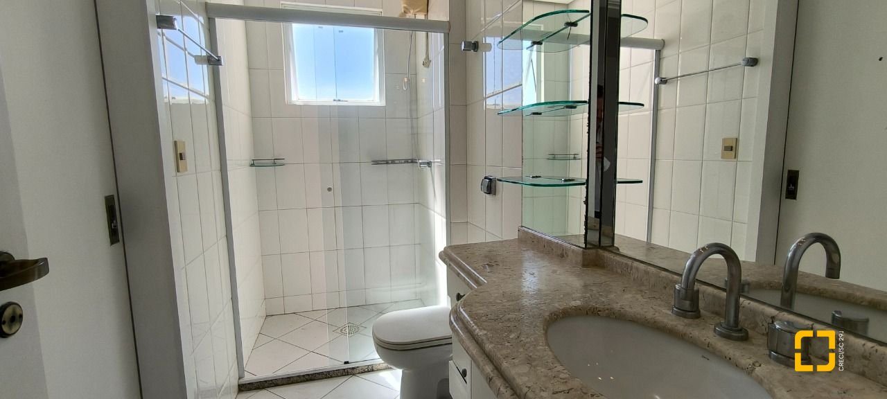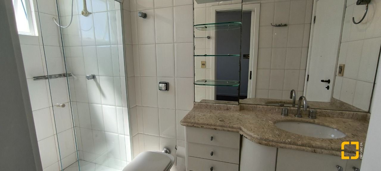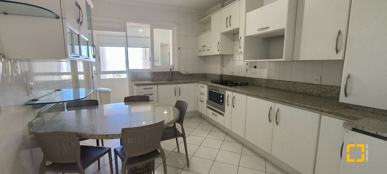Apartamento com 135 m² de área privativa, com 4 quartos, sendo 3 suítes, 1 suite com armários, ar-condicionado, banheiro amplo com banheira de hidromassagem, box de vidro temperado, bancada em granito com armário e espelho e ventilação natural, as outras duas com ar-condicionado, banheiro com box de vidro temperado, bancada em granito com armário e espelho e ventilação natural e o 4 dormitório possui armário e pode ser utilizado como dormitório, dependência de empregada ou escritório, sala de jantar, sala de estar, varanda gourmet envidraçada padrão REIKI com churrasqueira e pia, cozinha fechada com armários planejados com bancada em granito e copa também em granito e área de serviços como banheiro. Vista mar da sacada e todas as janelas, e todas elas possuem tela de proteção.