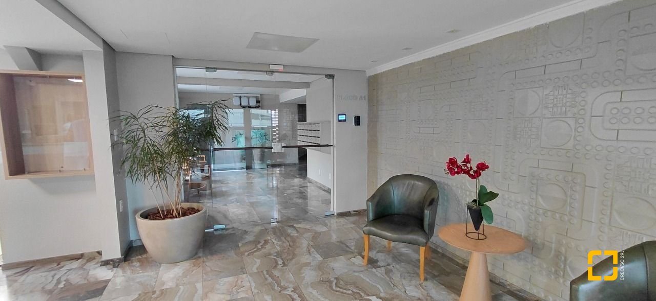 Condomínio com 2 elevadores, portaria 24 horas, salão de festas, academia, piscina e churrasqueira.