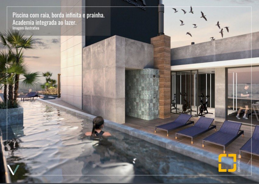 Condomínio com brinquedoteca, circuito de tv, elevadores, pilotis, piscina, portaria 24h, sala fitness e zelador.
