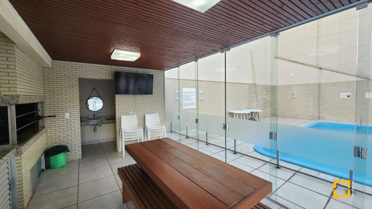 Condomínio com zeladoria, salão de festas amplo e reformado, piscina adulto, churrasqueira a carvão, 2 elevadores, sistema de monitoramento.