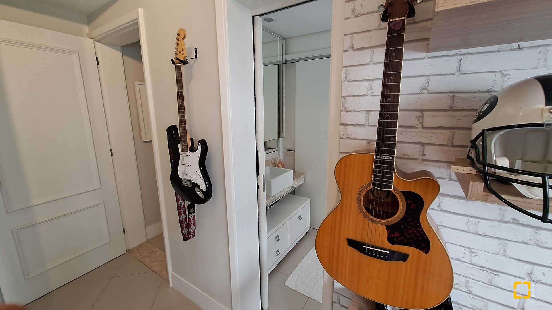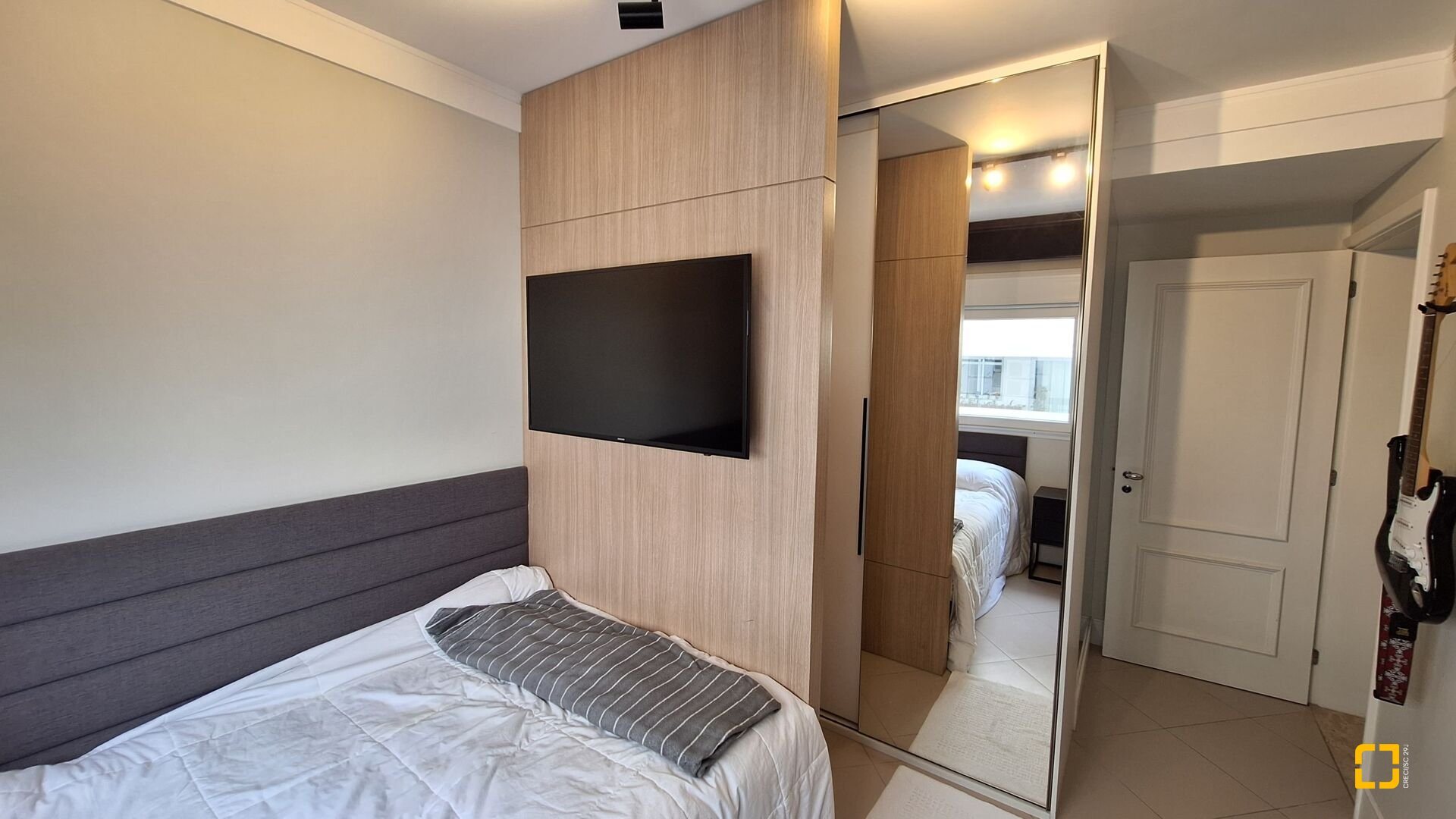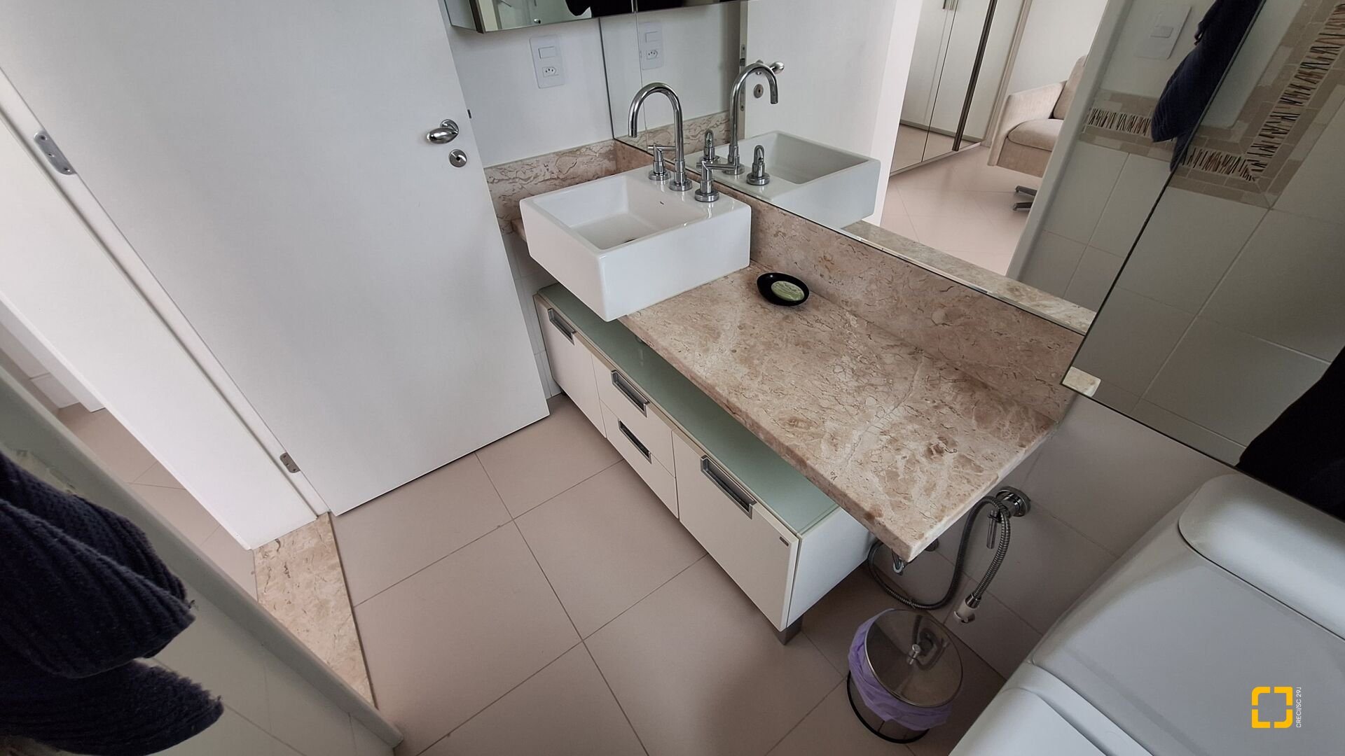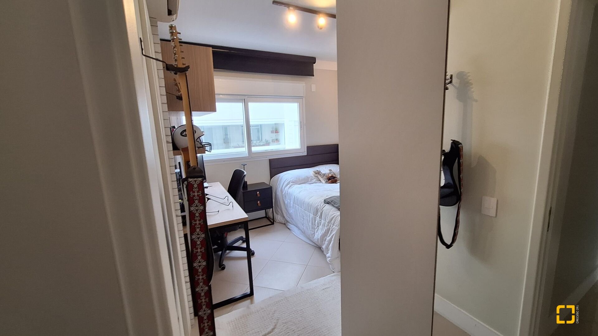 Acabamentos premium: esquadrias linha gold, porcelanato brilhante nas áreas sociais e fosco na área íntima, rebaixo em gesso e projeto luminotécnico