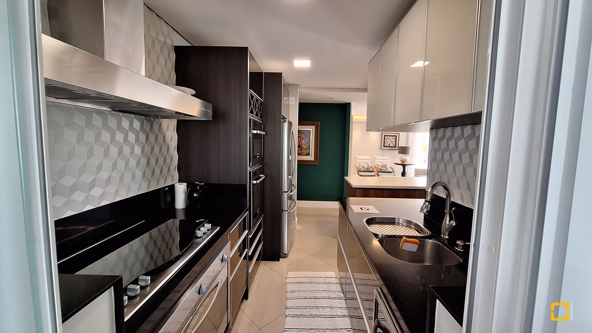 Cozinha com decoração moderna e sofisticada