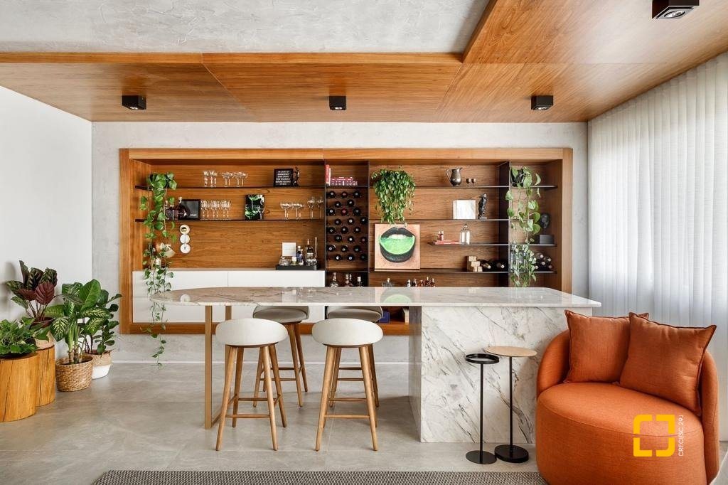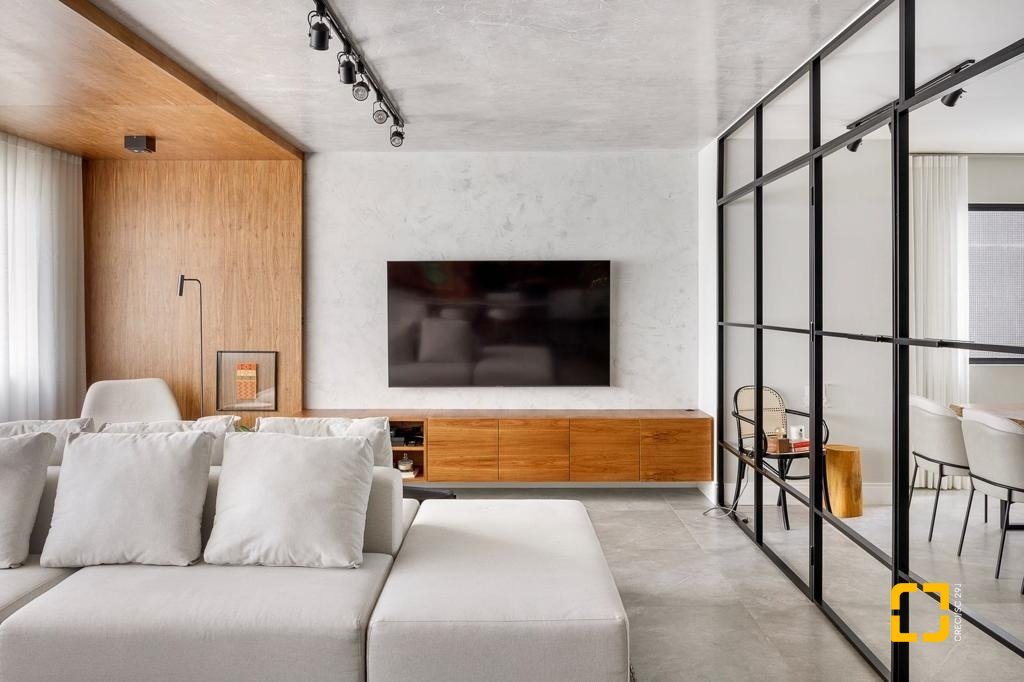 - Ampla sala de estar integrada a três ambientes - estar, jantar e bar