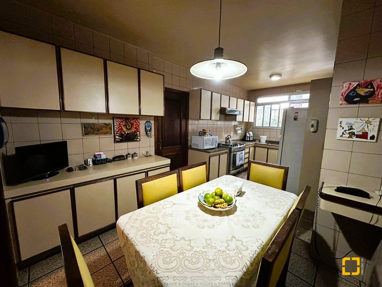 Cozinha ampla com mesa para 6 lugares
