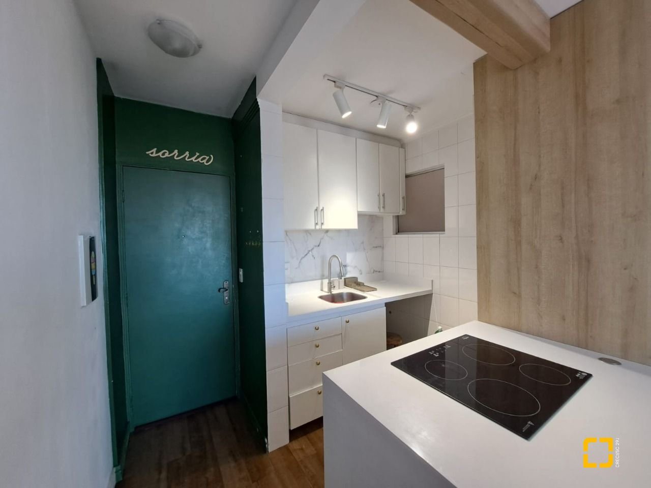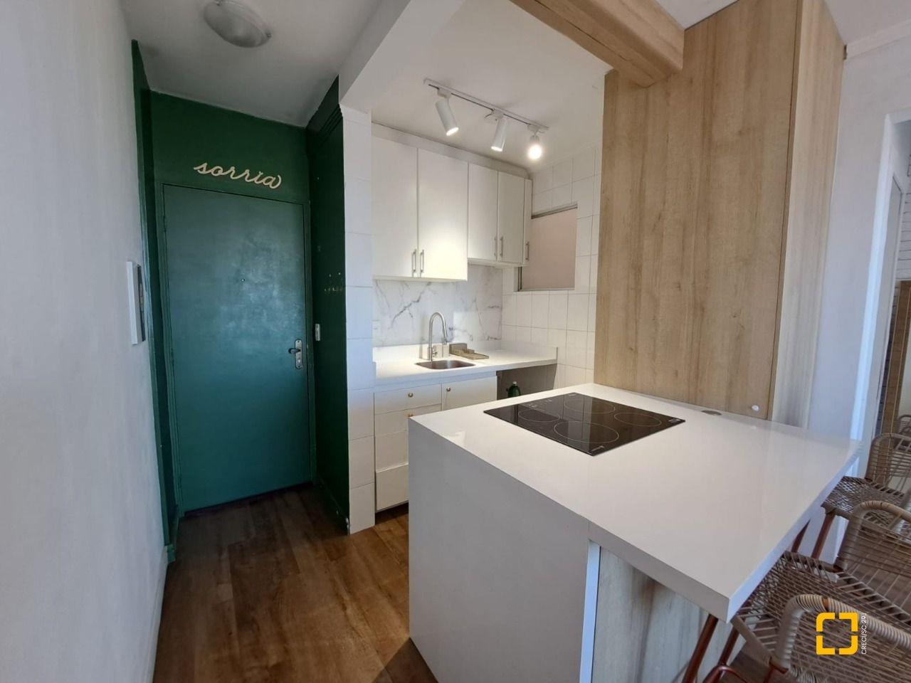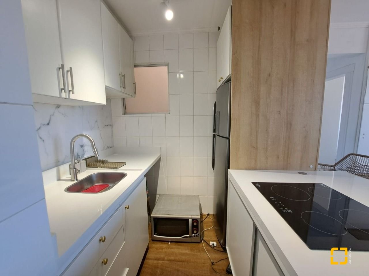 O apartamento conta com piso vinílico, móveis planejados em todos os cômodos, inclusive espaço para home-office, box de vidro no banheiro e sacada fechada de vidro.