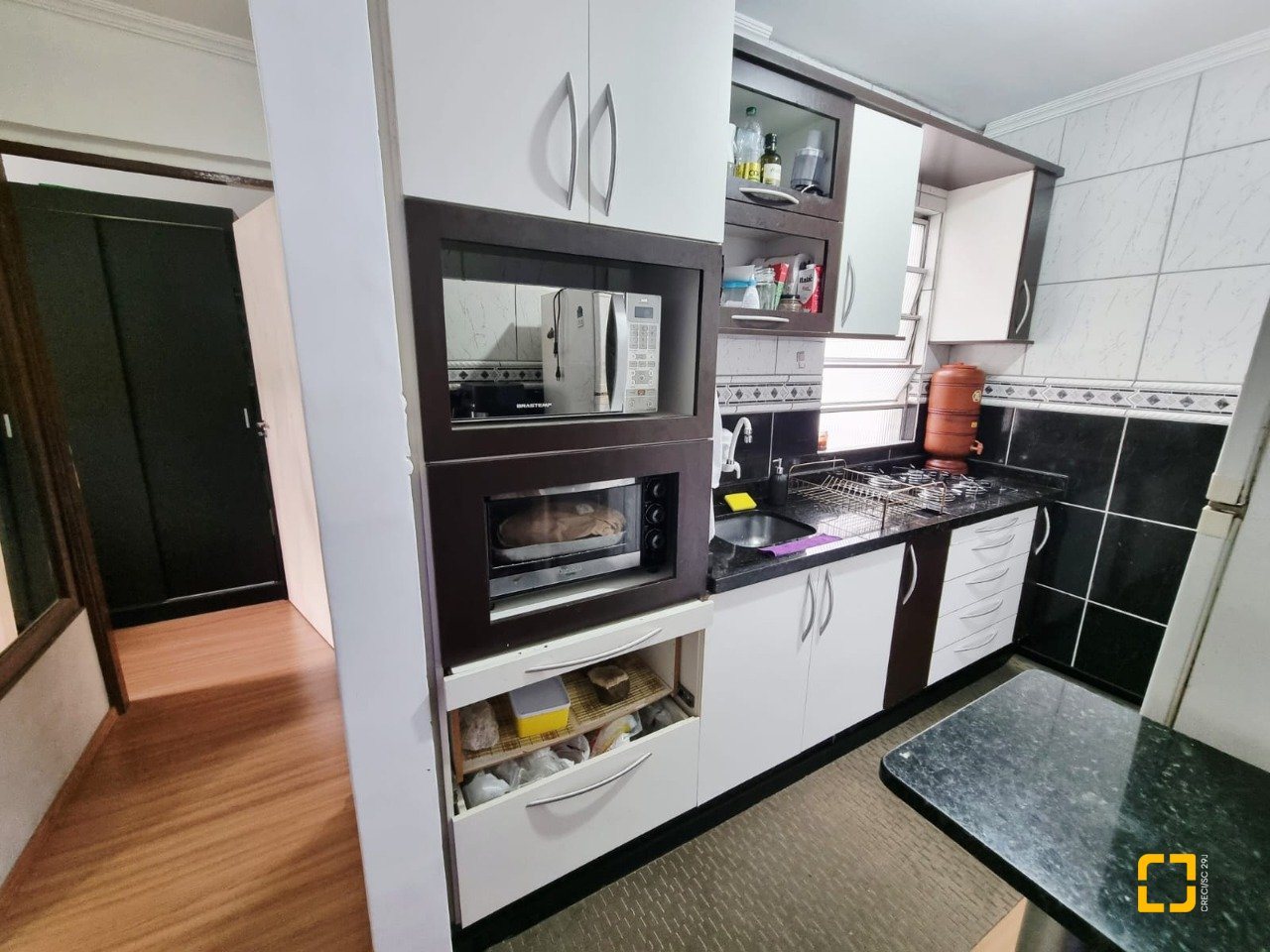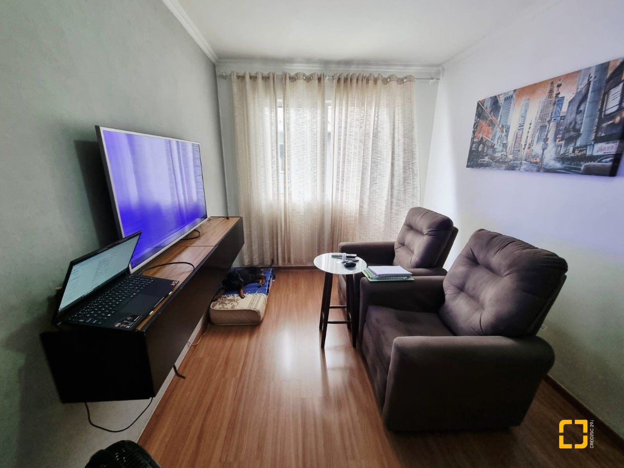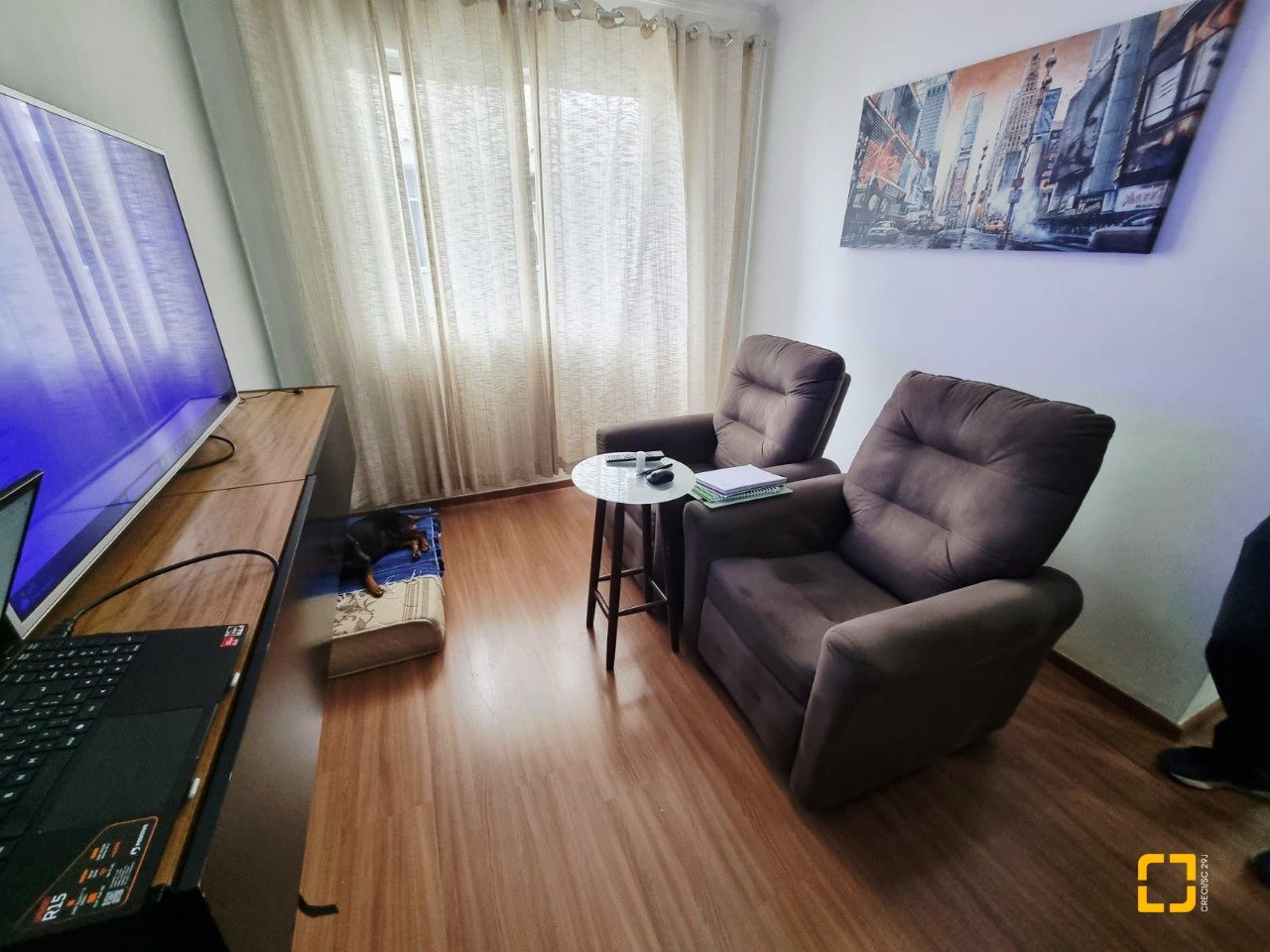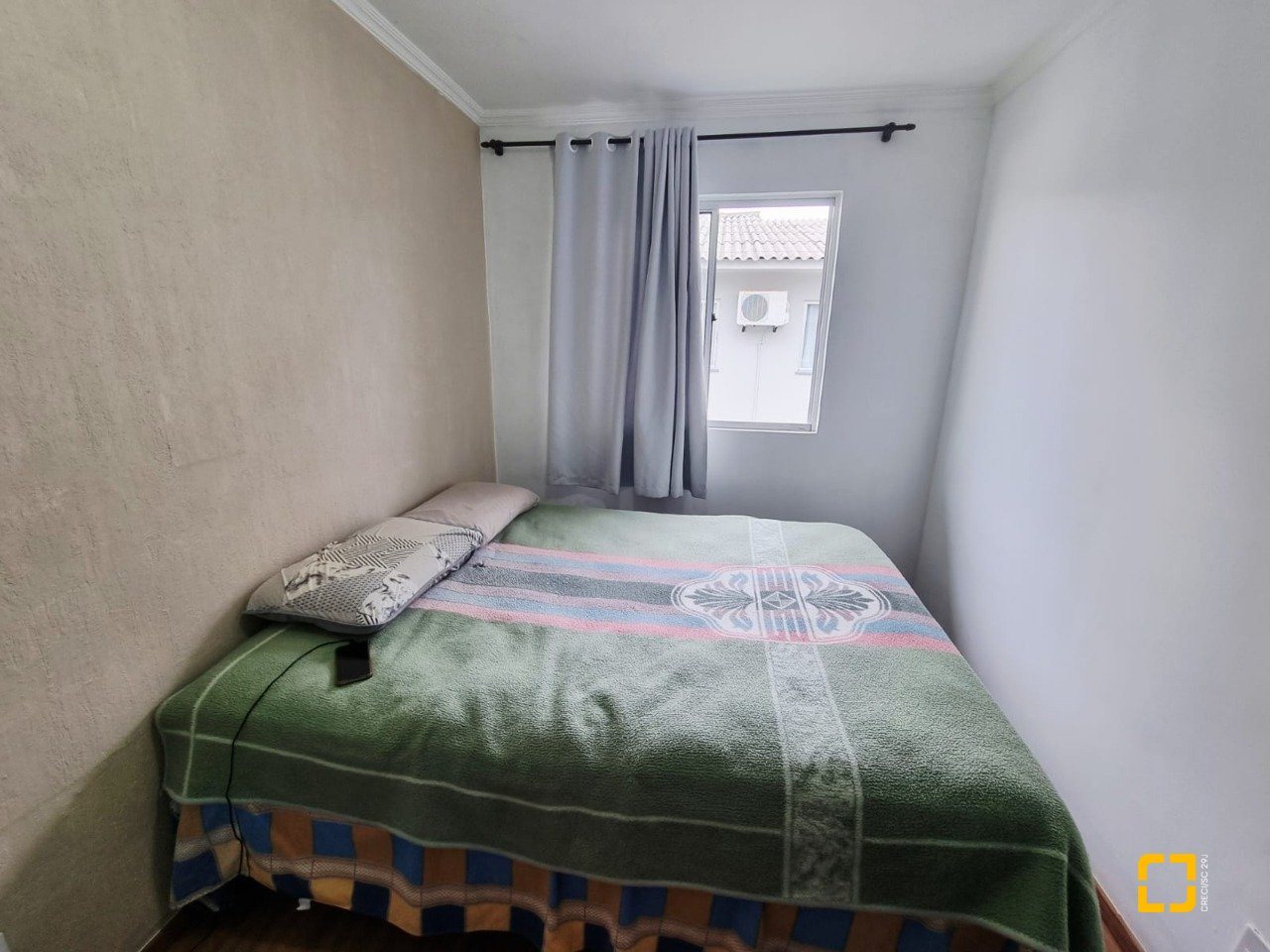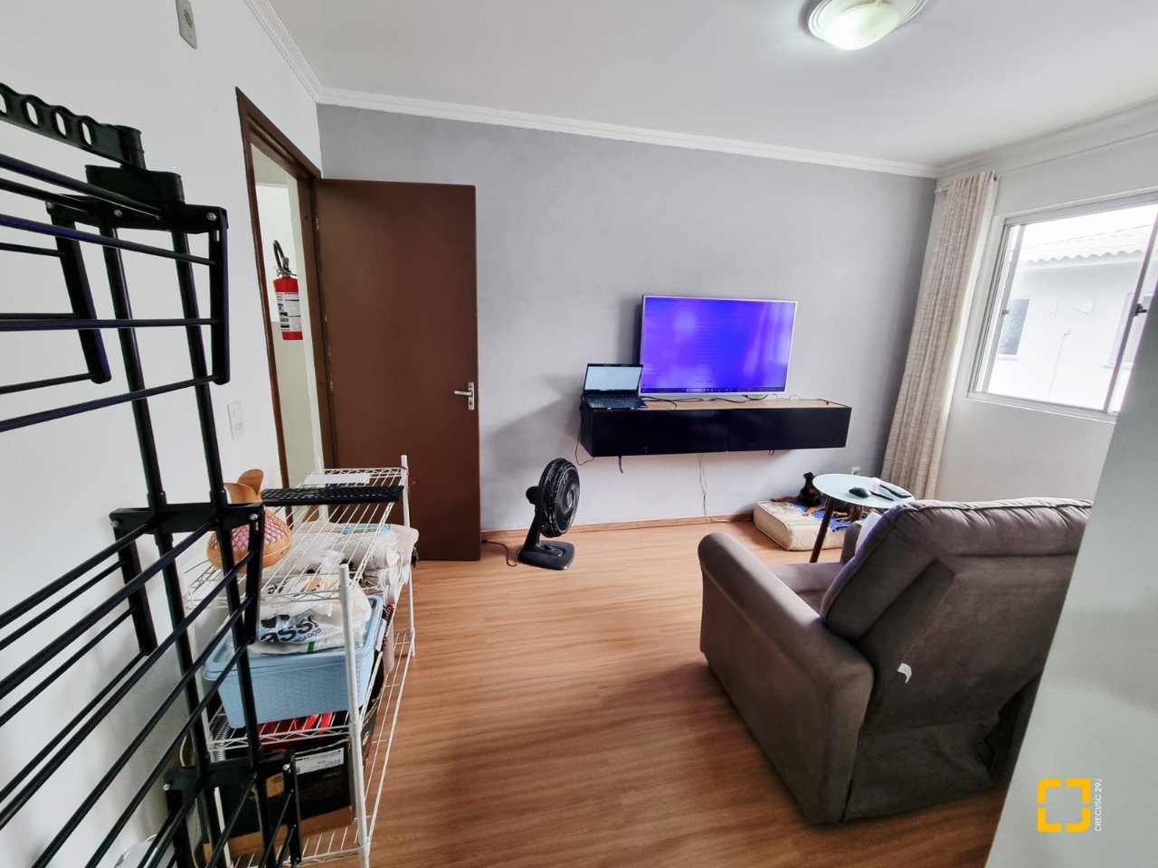 Apto no Bairro Pachecos em Palhoça com dois quartos, sala, cozinha, banheiro, área de serviço e garagem rotativa., sol da manhã.