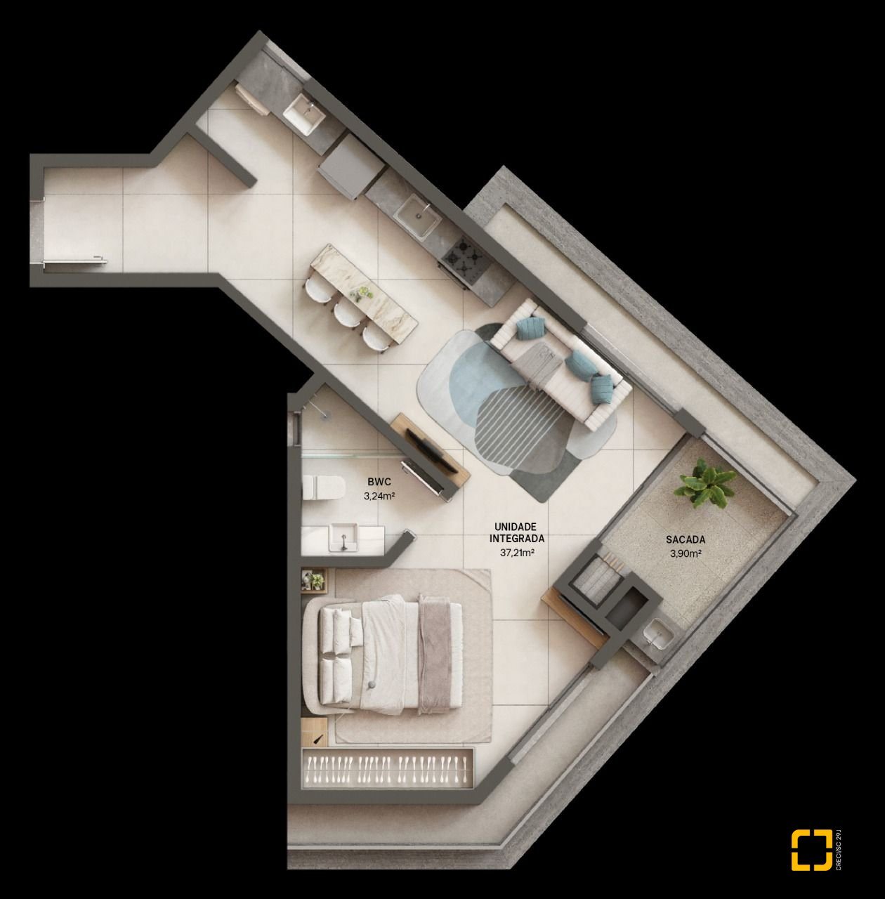 BROGNOLI VENDE- Apartamento com 01 dormitório, sendo suíte, living integrado com cozinha, sacada com churrasqueira, lavanderia, e uma vaga de garagem.