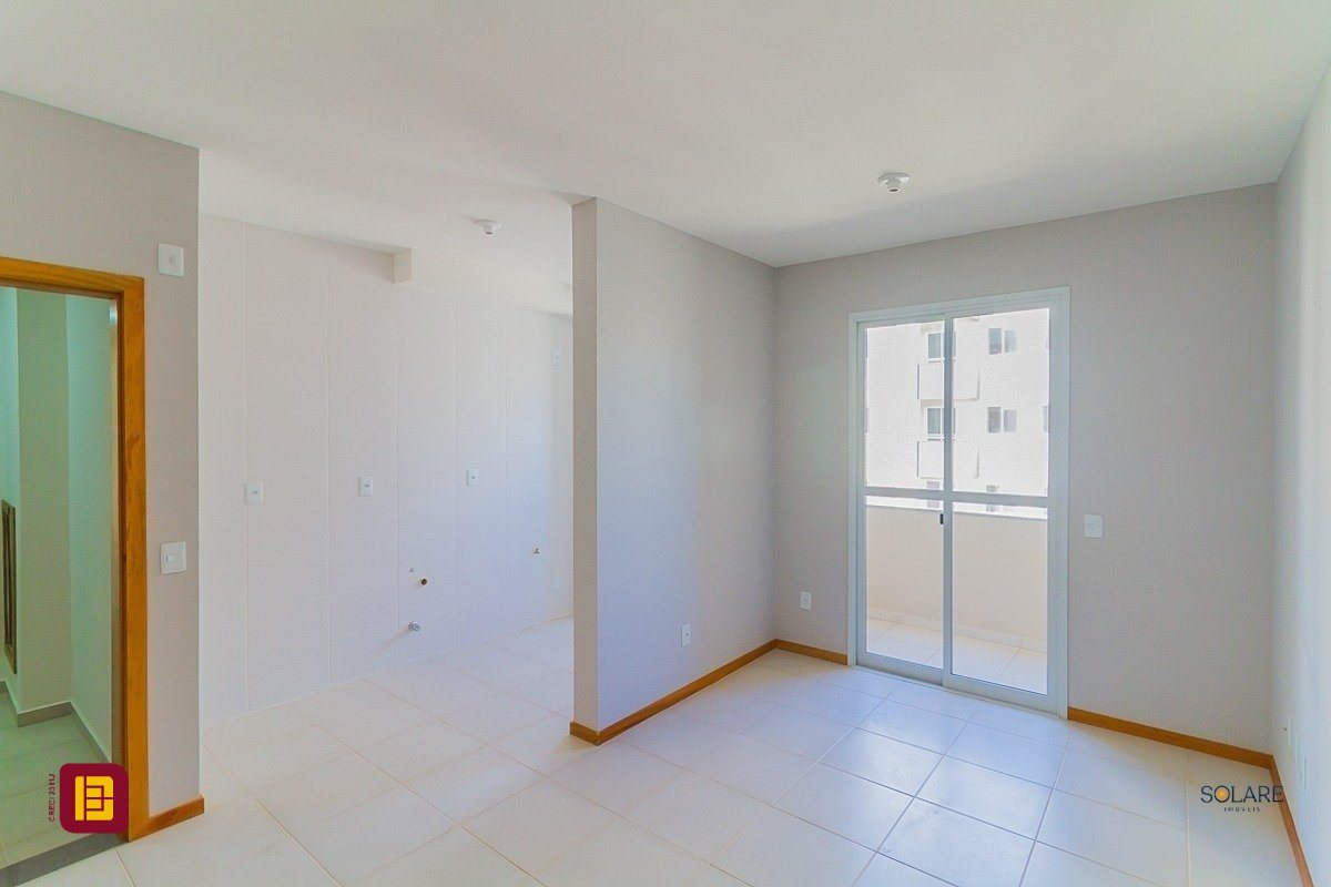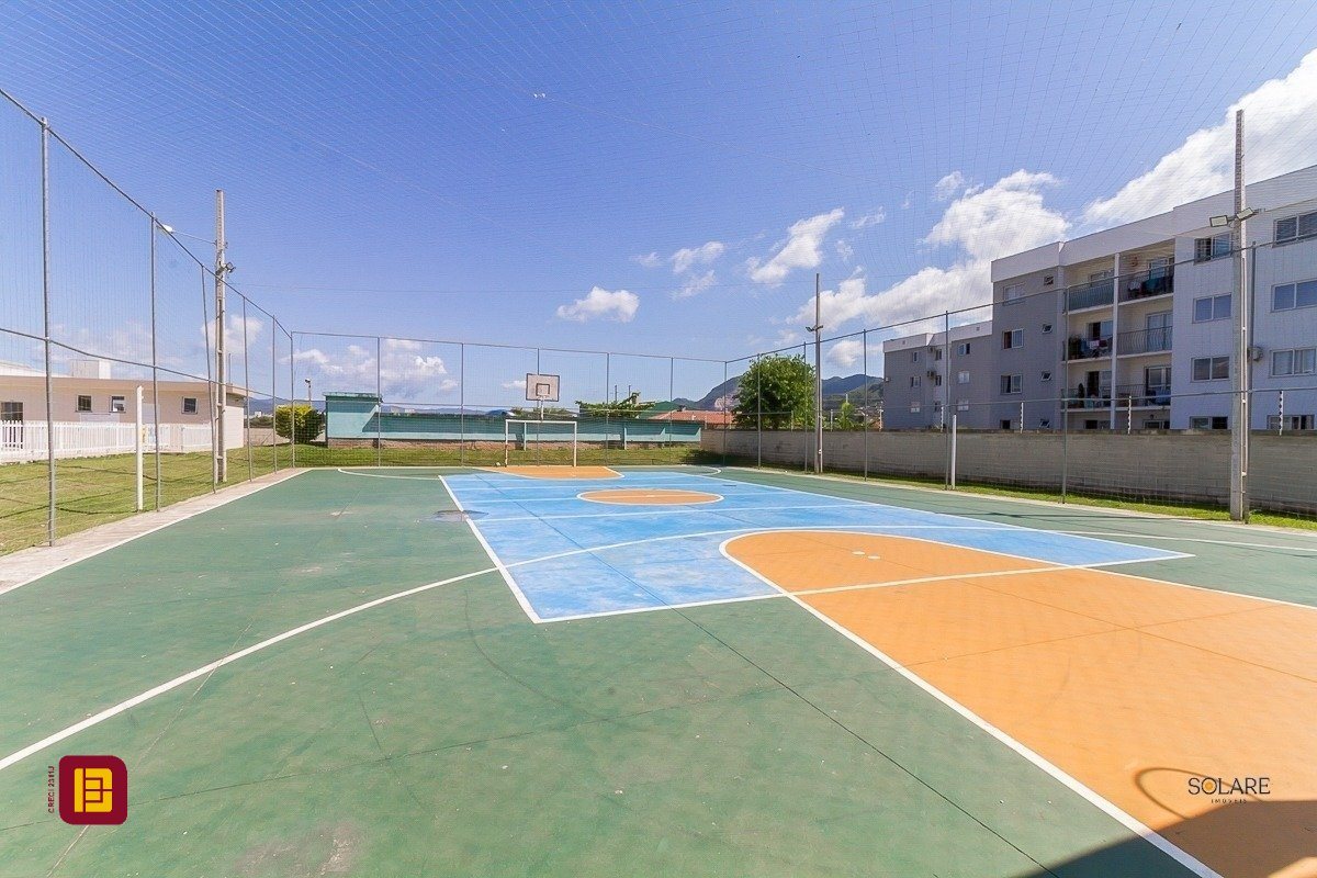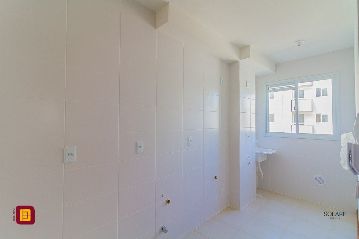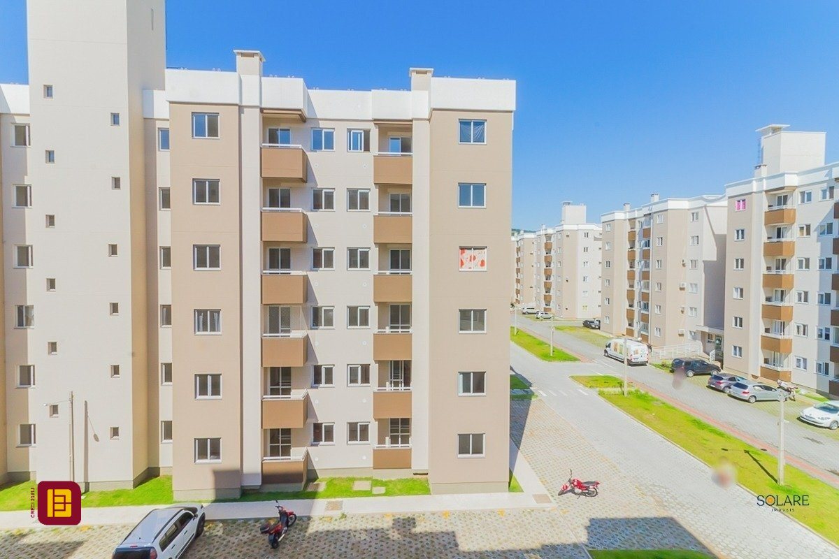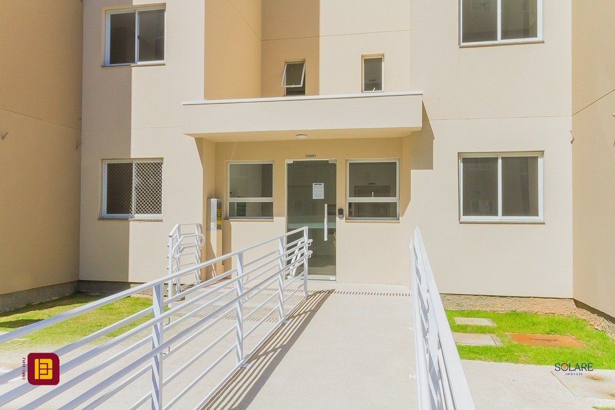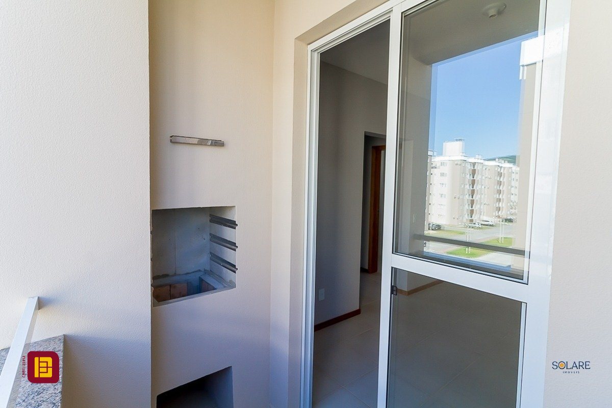 Apartamento a venda de 02 dormitórios, cozinha, área de serviço integradas, sala de estar/jantar, sacada com churrasqueira, 01 banheiro e 01 vaga de estacionamento, no bairro Vendaval em Biguaçu, SC.