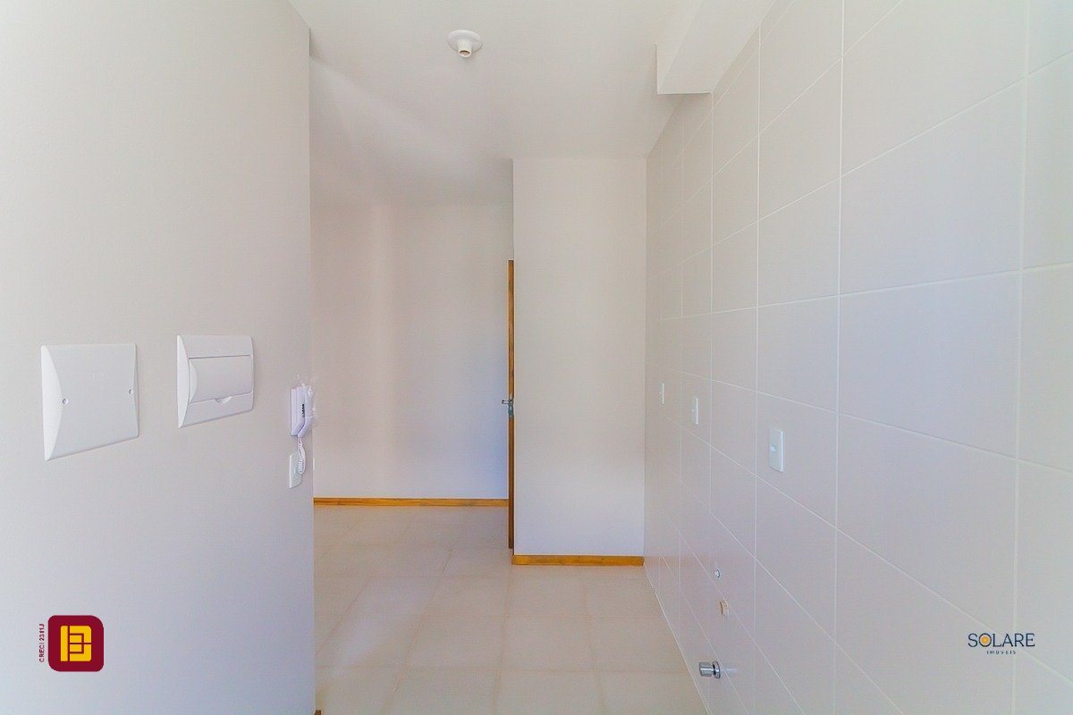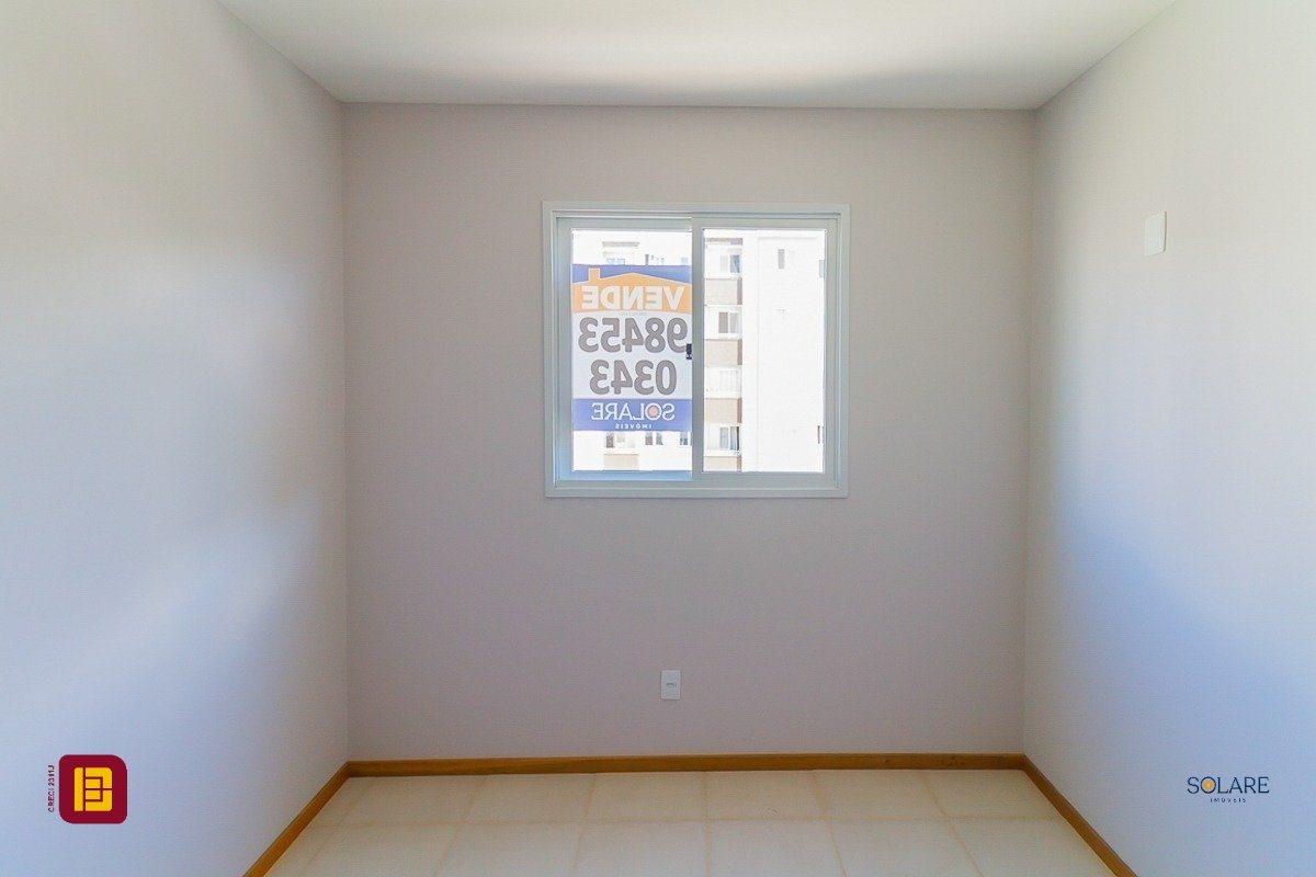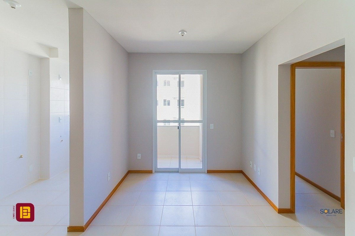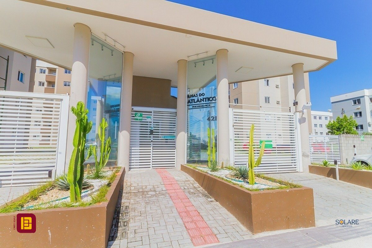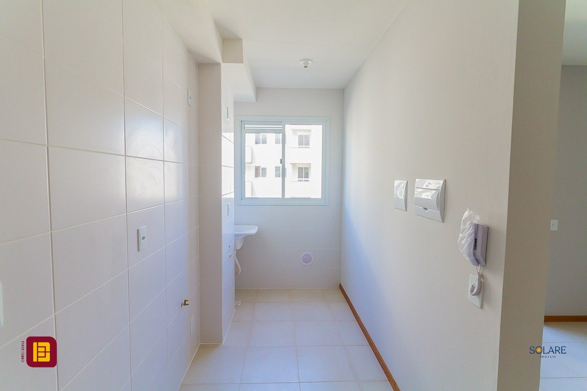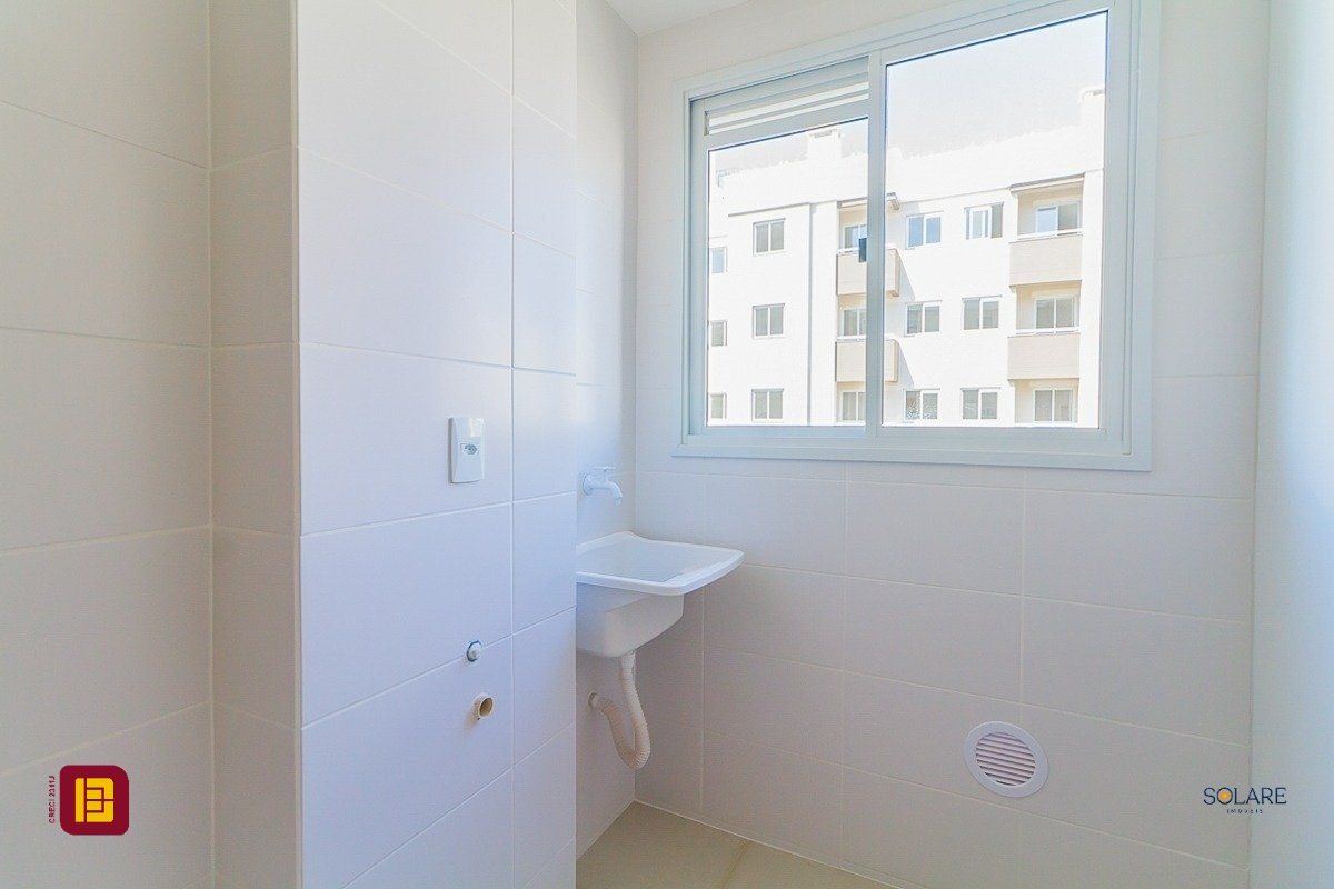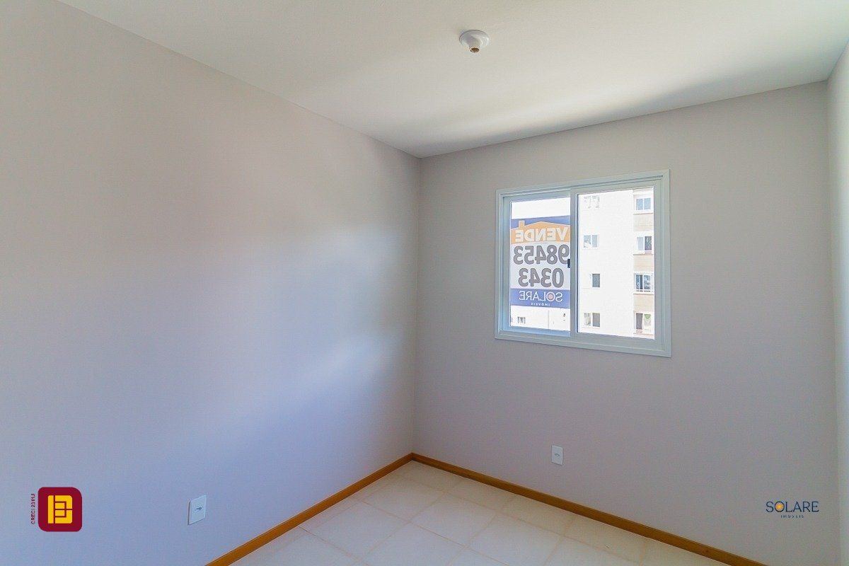Apartamento a venda de 02 dormitórios, cozinha, área de serviço integradas, sala de estar/jantar, sacada com churrasqueira, 01 banheiro e 01 vaga de estacionamento, no bairro Vendaval em Biguaçu, SC.
