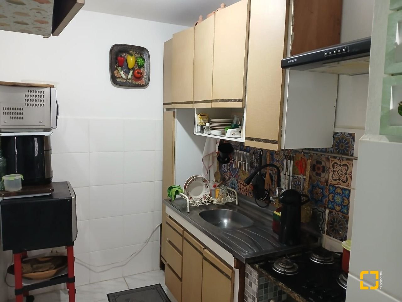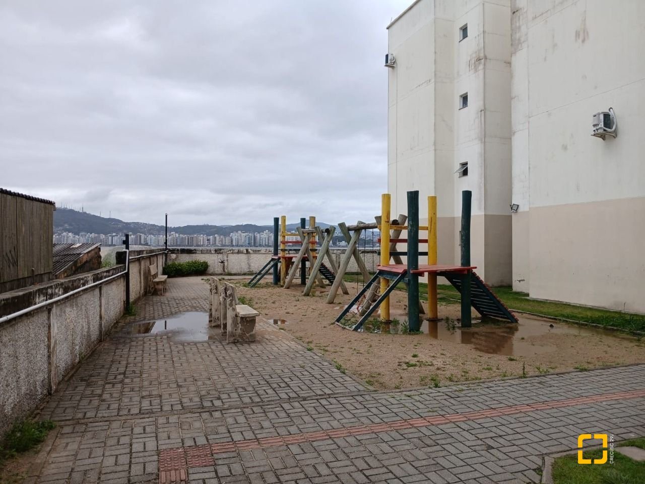 Apartamento de 2 dormitórios ,living com sacada e churrasqueira,cozinha e área de serviço,localizado no Balneário Estreito ao lado mar,o condomínio com estacionamento,playground,zelador,interfone e gás central.