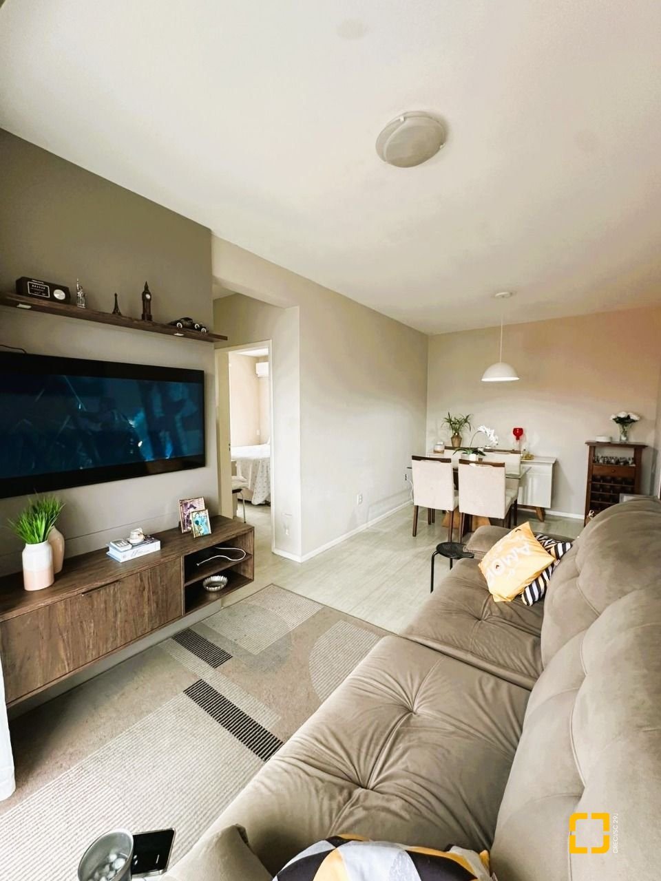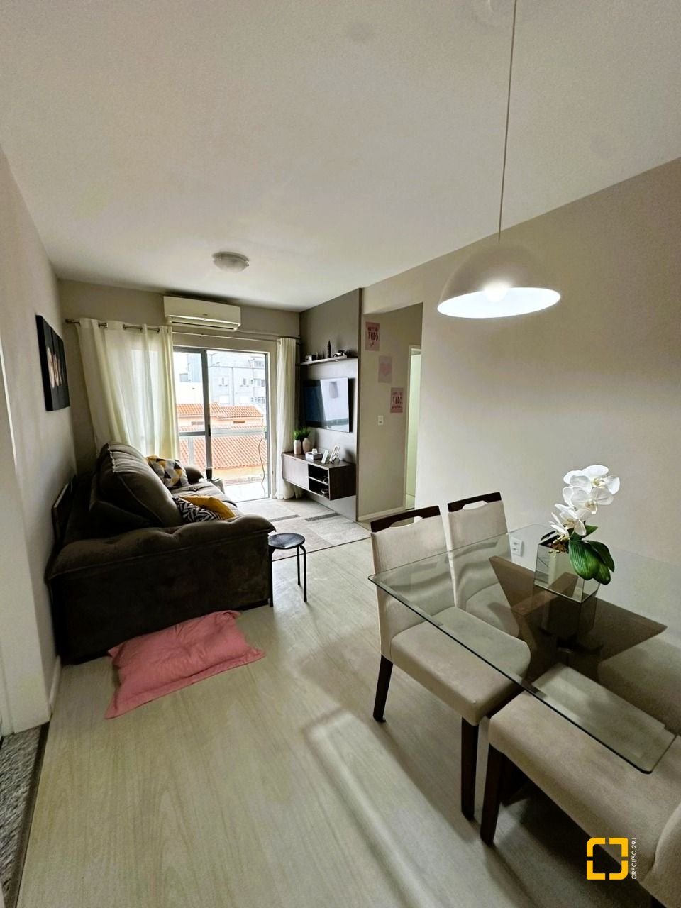 Apartamento encantador com 2 dormitórios, planta bem distribuída e ambientes integrados de estar e jantar. Conta com sacada fechada em sistema Reiki, cozinha funcional com área de serviço e móveis planejados, além de piso laminado nas áreas sociais e porcelanato no banheiro.
