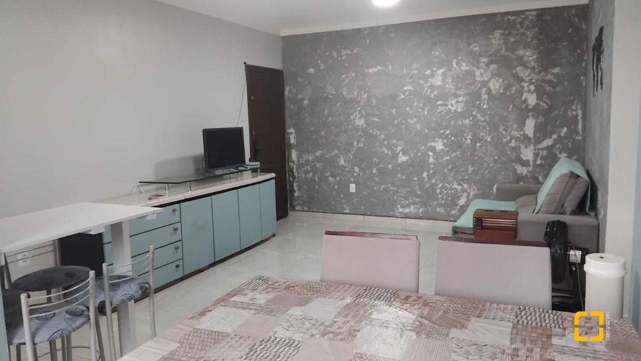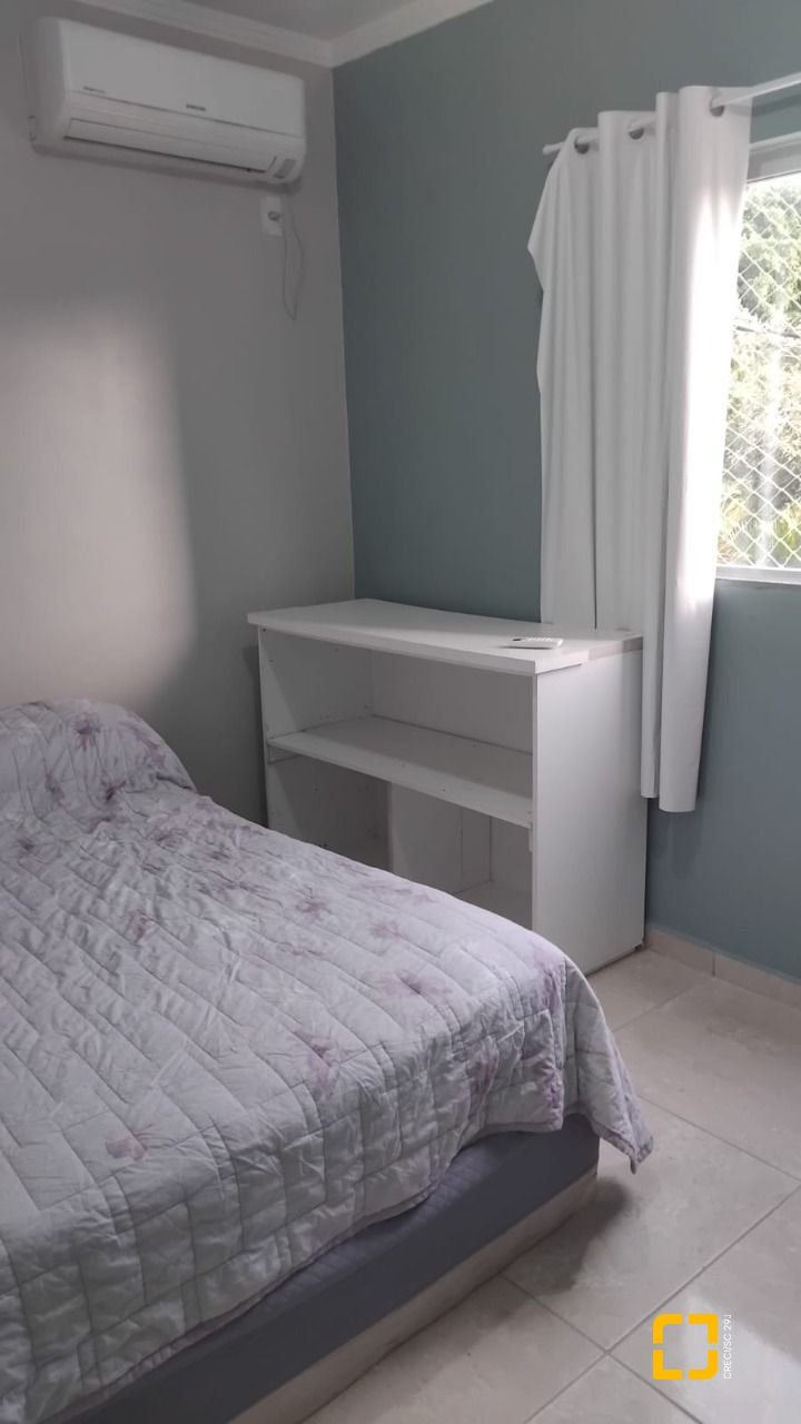 Apartamento com mobília, cozinha completa, sala, mais armários, ar condicionado no dormitório.