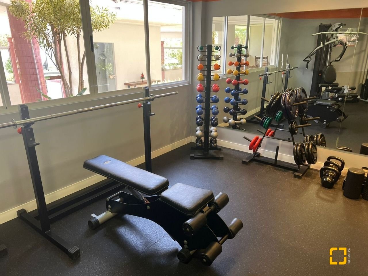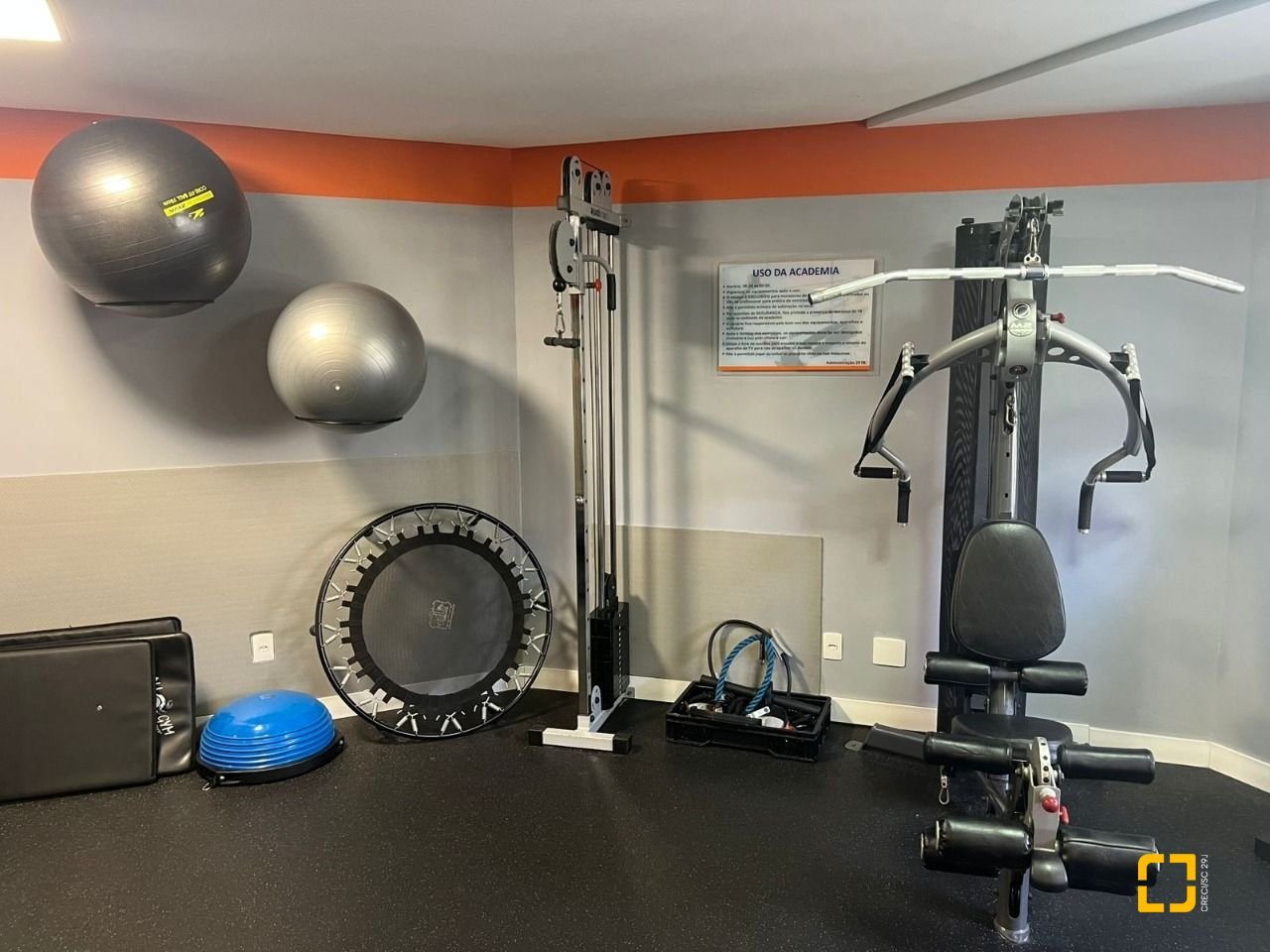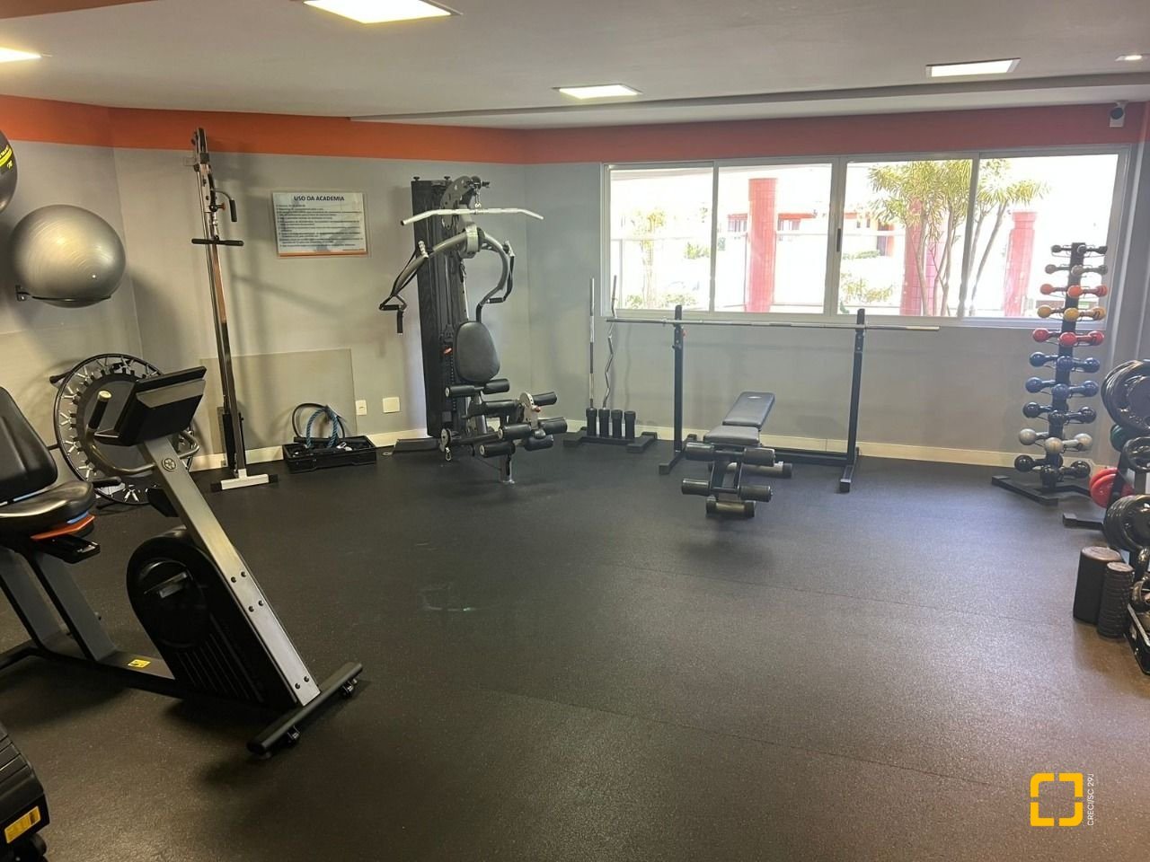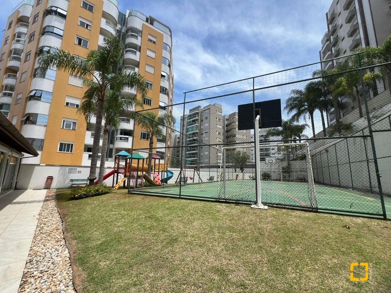O condomínio conta com brinquedoteca, quadra poliesportiva, salão gourmet, salão de festas com churrasqueira e academia.