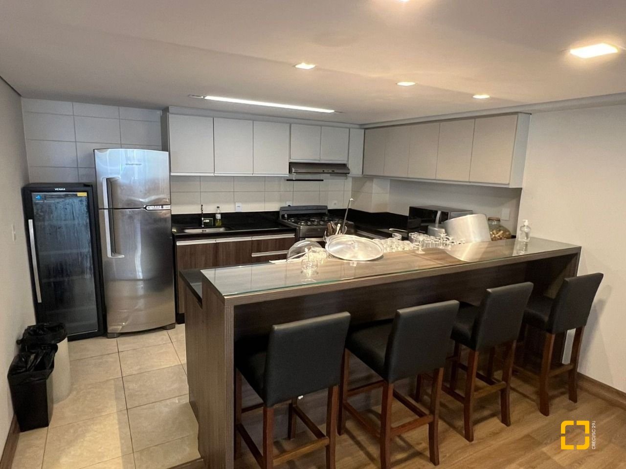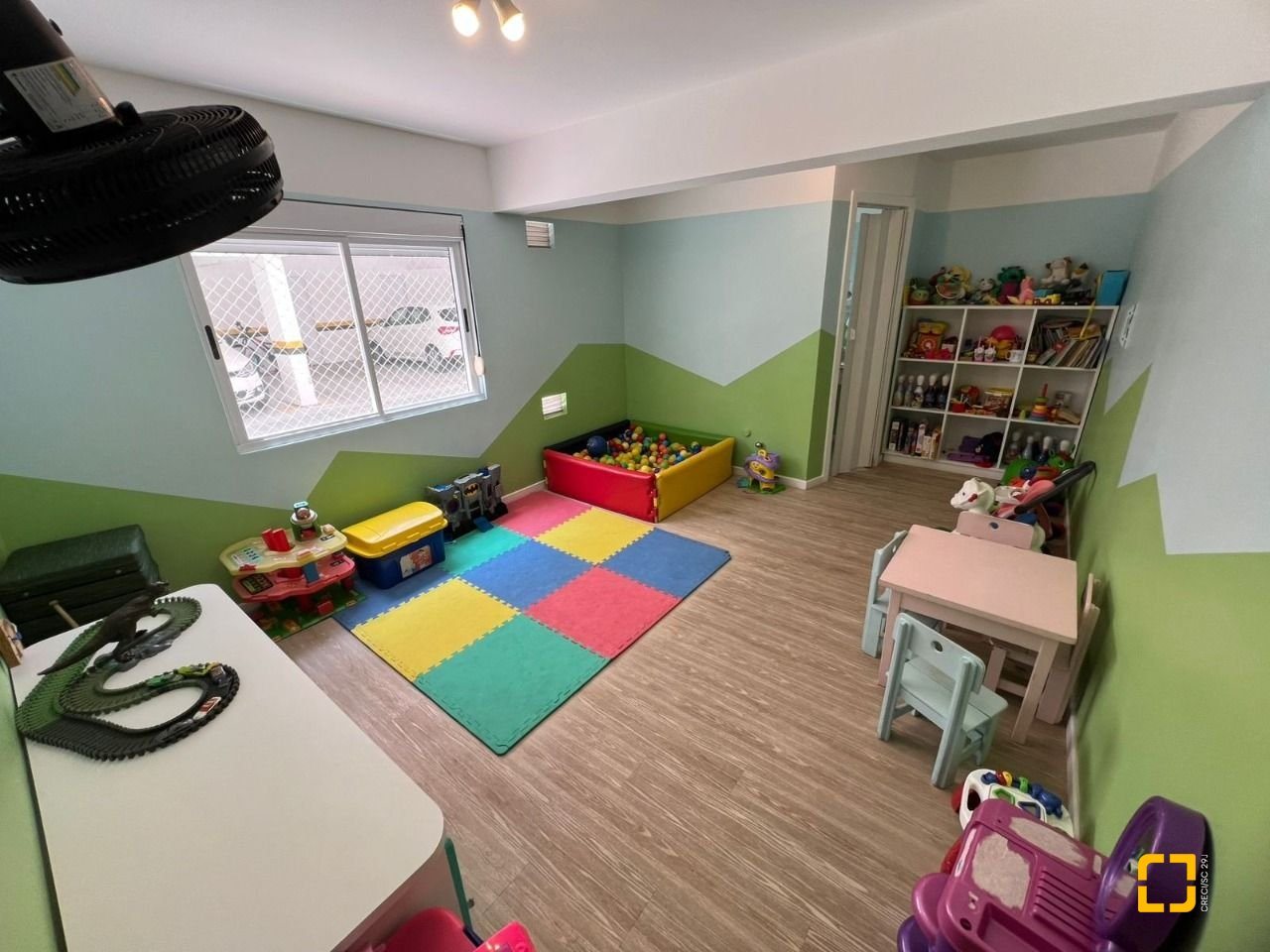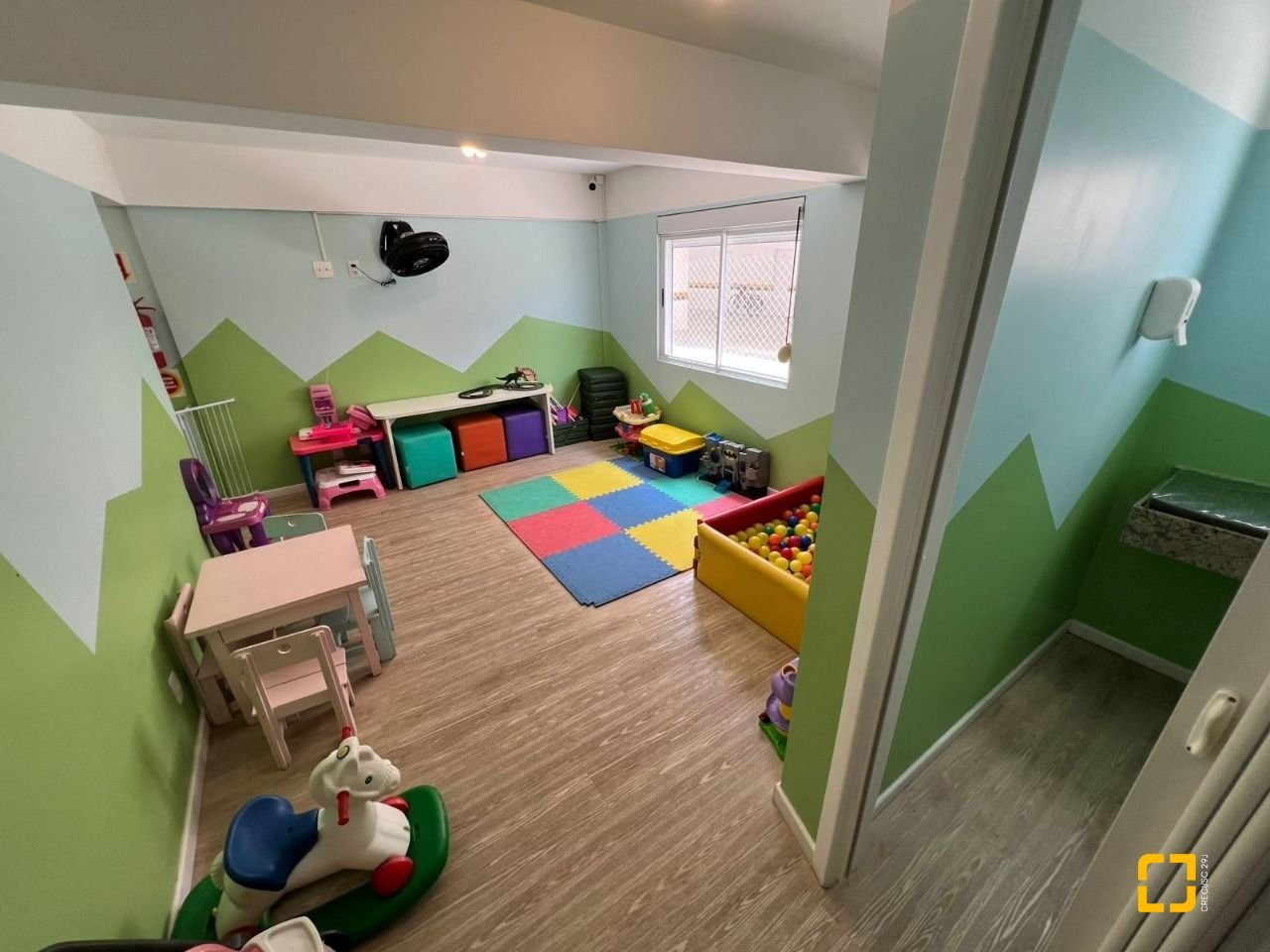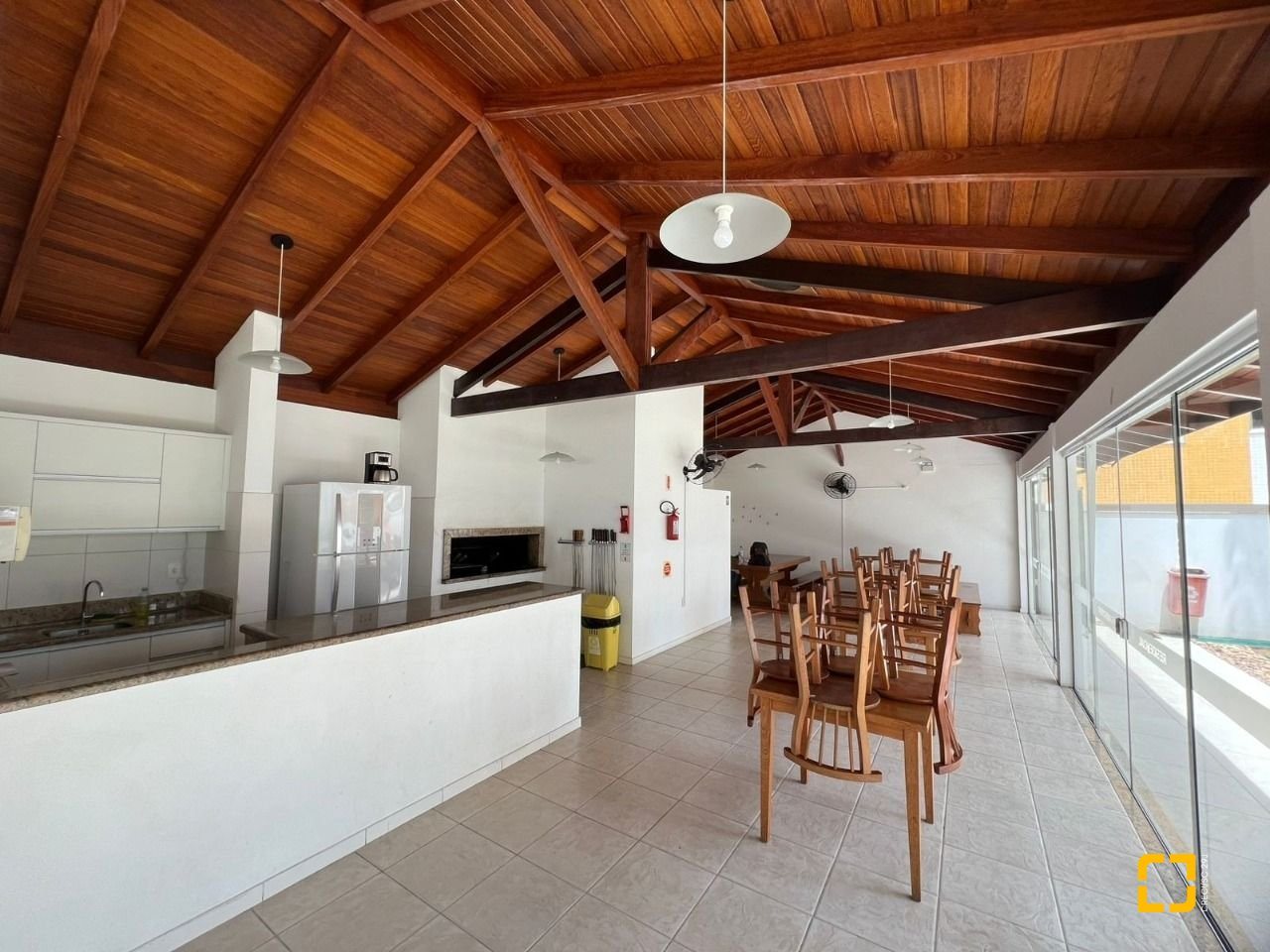 O condomínio conta com brinquedoteca, quadra poliesportiva, salão gourmet, salão de festas com churrasqueira e academia.