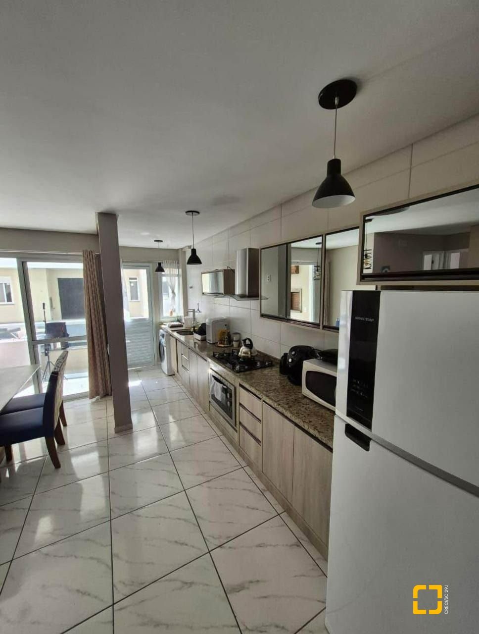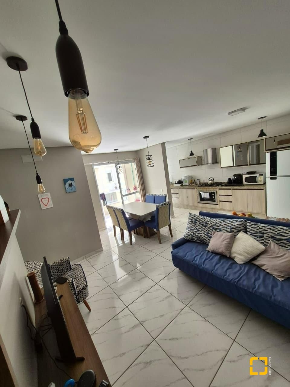 Sala de estar e jantar integradas à cozinha