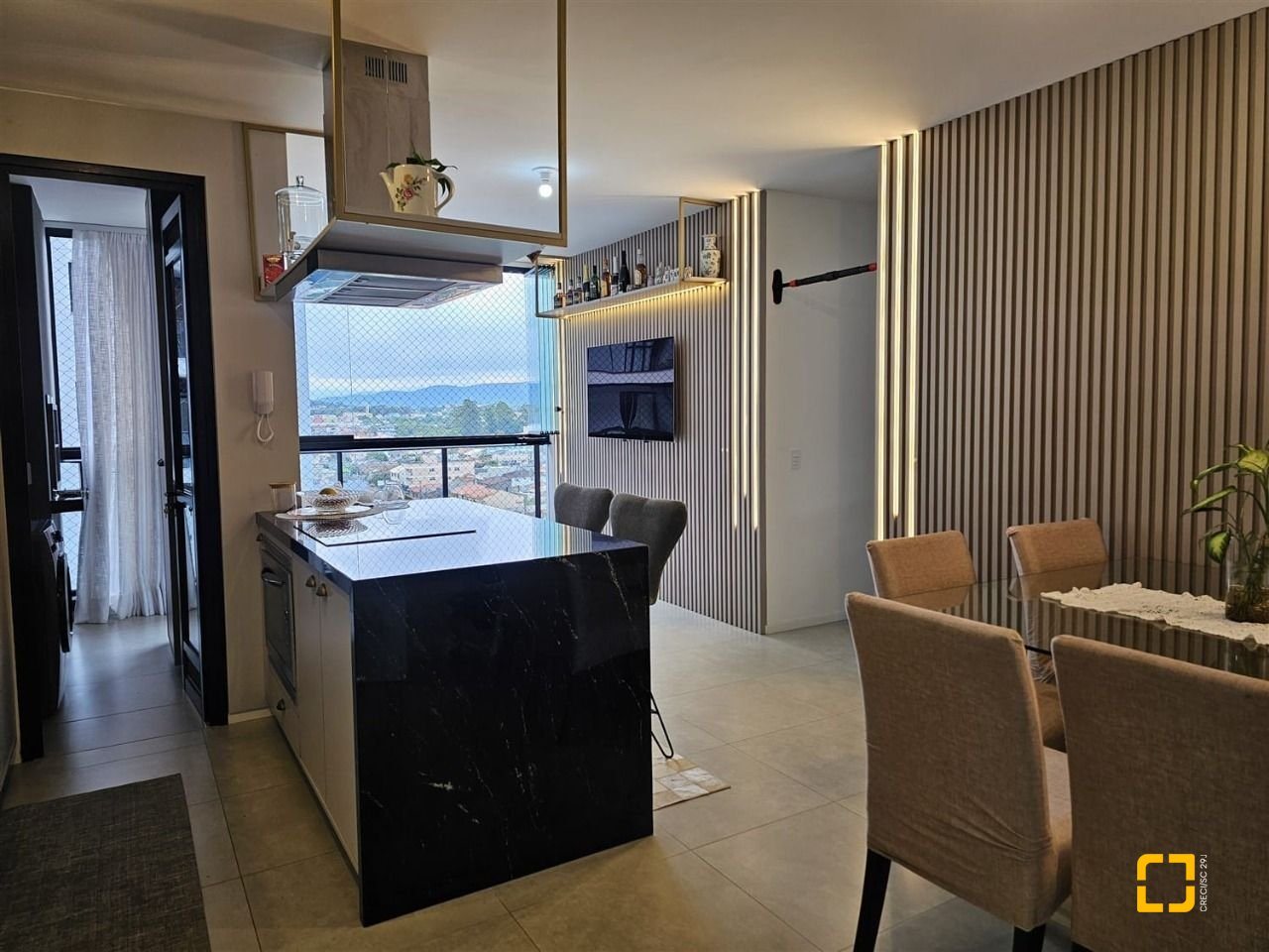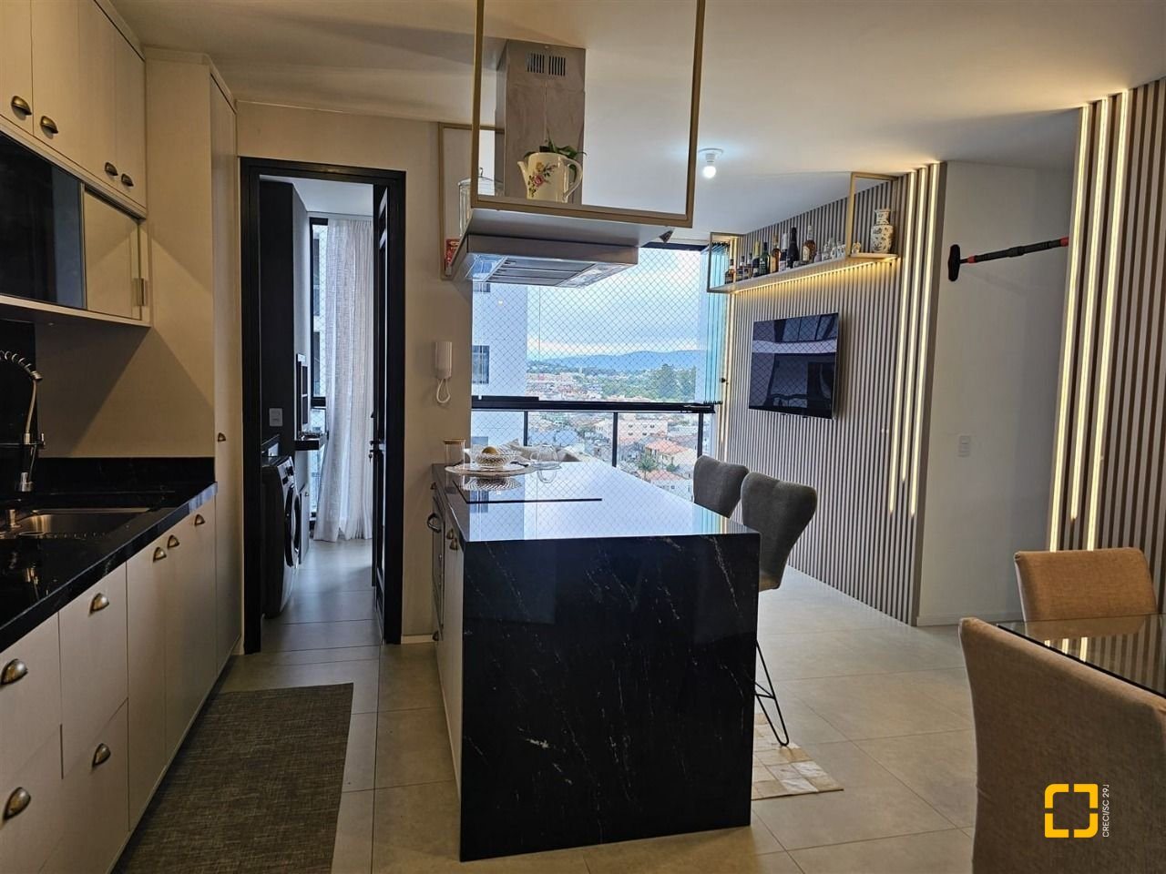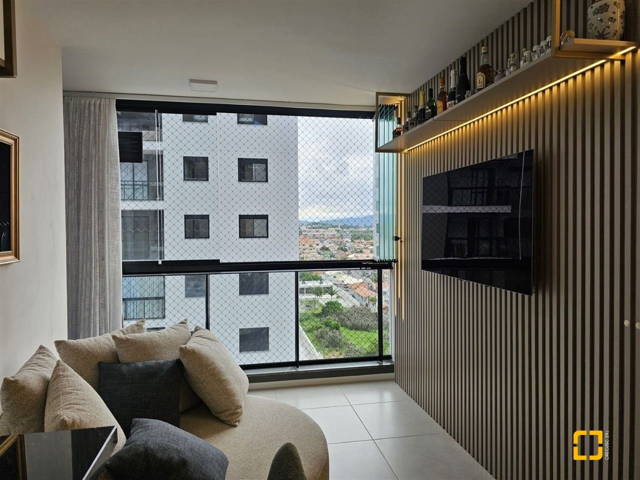 - Sacada com churrasqueira (integrada com a sala);
