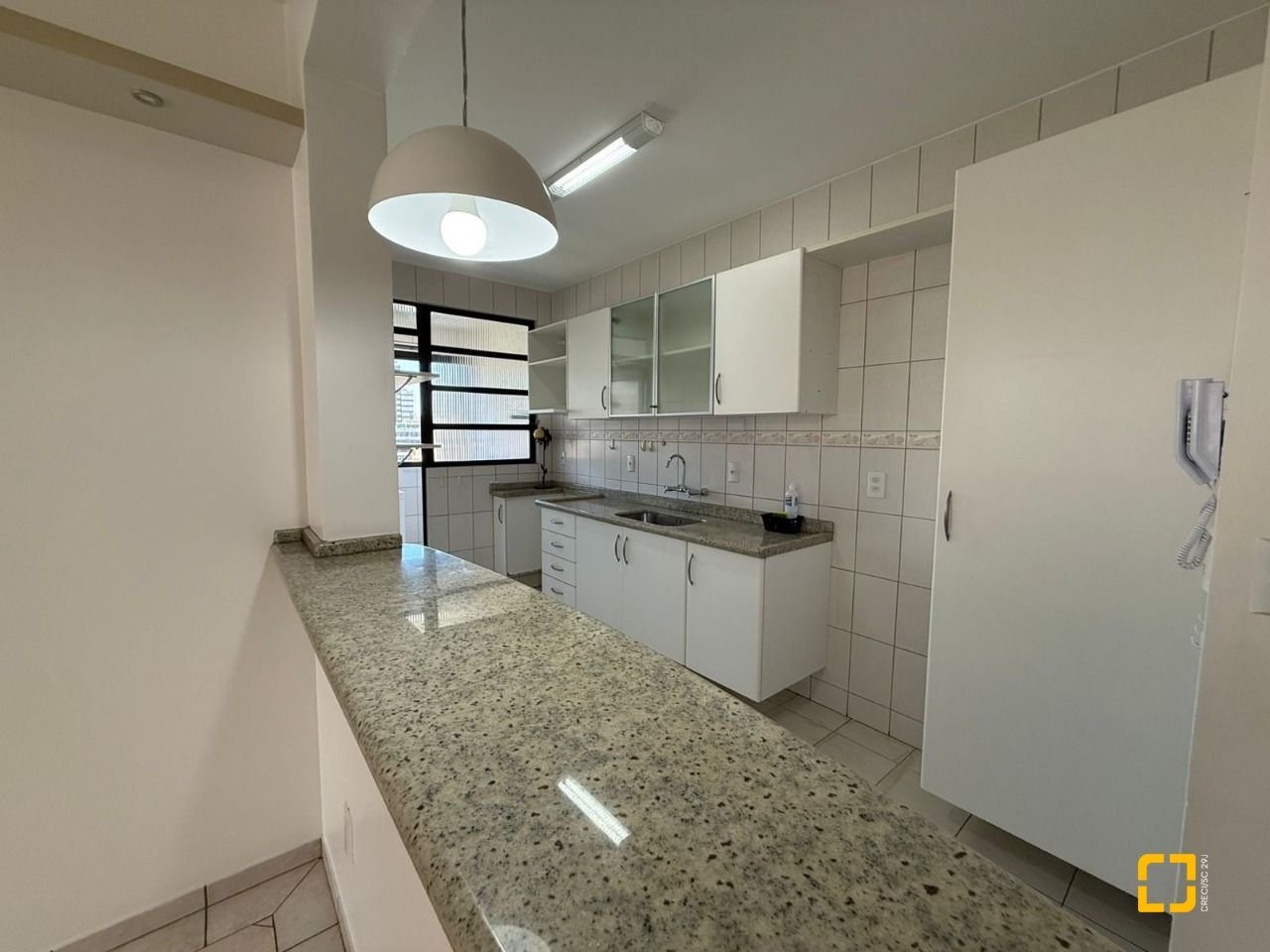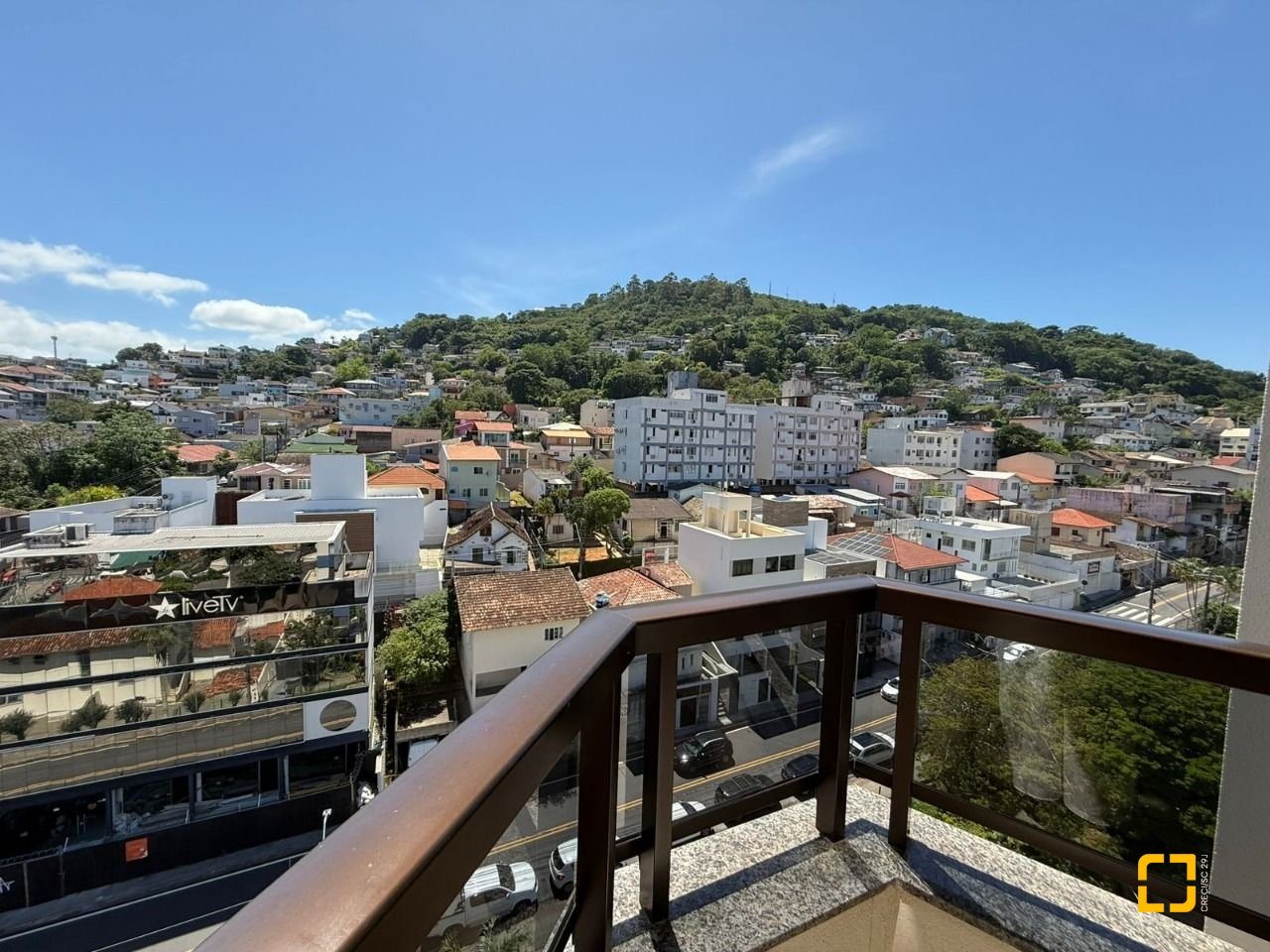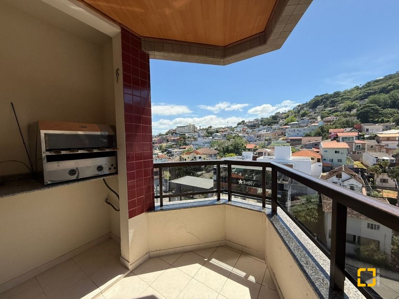 Brognoli vende apartamento em área nobre do Centro de Florianópolis com mais de 76 m2 privativos, distribuídos em 2 quartos, sendo 1 suíte, ambas com armários, banheiro social, sala integrada com a cozinha, dando mais amplitude aos ambientes, varanda com vista panorâmica e churrasqueira elétrica.