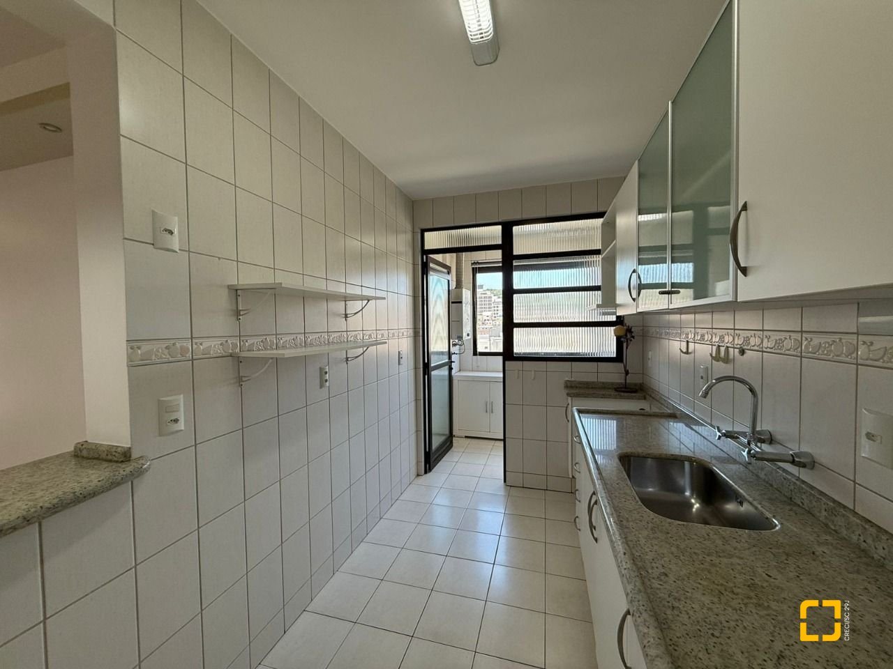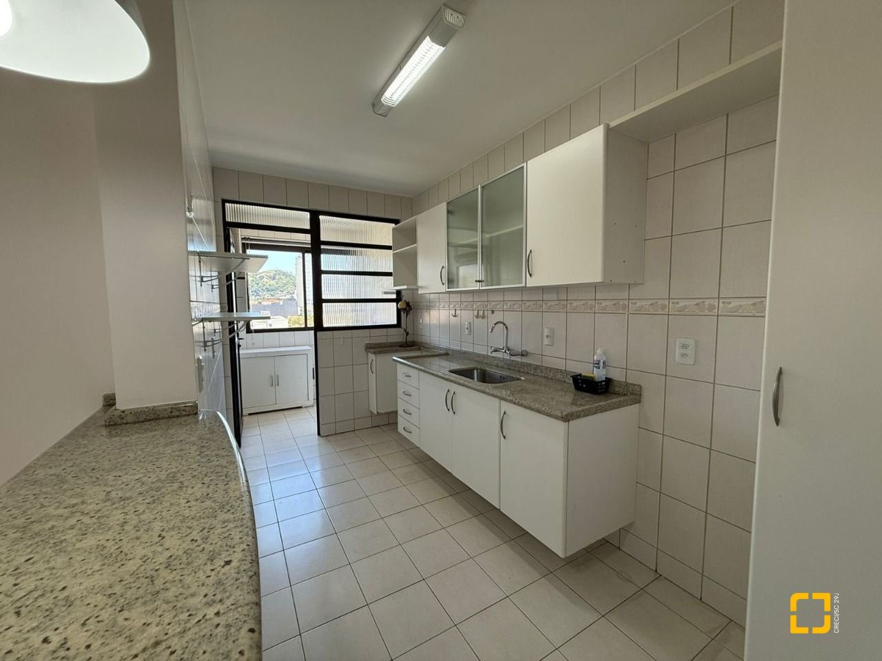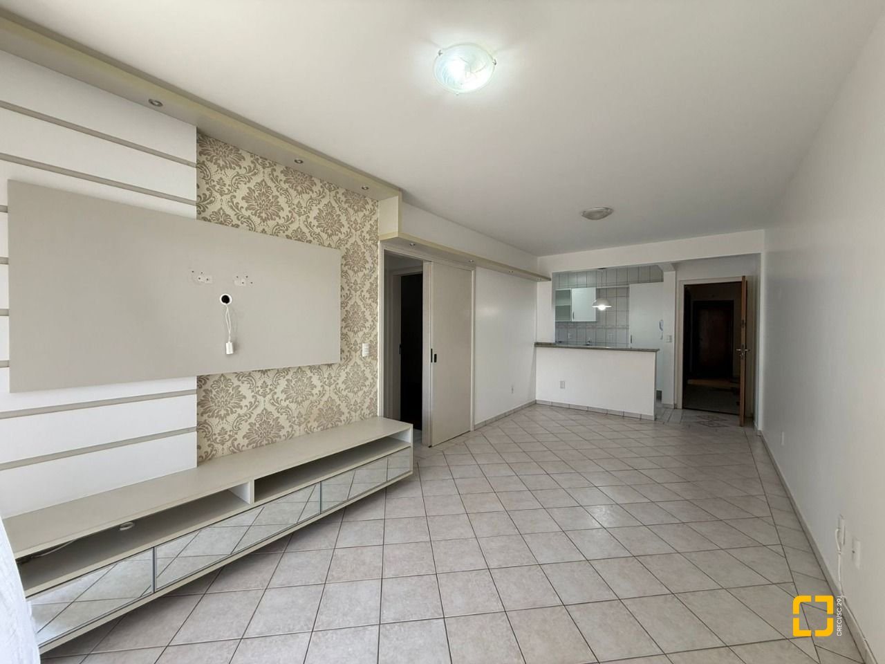 Brognoli vende apartamento em área nobre do Centro de Florianópolis com mais de 76 m2 privativos, distribuídos em 2 quartos, sendo 1 suíte, ambas com armários, banheiro social, sala integrada com a cozinha, dando mais amplitude aos ambientes, varanda com vista panorâmica e churrasqueira elétrica.