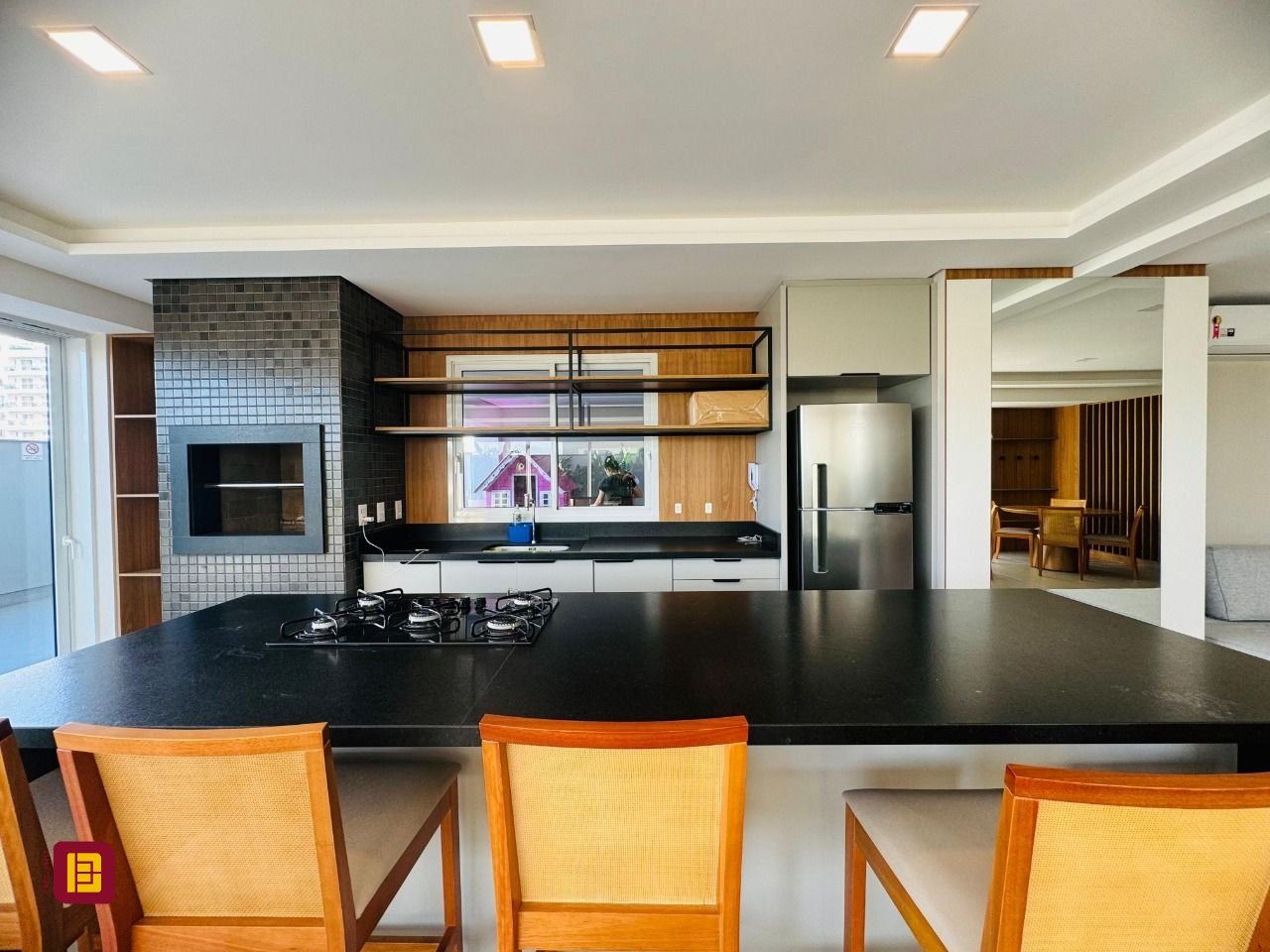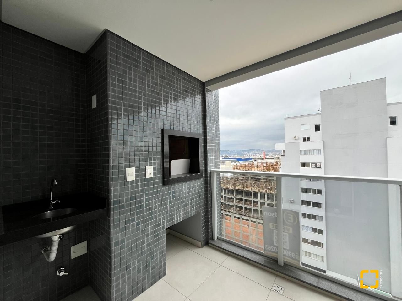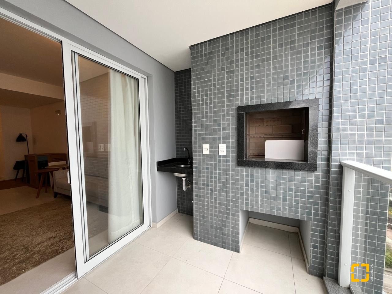 A sacada tem uma churrasqueira, perfeita para momentos de lazer.