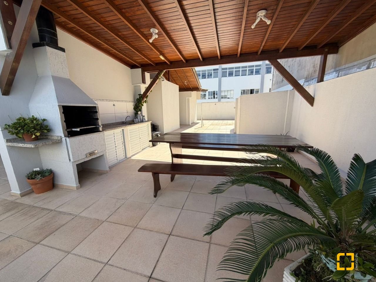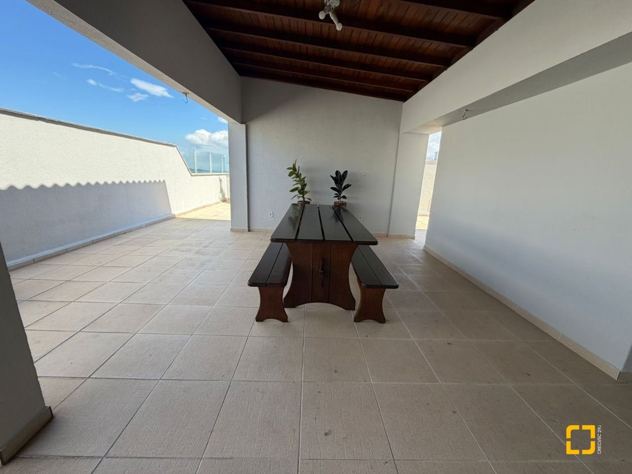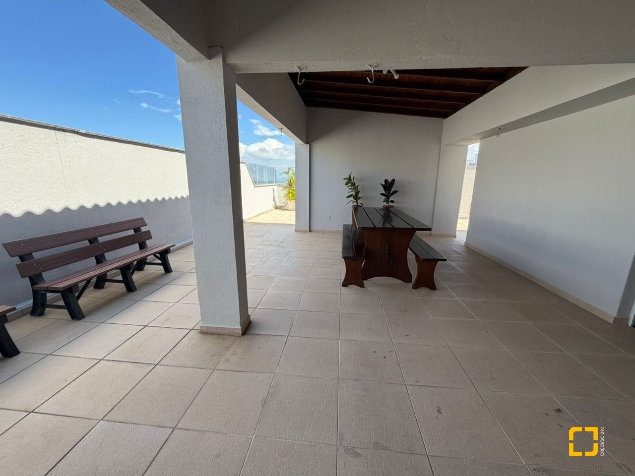 O condomínio oferece salão de festas e um amplo terraço com vista total para o mar, um espaço perfeito para momentos de lazer e confraternização.