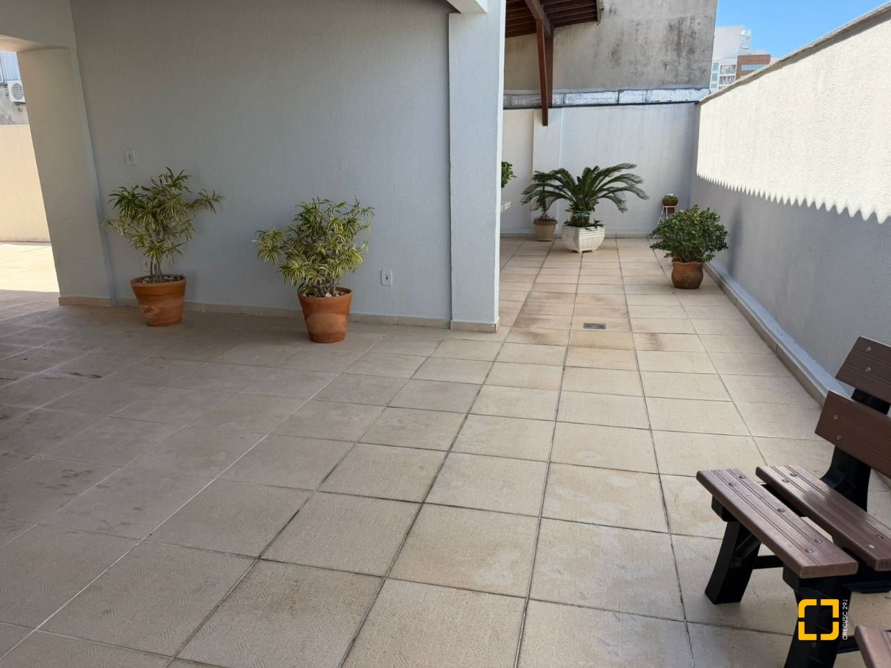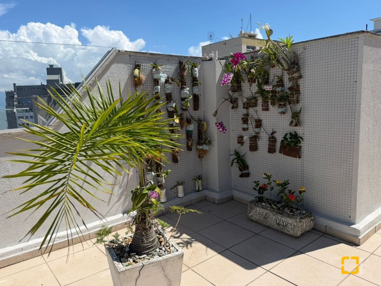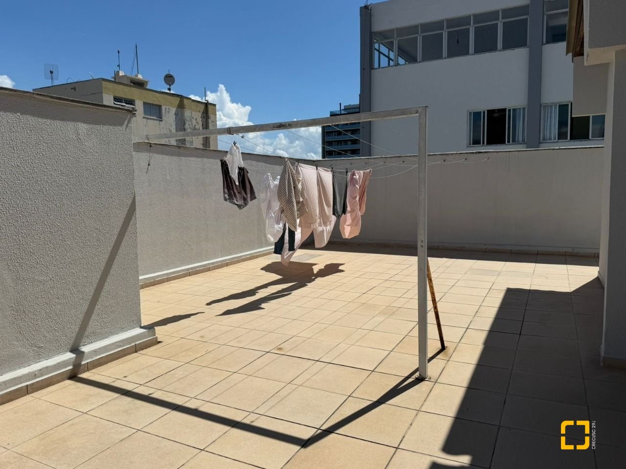 O condomínio oferece salão de festas e um amplo terraço com vista total para o mar, um espaço perfeito para momentos de lazer e confraternização.