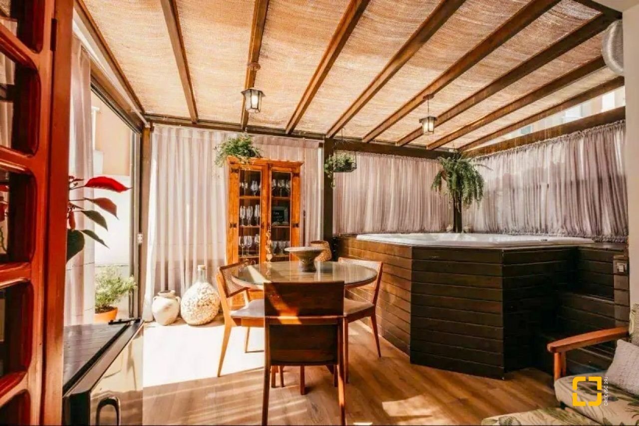 O imóvel possui 02 suítes, lavabo, sala de estar/jantar, cozinha planejada, área de serviço, além de um amplo pátio privativo com Jacuzzi aquecida, churrasqueira e miniquadra de futebol. Conta ainda com 01 vaga de garagem coberta.