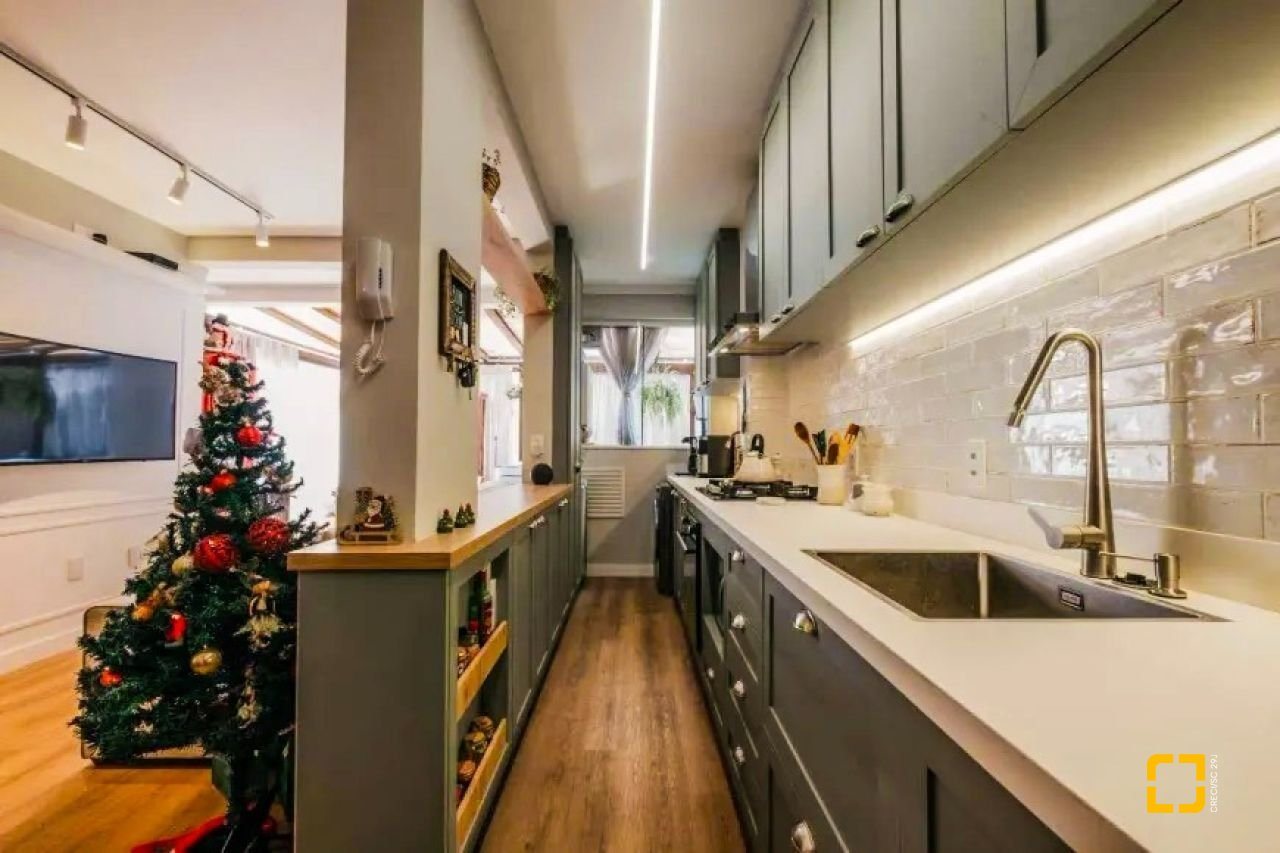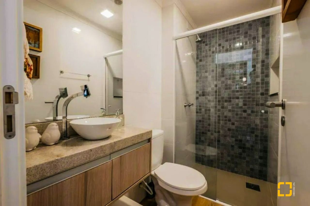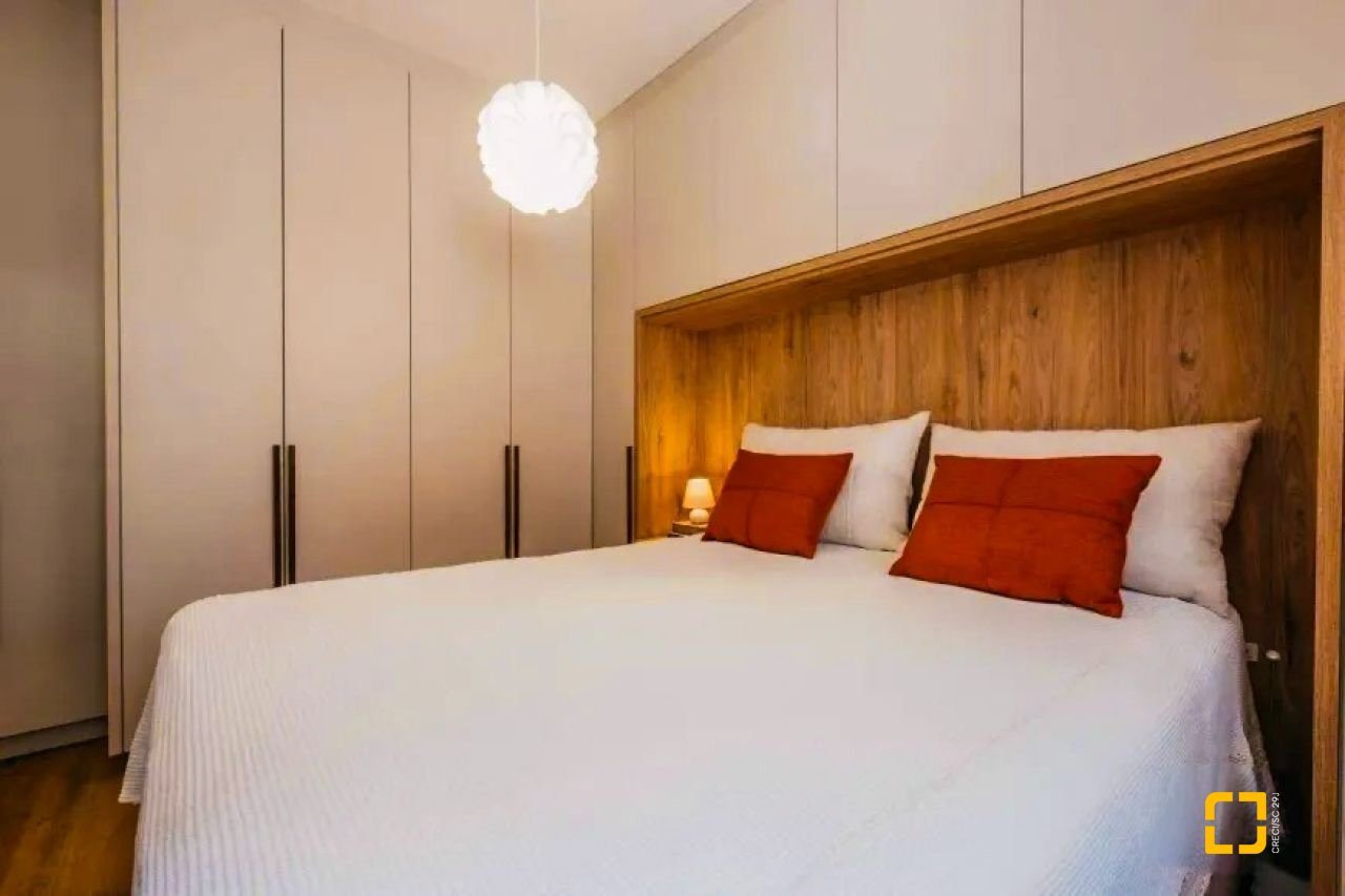 Acabamento de alto padrão, com piso e rodapés em porcelanato polido, teto com rebaixamento e molduras em gesso, portas laqueadas na cor branca, paredes em massa corrida, esquadrias externas em vidro temperado, portão eletrônico, interfone, elevador em inox da marca Otis, tubulação para água quente, venezianas nos dormitórios, hidrômetro individual, além de medições individuais de luz e gás.