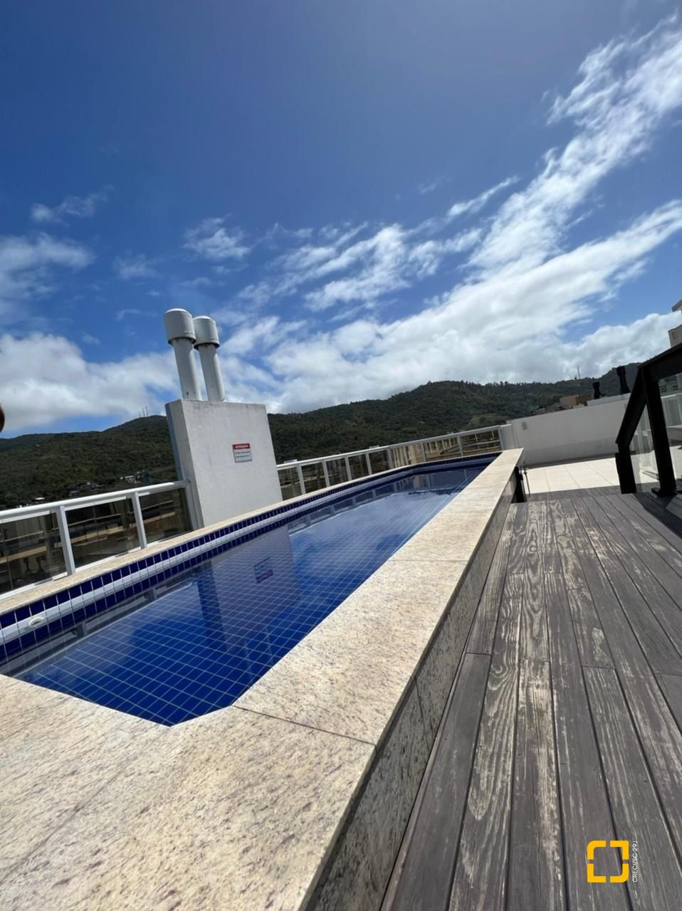 Condominio com piscina no ático, localizado a poucos minutos da praia.