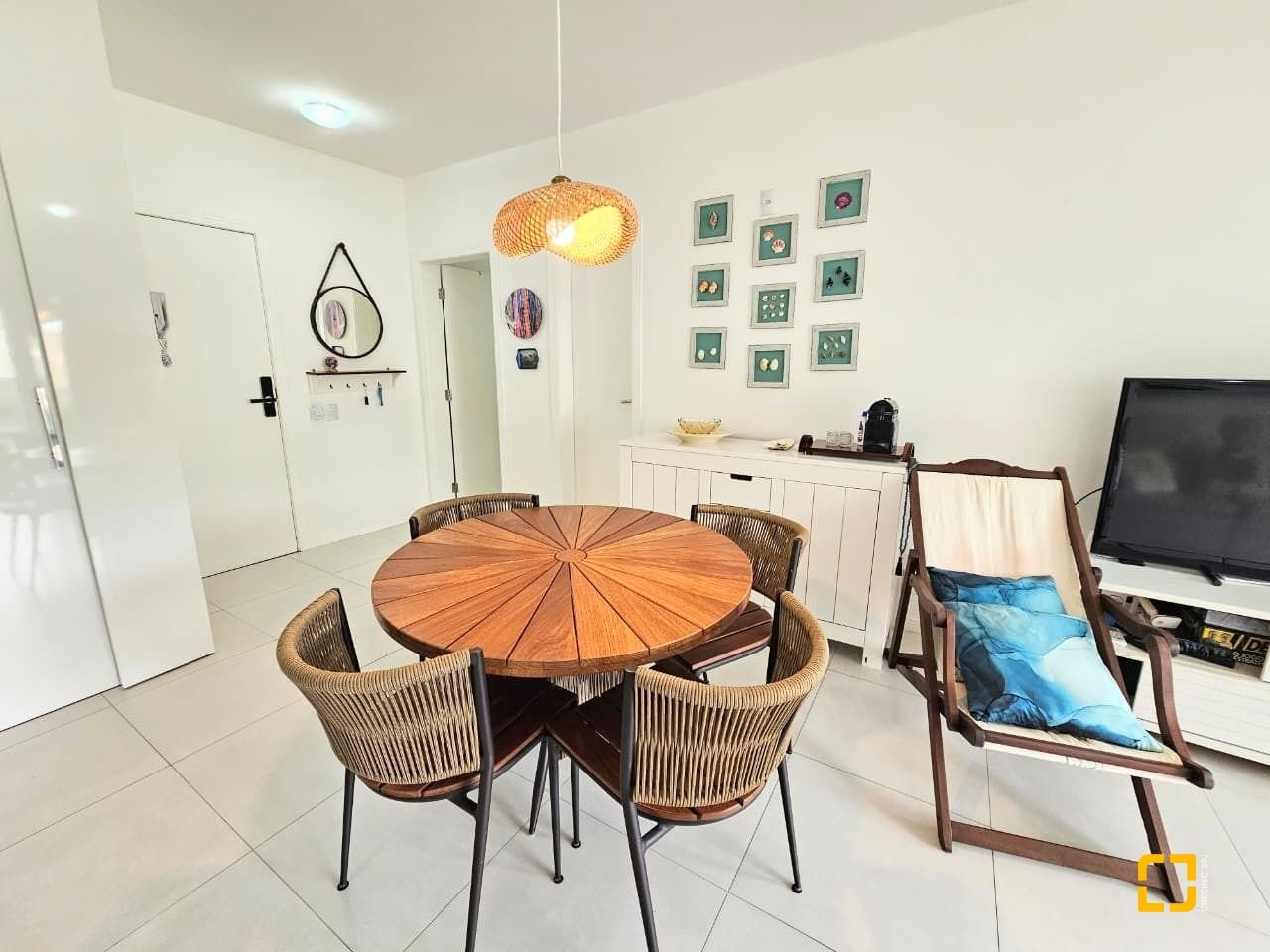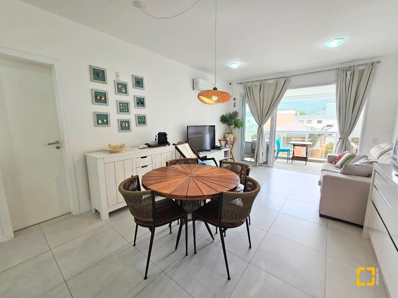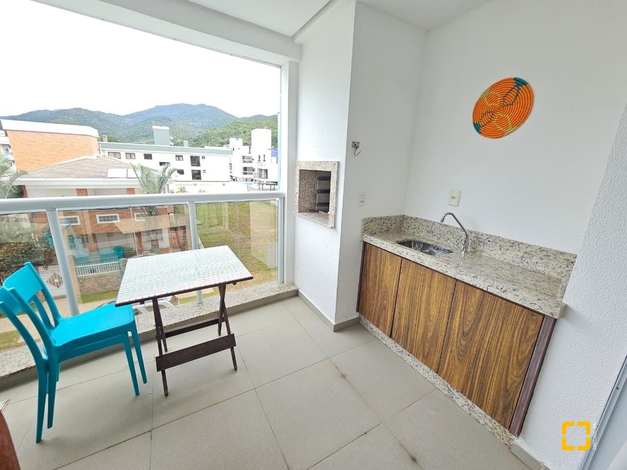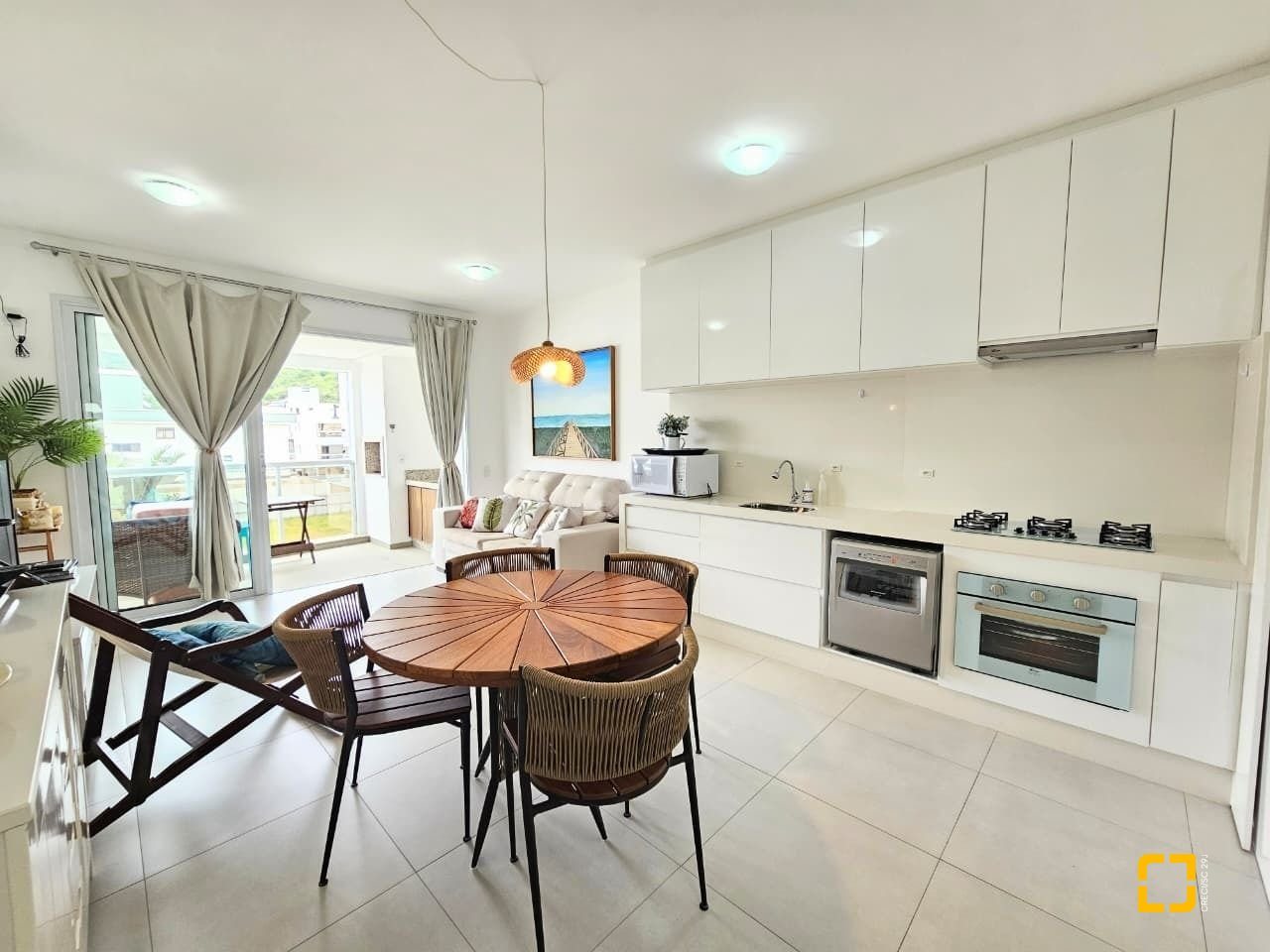 Apartamento com ótima planta, 84m² privativos. Confortável com sala ampla com sofá e rack, tv e ar condicionado, ambiente integrado com a cozinha e linda sacada gourmet com churrasqueira.