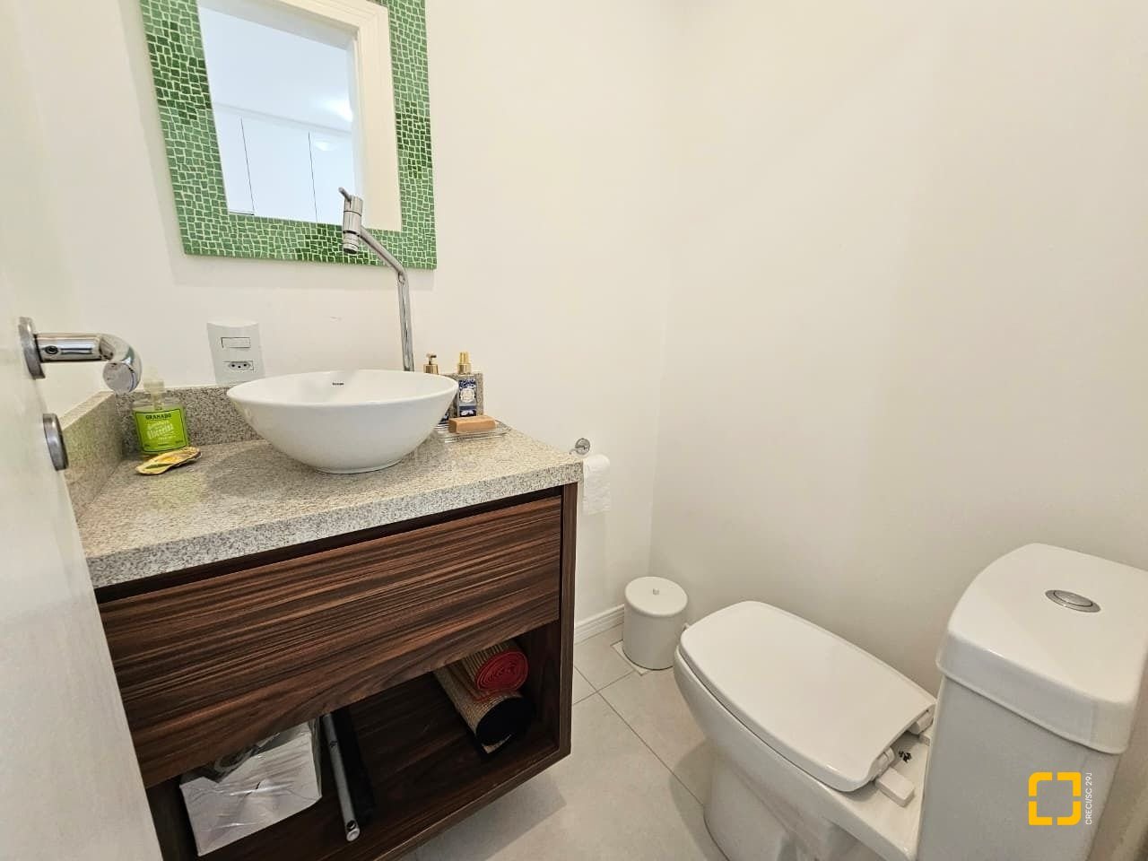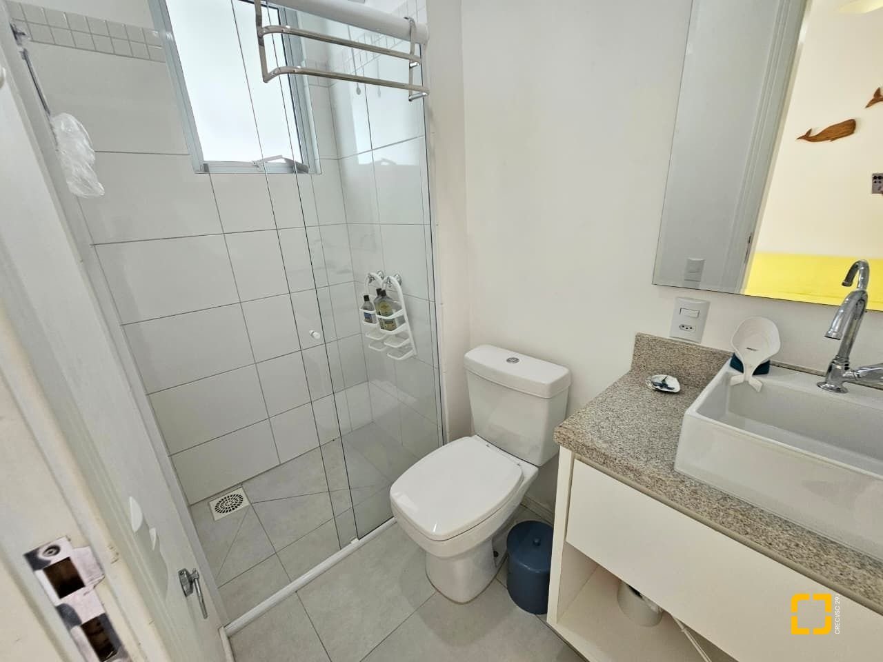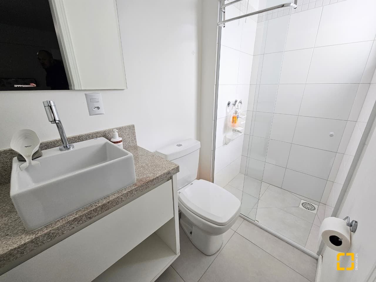 Banheiros com box e armários e 1 lavabo. 1 vaga de garagem livre.