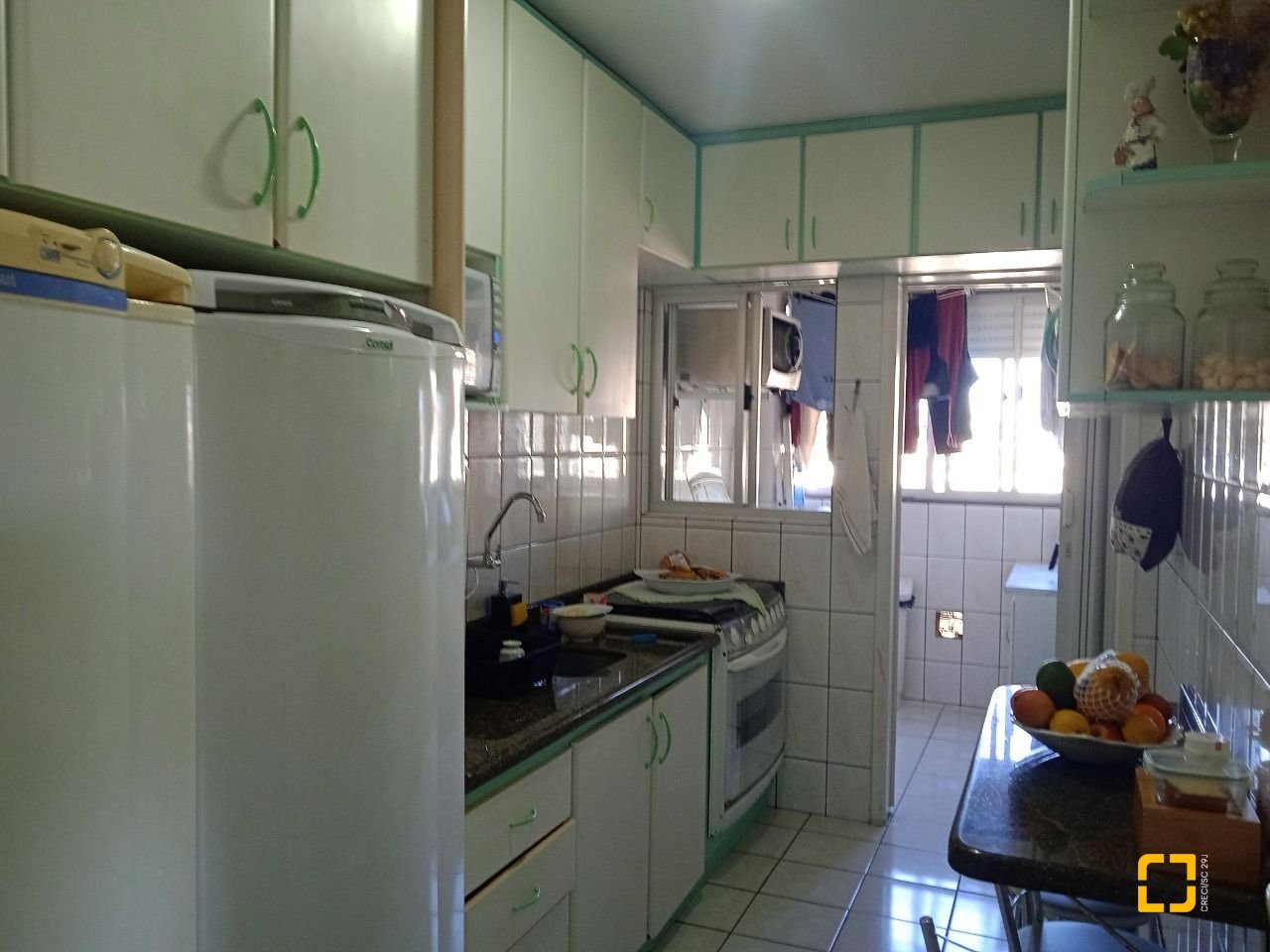 * 1 Cozinha grande com móveis embutidos.
