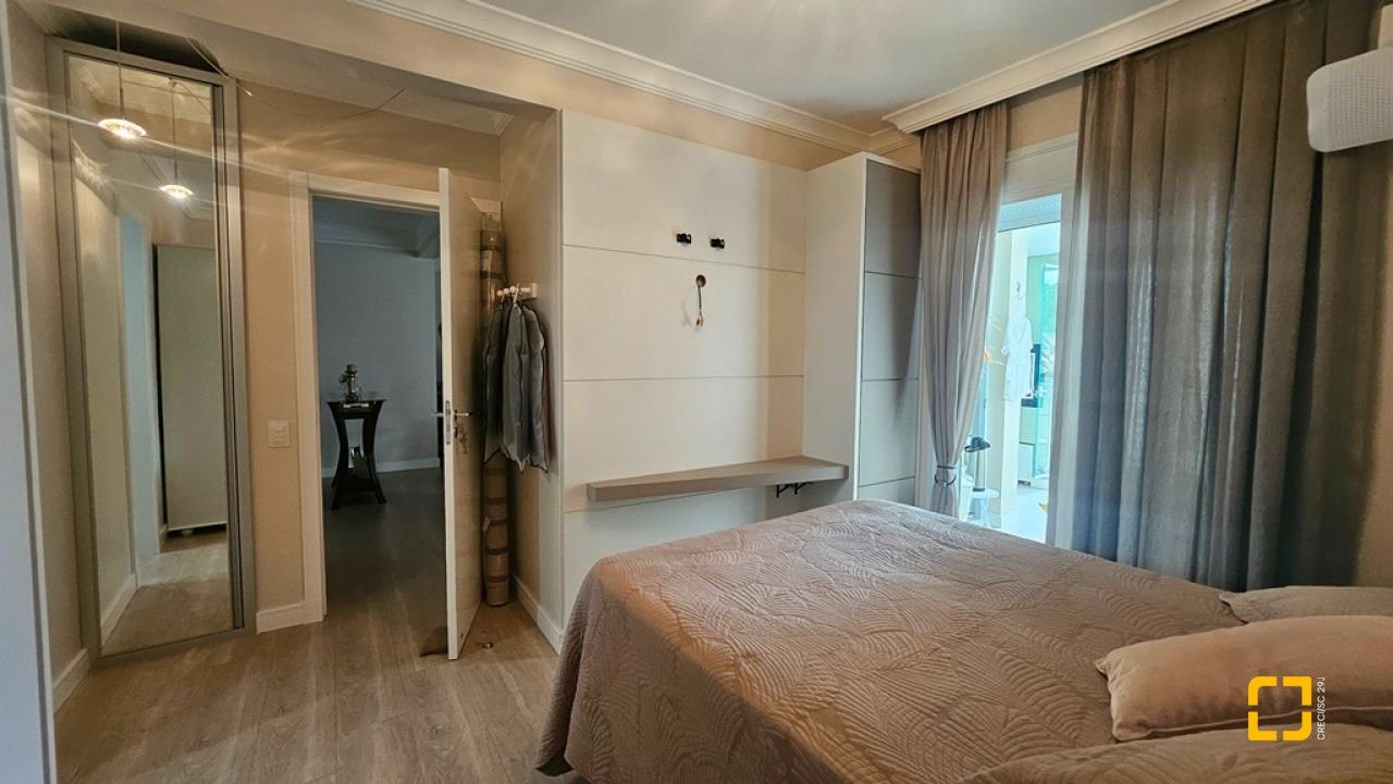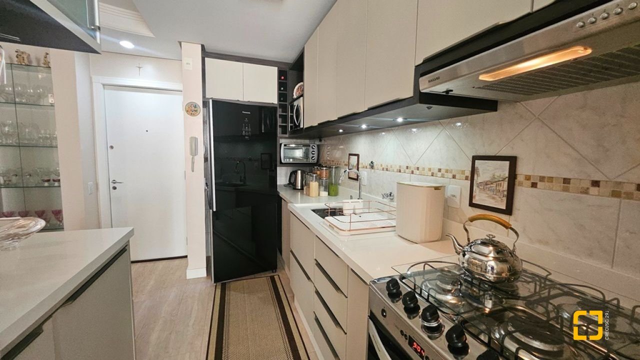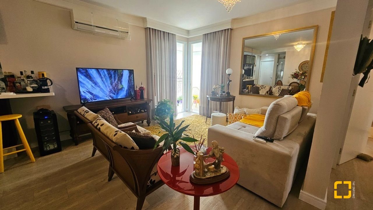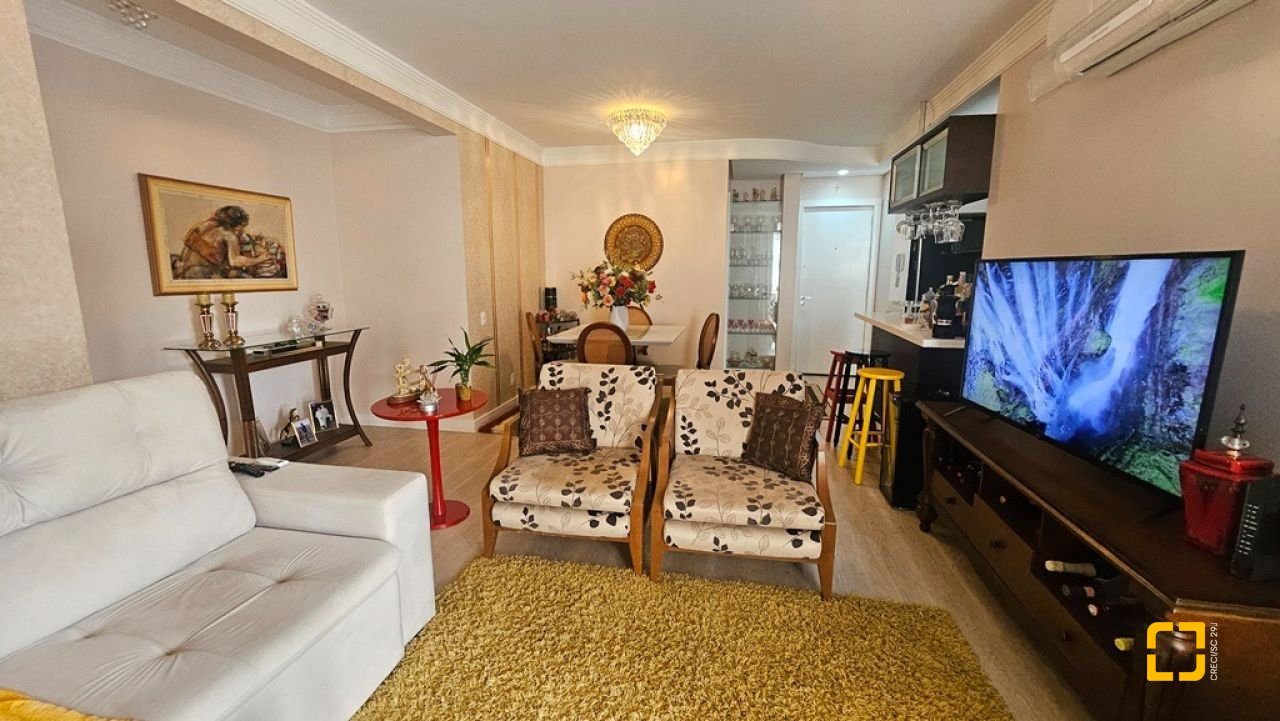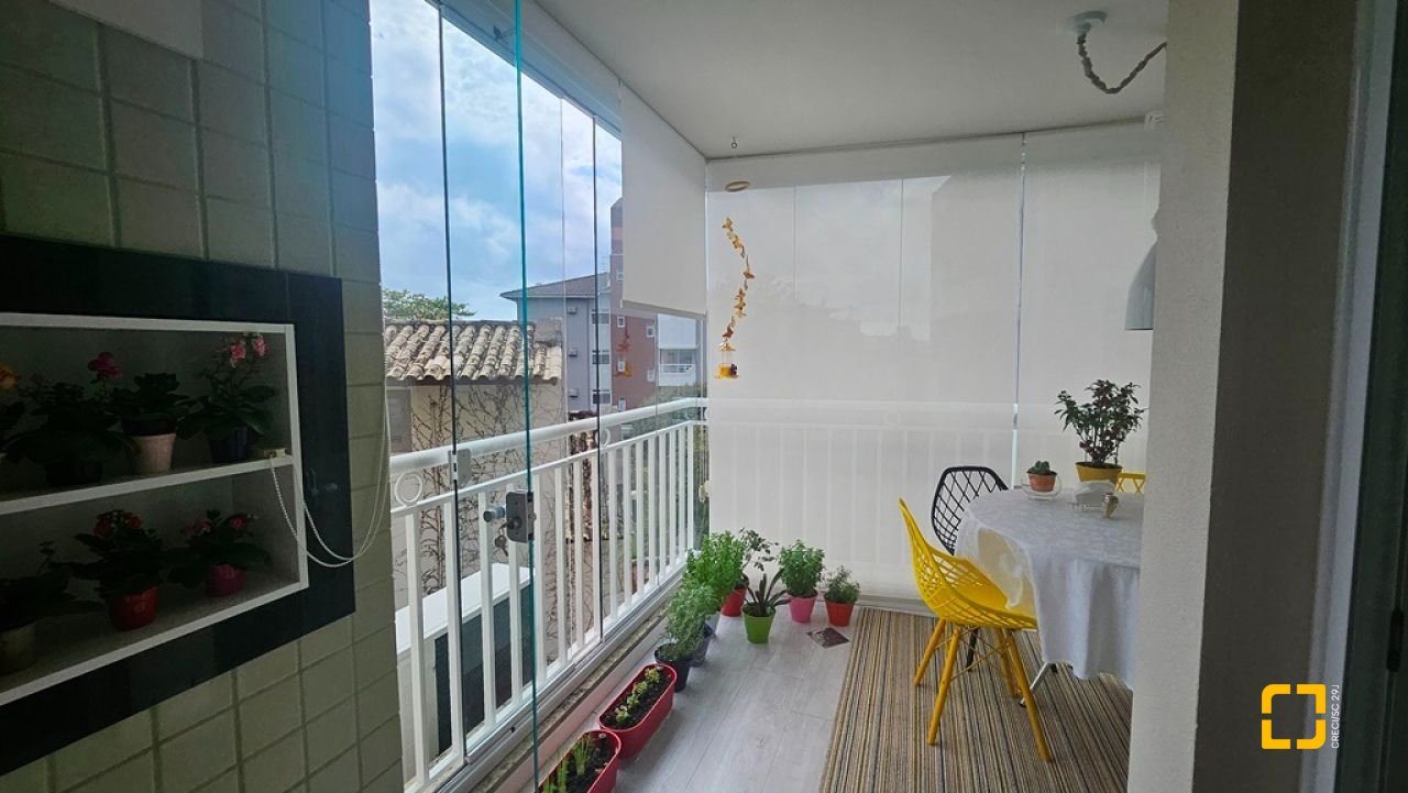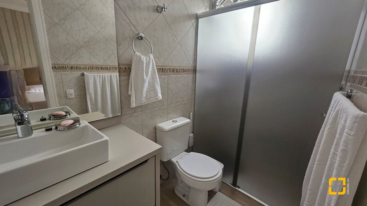 Apartamento com 2 suítes à venda em Canasvieiras, totalmente mobiliado e equipado, saindo apenas algumas peças de decoração. Ampla sala para 2 ambientes integrada à cozinha com bancada e á sacada com churrasqueira, fechada com vidro no sistema reiki, lavabo, uma vaga de garagem e hobby box. Suíte principal com acesso à sacada contendo armário de 4 portas e gavetas, painel em MDF para TV, armário planejado, ar condicionado split, 1 mesa de cabeceira e cama de casal. No banheiro, balcão, espelho e box de vidro. Na segunda suíte, cômoda, 2 mesas de cabeceira, mesa redonda, cama de casal e ventilador de teto. No banheiro, balcão, espelho e box de vidro. Ampla sala para diversos ambientes, contendo ar condicionado split, sofá, poltronas, mesa com 4 cadeiras, rack para TV, cristaleira, bancada que integra à cozinha com banquetas, armários planejados, geladeira, fogão 4 bocas, exaustor e micro-ondas. Área de serviço com balcão, tanque e máquina lava e seca. Apartamento muito bem ventilado e ensolarado, sol da manhã, amplo, com 90m² privativos. Edifício com localização privilegiada, a 150m² da praia, próximo ao Banco do Brasil, mercados e demais serviços.