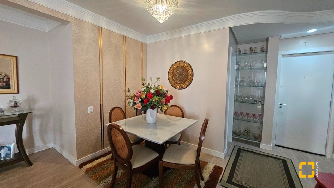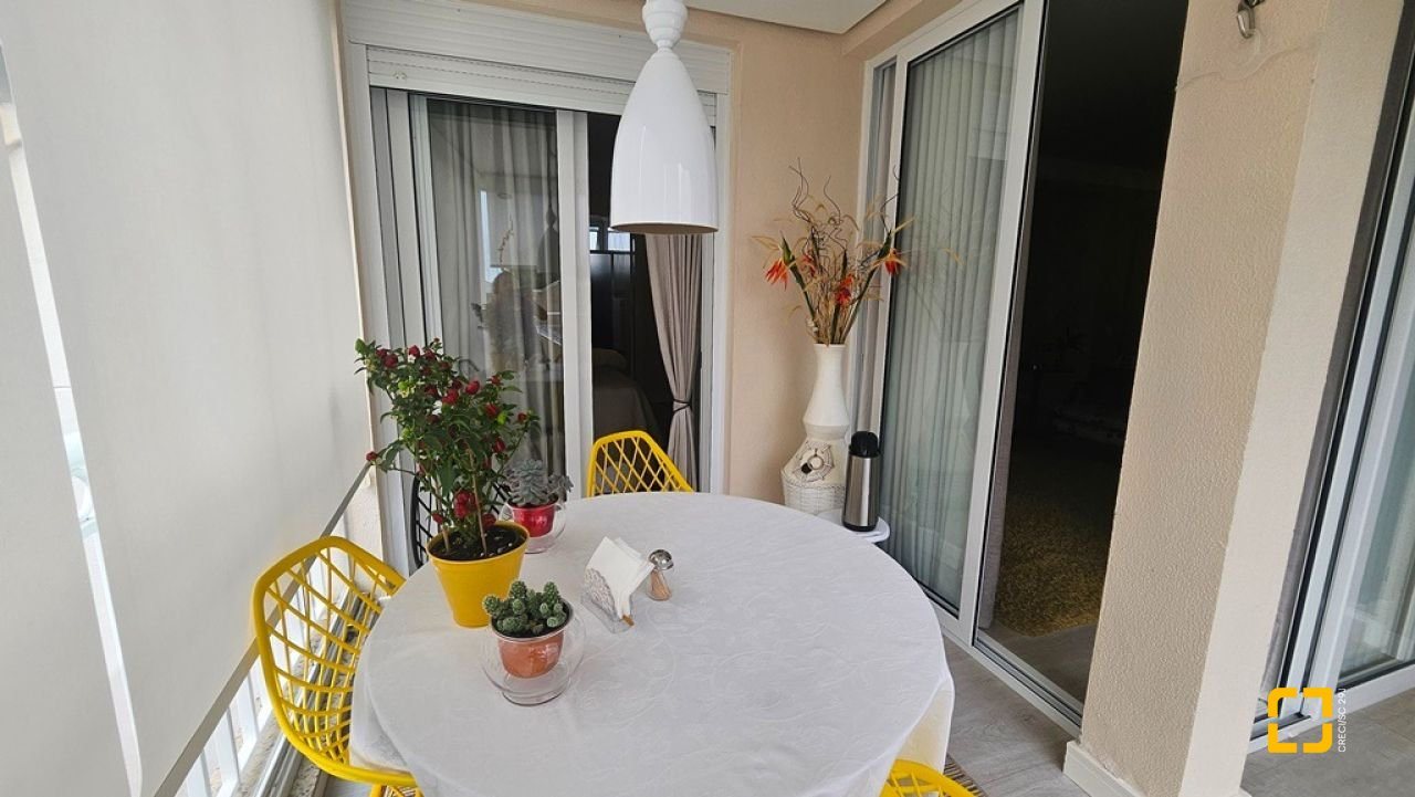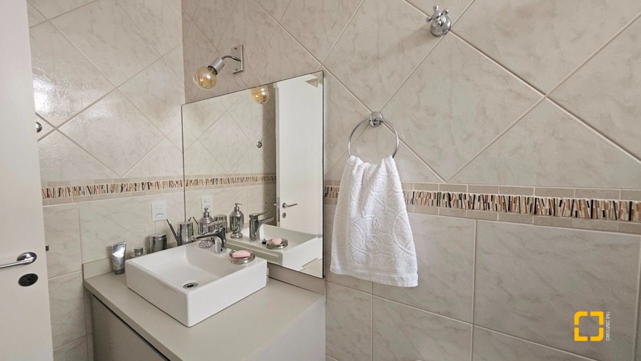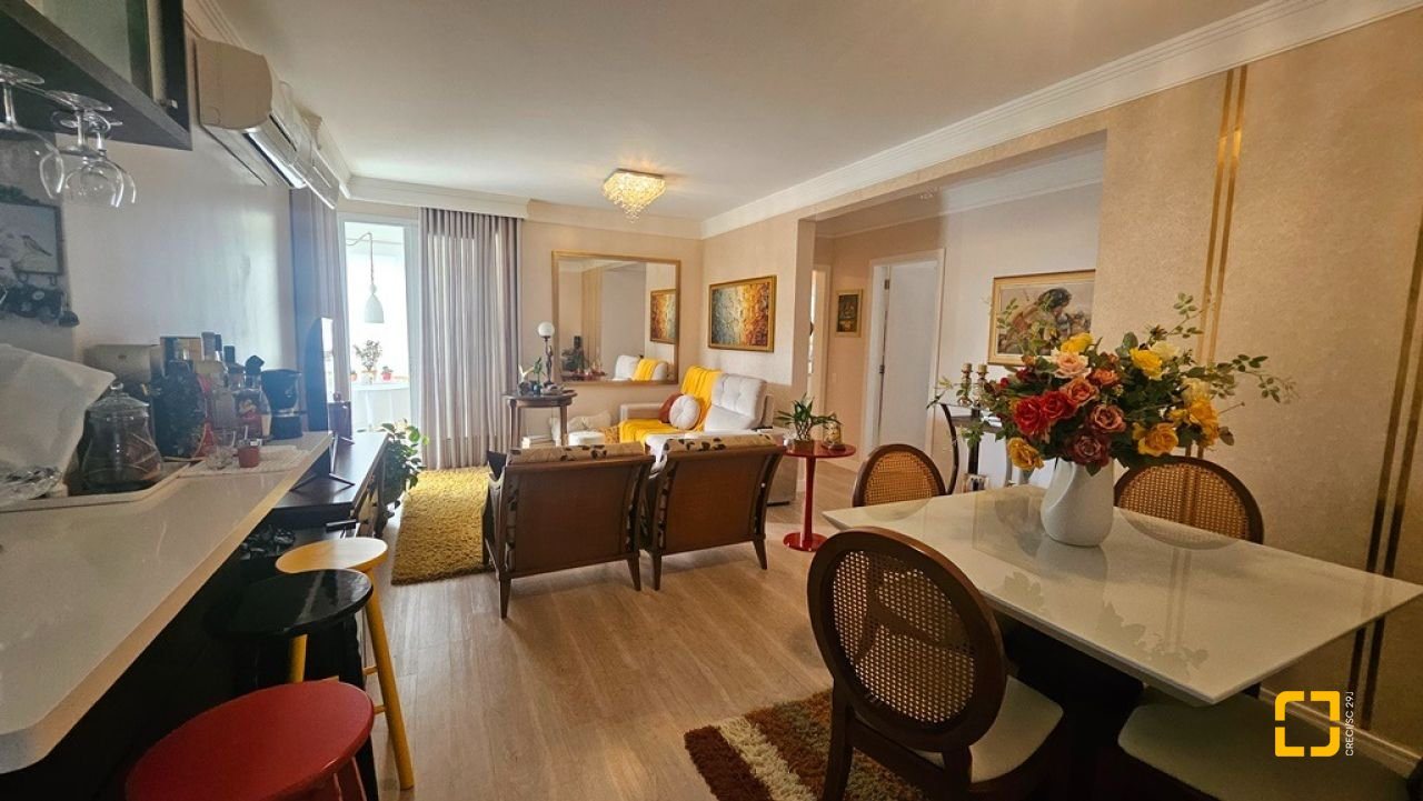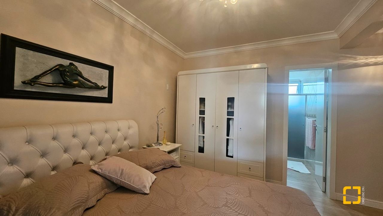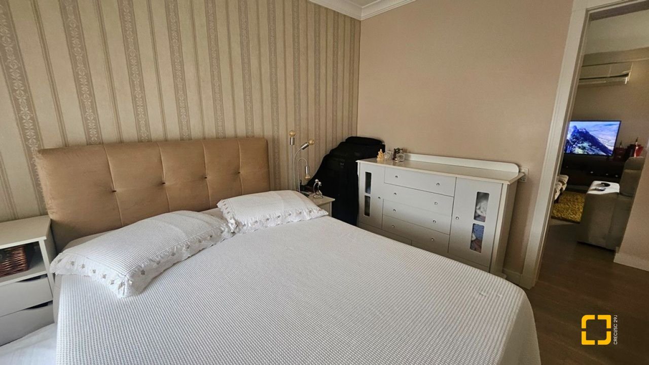 Apartamento com 2 suítes à venda em Canasvieiras, totalmente mobiliado e equipado, saindo apenas algumas peças de decoração. Ampla sala para 2 ambientes integrada à cozinha com bancada e á sacada com churrasqueira, fechada com vidro no sistema reiki, lavabo, uma vaga de garagem e hobby box. Suíte principal com acesso à sacada contendo armário de 4 portas e gavetas, painel em MDF para TV, armário planejado, ar condicionado split, 1 mesa de cabeceira e cama de casal. No banheiro, balcão, espelho e box de vidro. Na segunda suíte, cômoda, 2 mesas de cabeceira, mesa redonda, cama de casal e ventilador de teto. No banheiro, balcão, espelho e box de vidro. Ampla sala para diversos ambientes, contendo ar condicionado split, sofá, poltronas, mesa com 4 cadeiras, rack para TV, cristaleira, bancada que integra à cozinha com banquetas, armários planejados, geladeira, fogão 4 bocas, exaustor e micro-ondas. Área de serviço com balcão, tanque e máquina lava e seca. Apartamento muito bem ventilado e ensolarado, sol da manhã, amplo, com 90m² privativos. Edifício com localização privilegiada, a 150m² da praia, próximo ao Banco do Brasil, mercados e demais serviços.