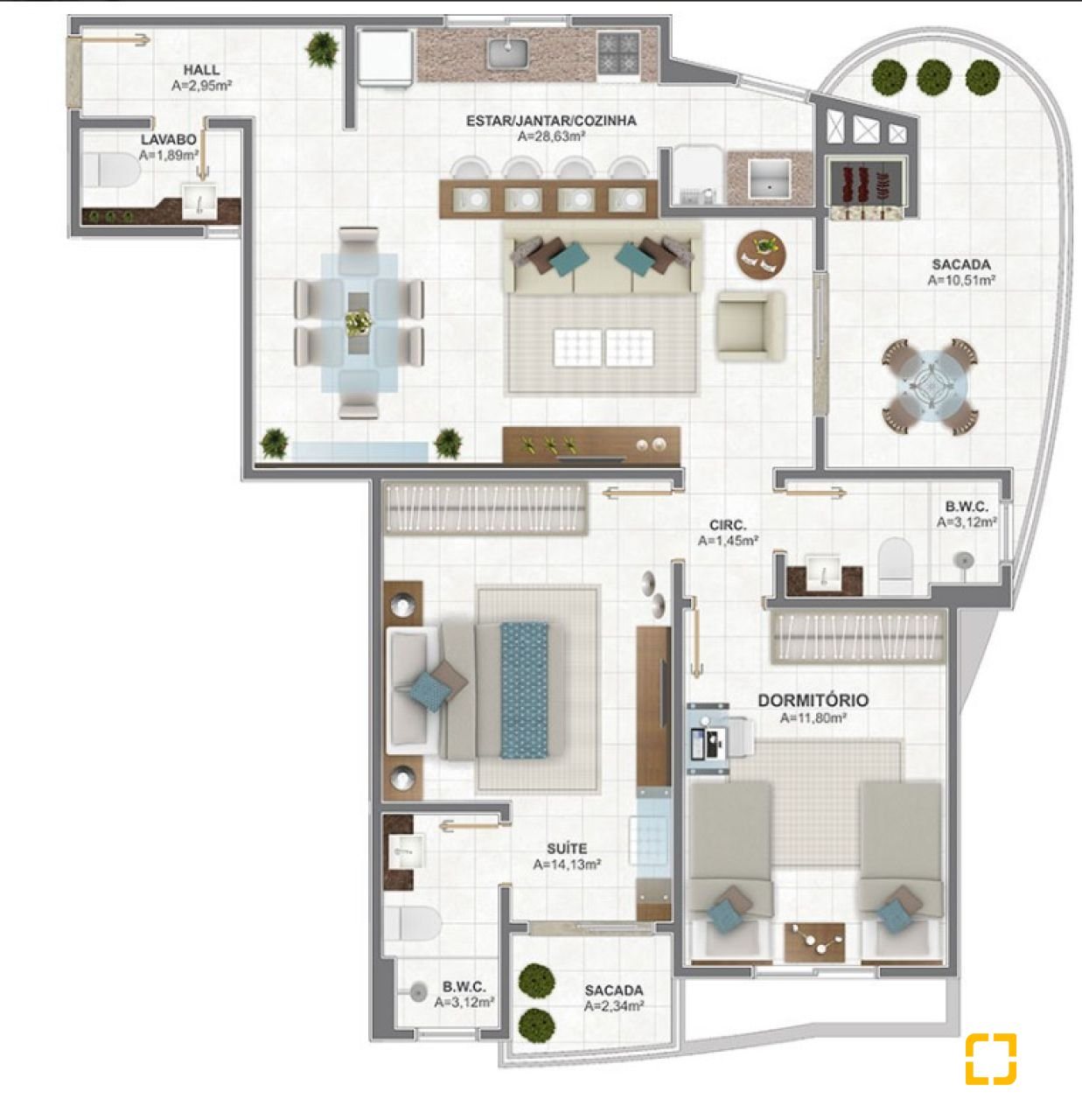 * 1 Área de serviço.