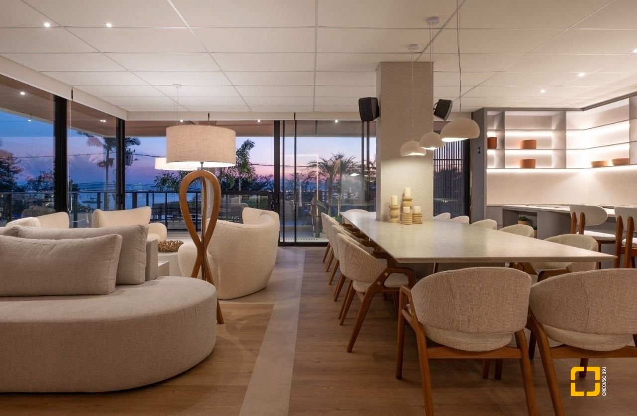 Um dos grandes diferenciais é o terraço com vista parcial para o mar, proporcionando um pôr do sol incrível e momentos únicos em um cenário privilegiado.