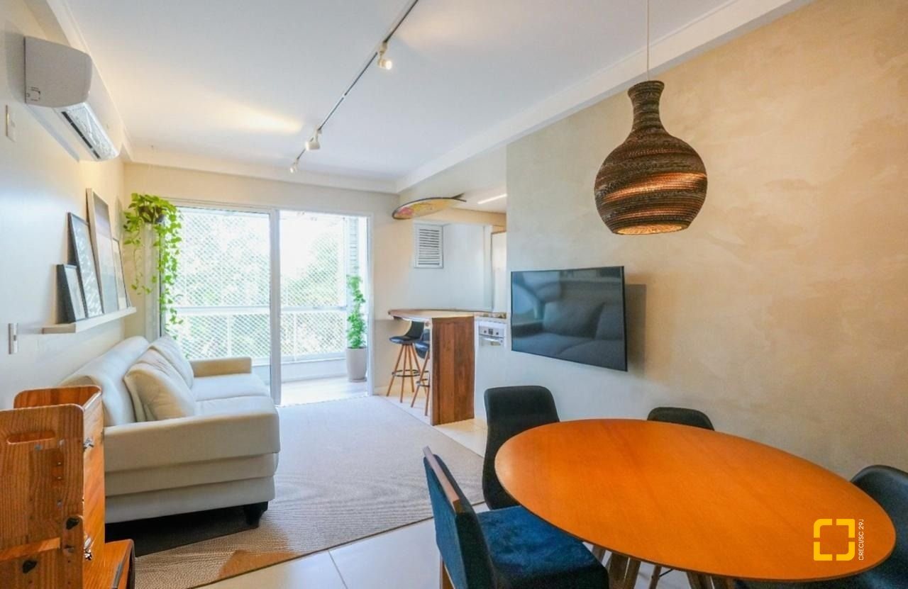 Apartamento recém reformado, finamente mobiliado, com arquitetura planejada pela @quintalarquitetura, são 2 dormitórios, sendo 1 suíte com sacada, sala de estar, jantar, cozinha integradas, lavanderia e sacada com churrasqueira.