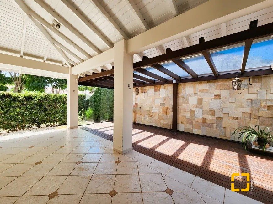 A casa possui 4 suítes, lavabo, banheiro externo, sala de estar, sala de jantar, espaço gourmet, cozinha ampla, lavanderia, despensa e dependência completa de empregada. Além disso, conta com 2 vagas de garagem cobertas e mais 2 no pátio, além de uma varanda com um lindo jardim, ideal para momentos de relaxamento.