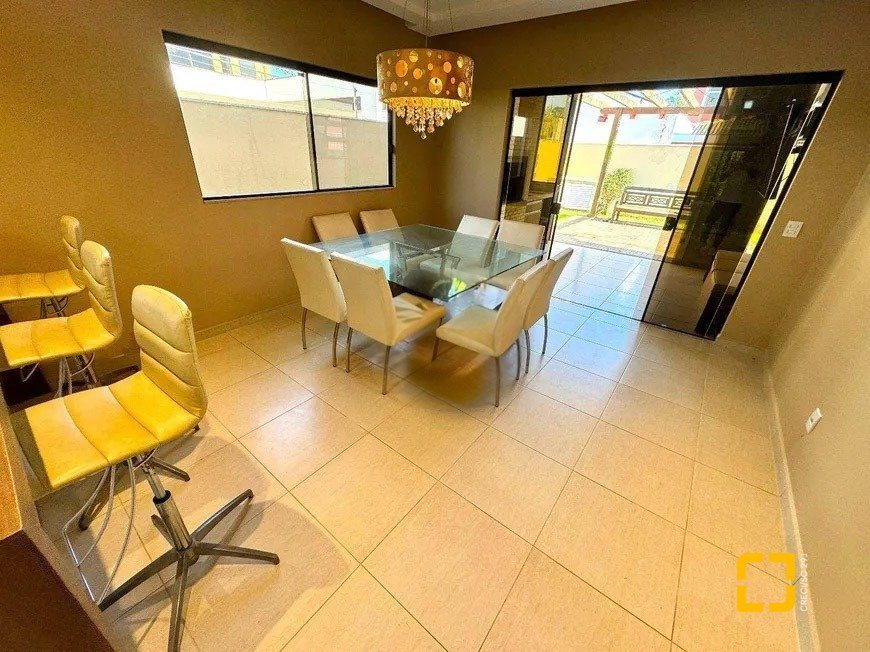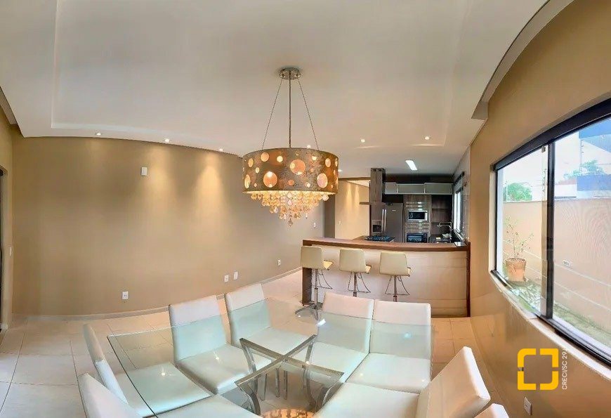 A propriedade conta com três suítes espaçosas, todas com armários embutidos, incluindo uma suíte master com closet e banheira. O escritório com armário é ideal para quem trabalha em casa ou precisa de um cantinho de estudos. Os ambientes sociais foram pensados para o convívio: uma ampla sala com lareira cria um clima acolhedor nos dias mais frios, enquanto a cozinha com móveis embutidos e mesa de jantar integrada facilita o dia a dia.